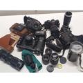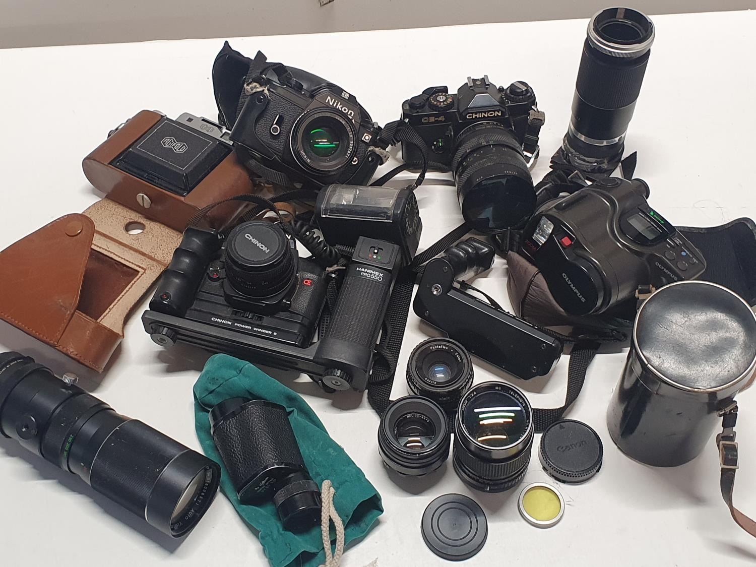 A selection of assorted vintage cameras and lenses including Nikon (untested)