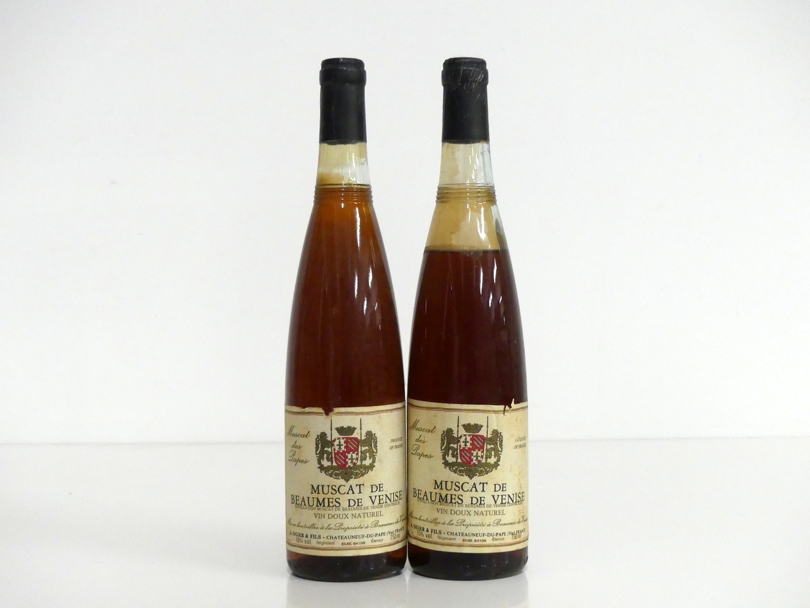 2 bts Muscat de Beaumes de Venise Vin Doux Naturel Muscat des Papes A Ogier & Fils 1 sl ullaged (ms), sl bs, vsl torn labels