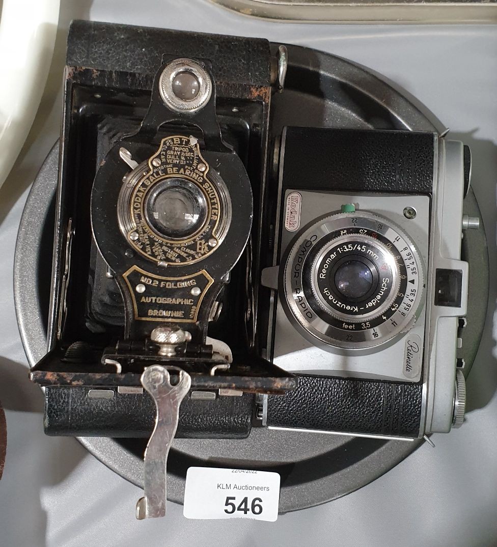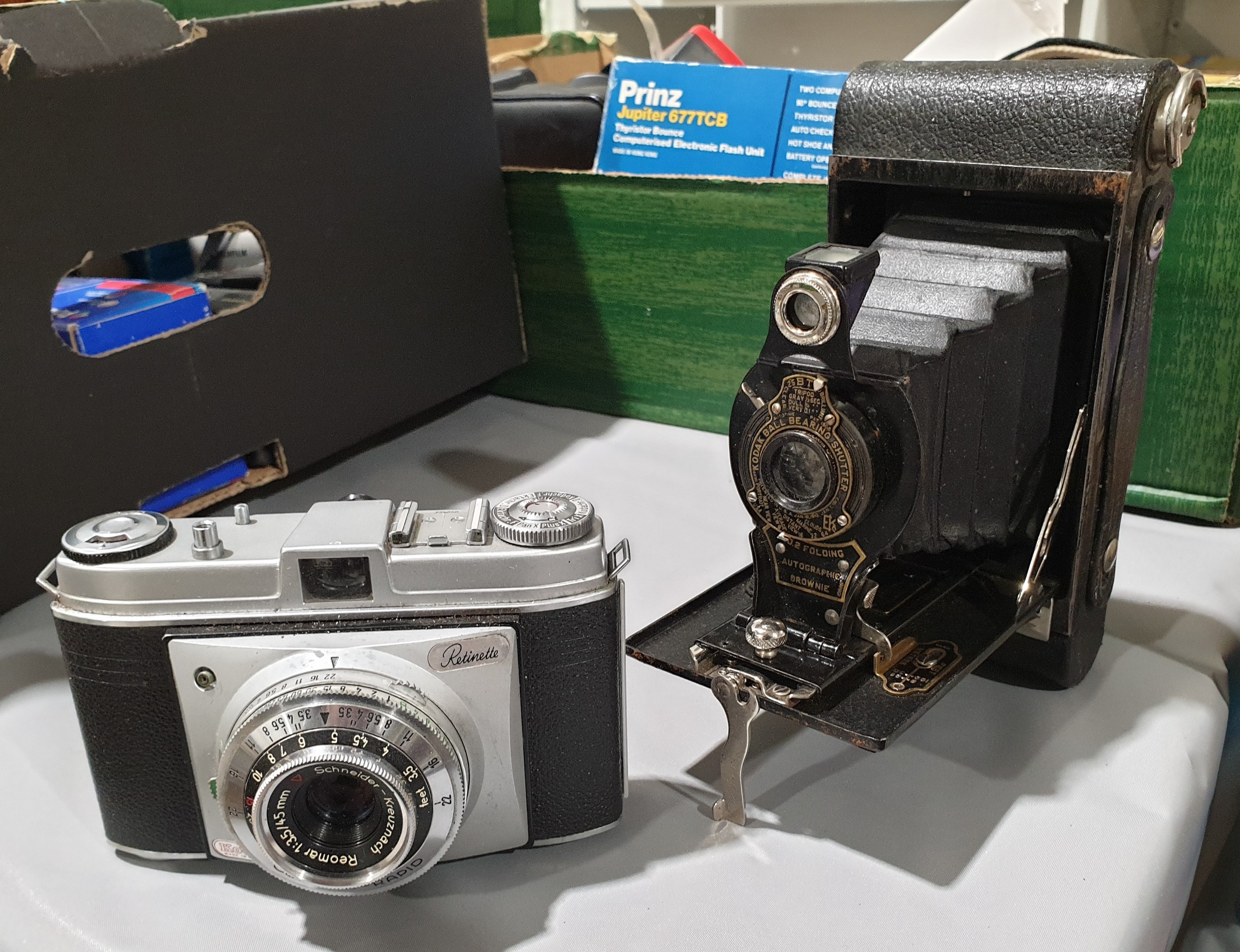A Kodak Retinette camera together with a vintage Kodak no2 folding camera.