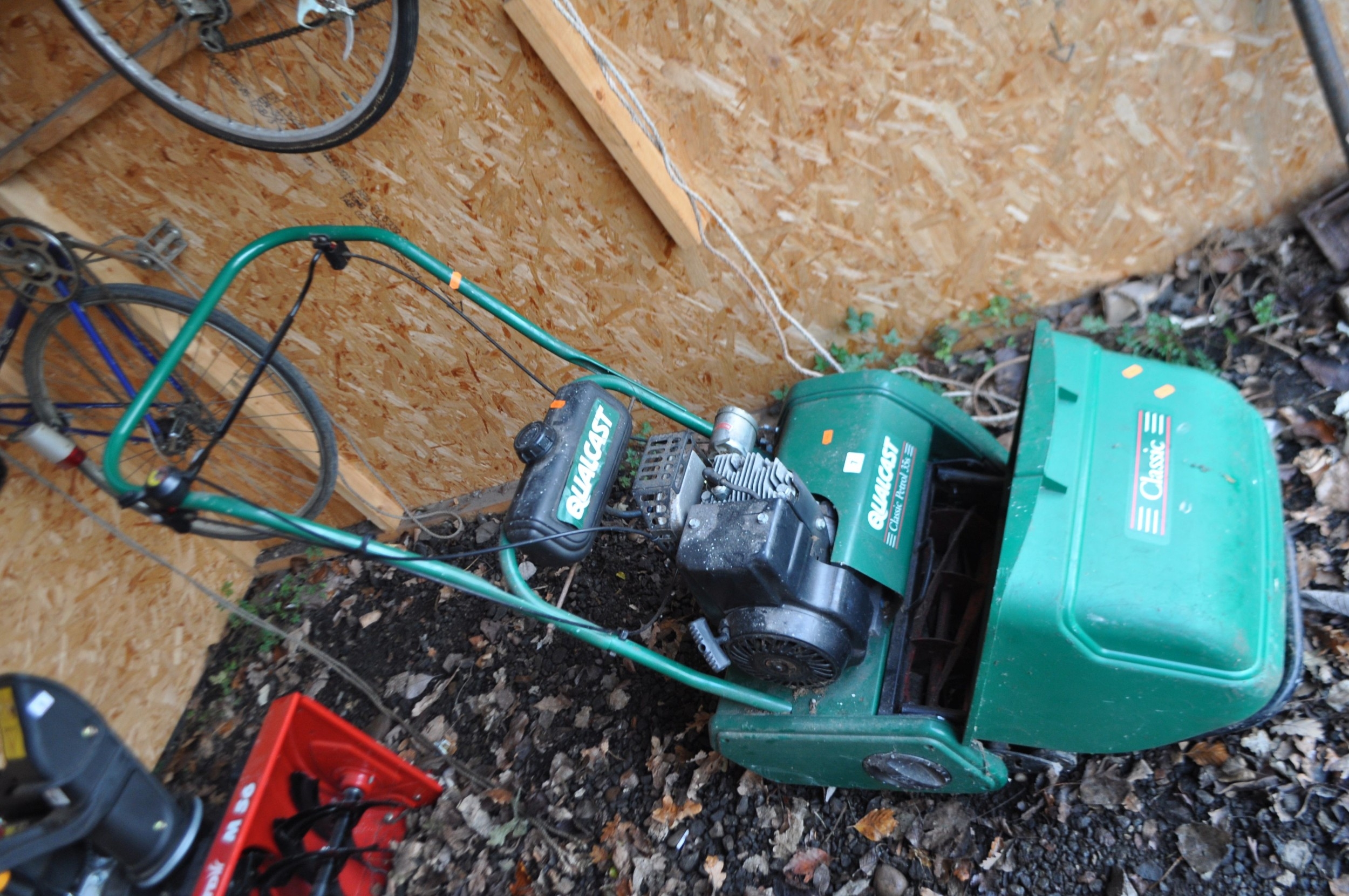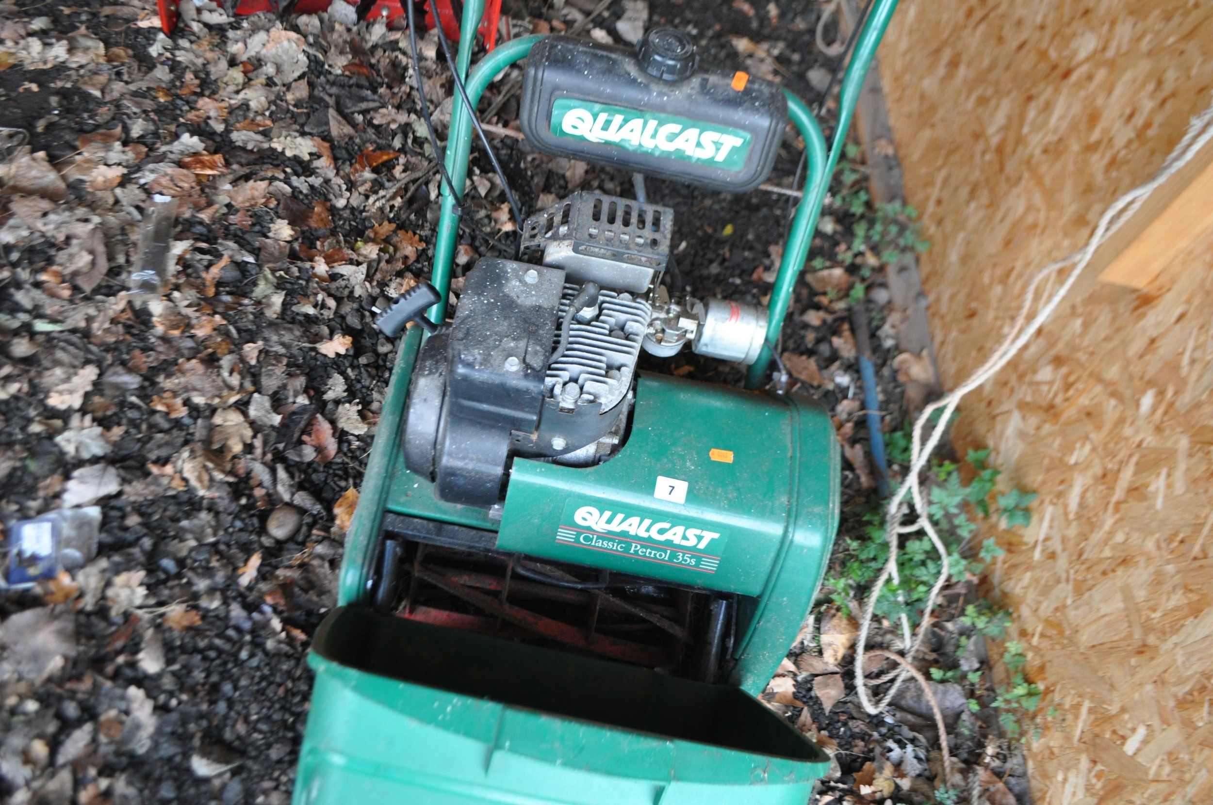 A QUALCAST CLASSIC PETROL 35s CYLINDER LAWN MOWER with grass box (engine pulls freely but hasn't been started)