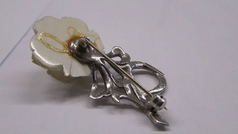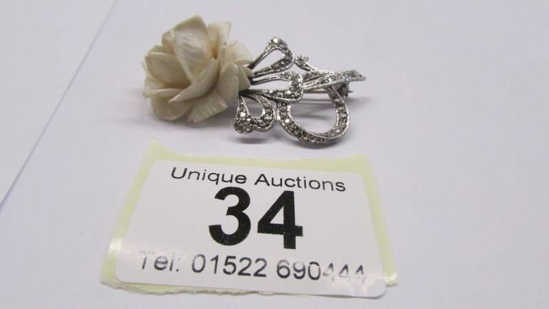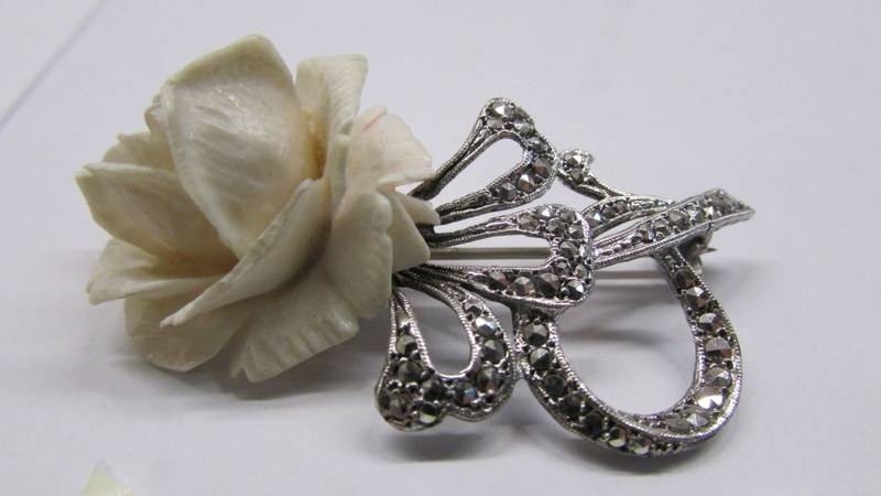 A silver marcasite rose brooch.