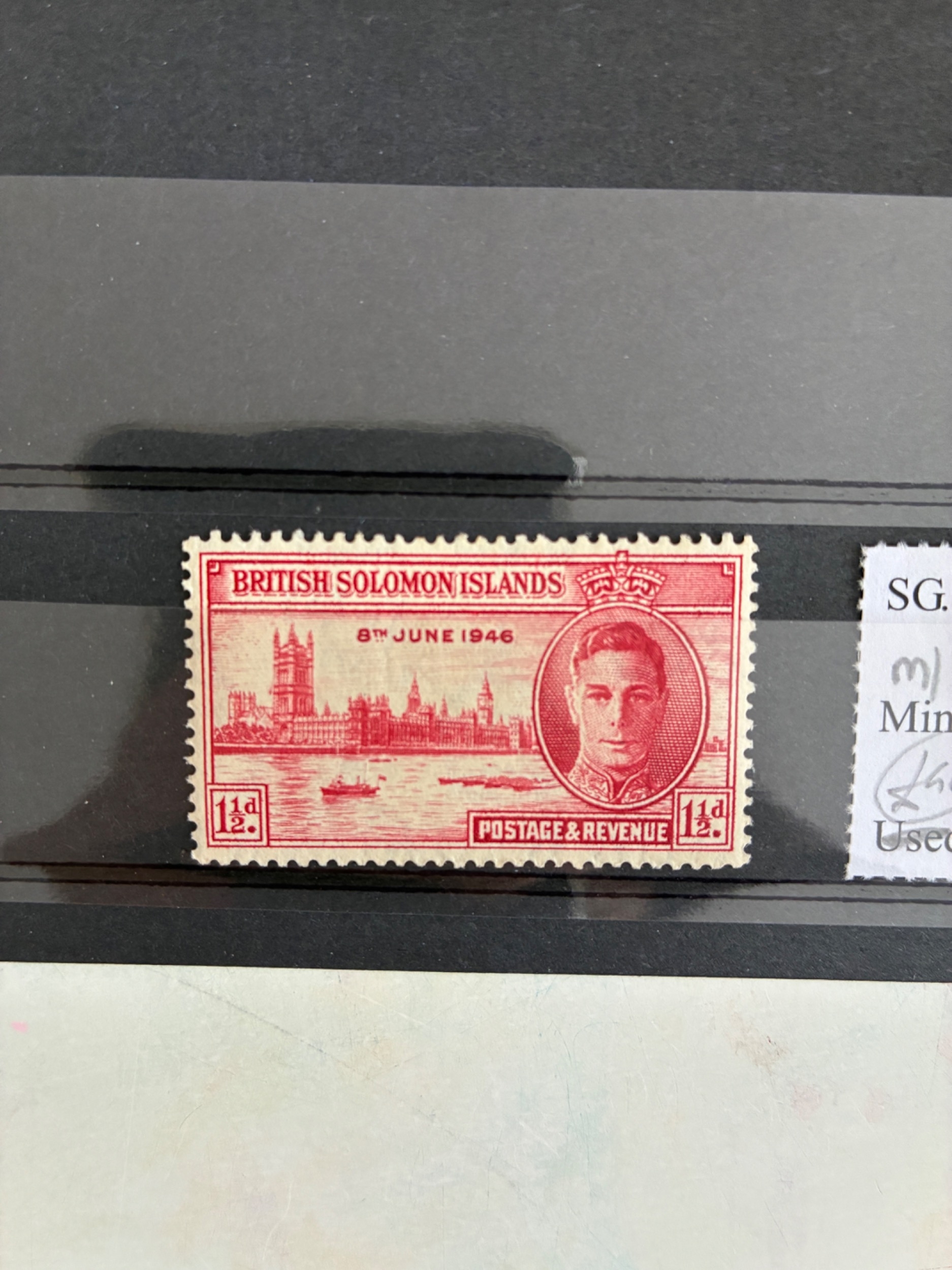 British Solomon Islands 1946 Victory 1.5d carmine with second flag variety, m/m (SG 73a) Cat £40