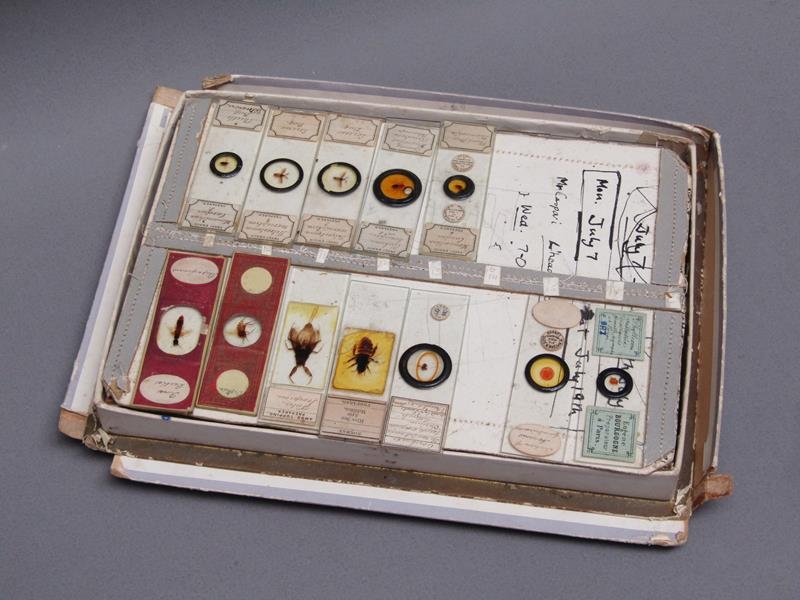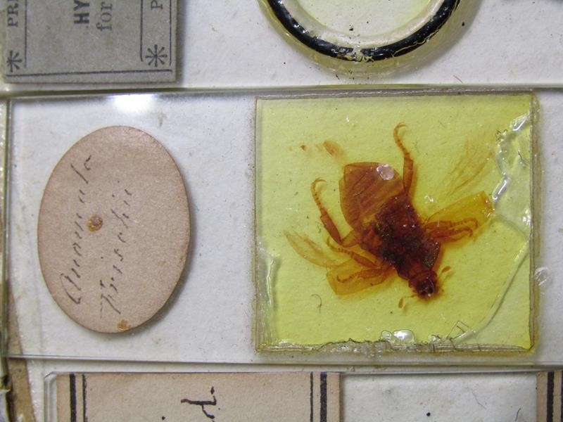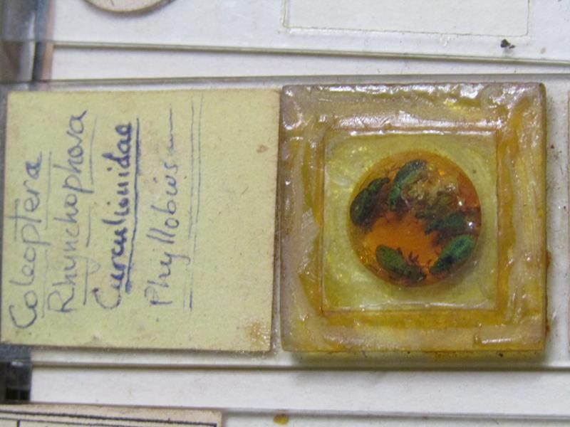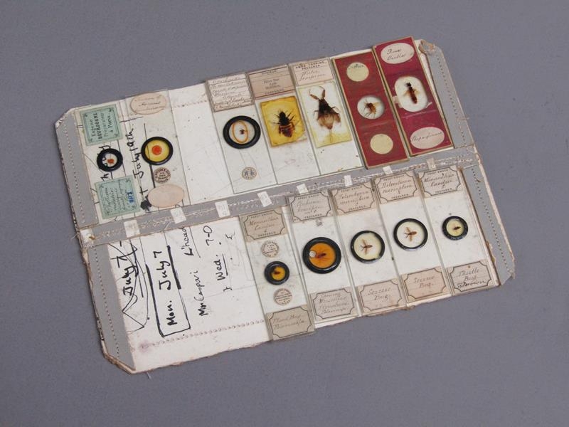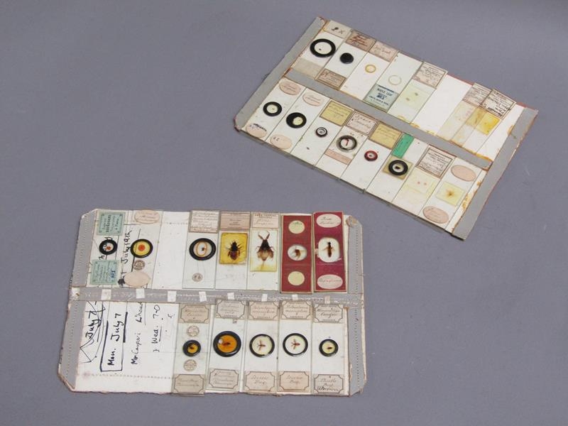 A collection of eighty prepared microscopic insect slides, many prepared in the mid to late 19c.
