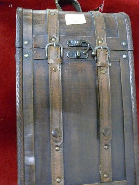 WOODEN TWIN BOTTLE BOX WITH LEATHER BANDING