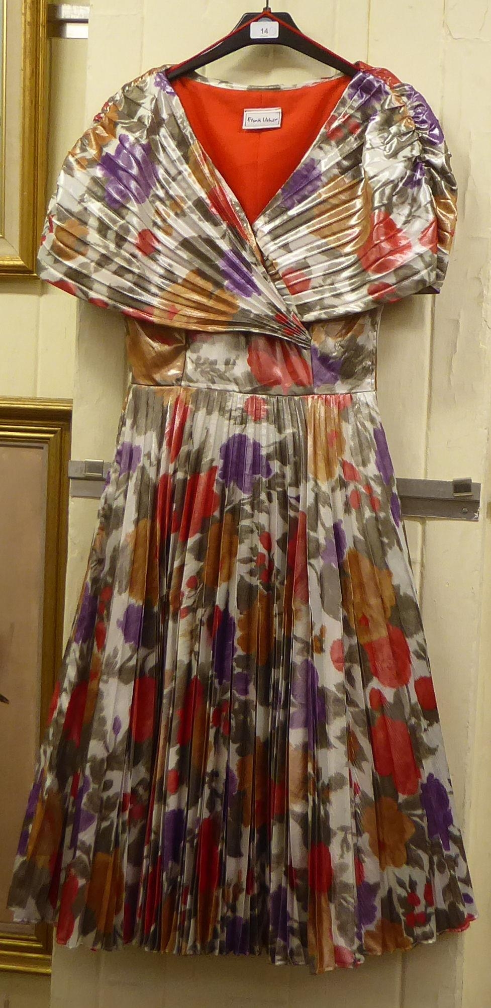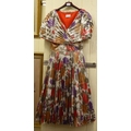 A Frank Usher three-quarter length dress with a pleated skirt in bright colours UK size 34