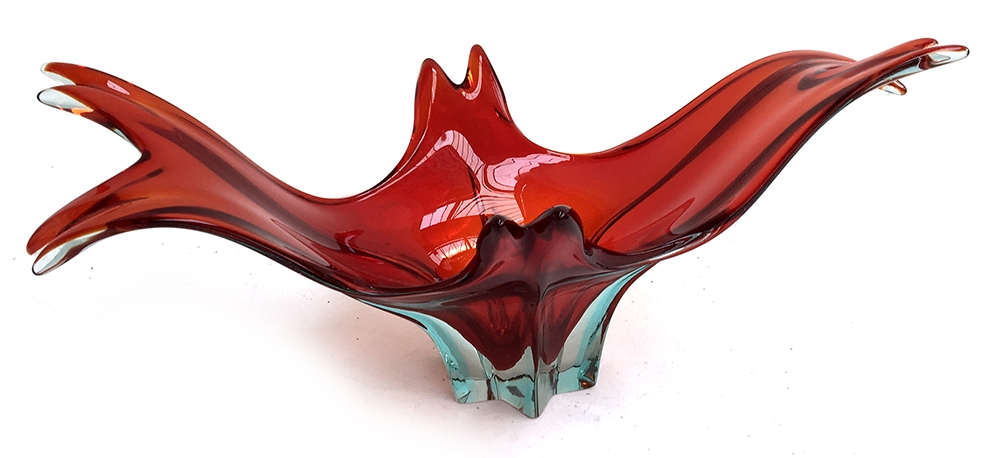 A large vintage French studio red art glass centrepiece 'splash' bowl