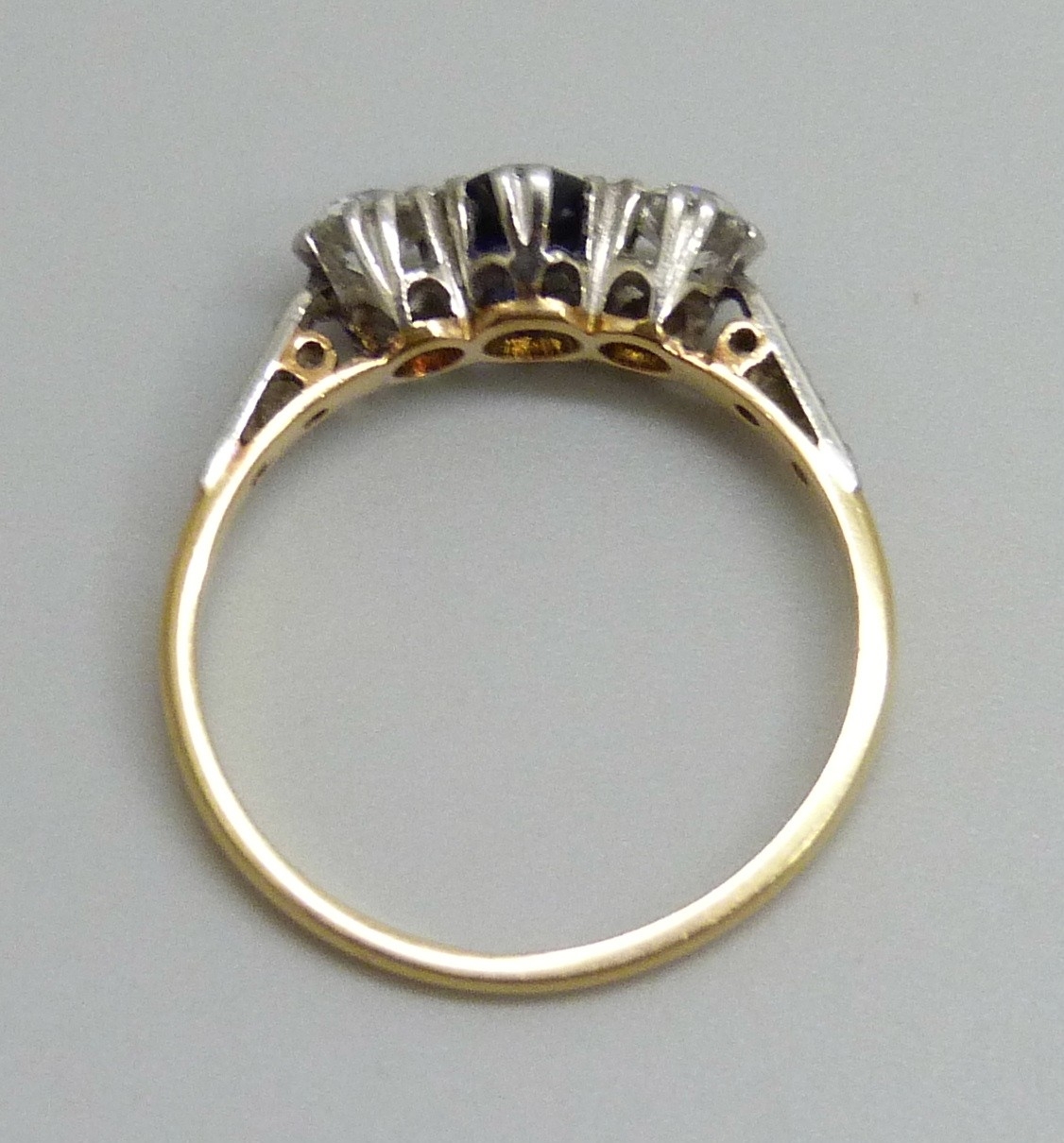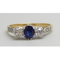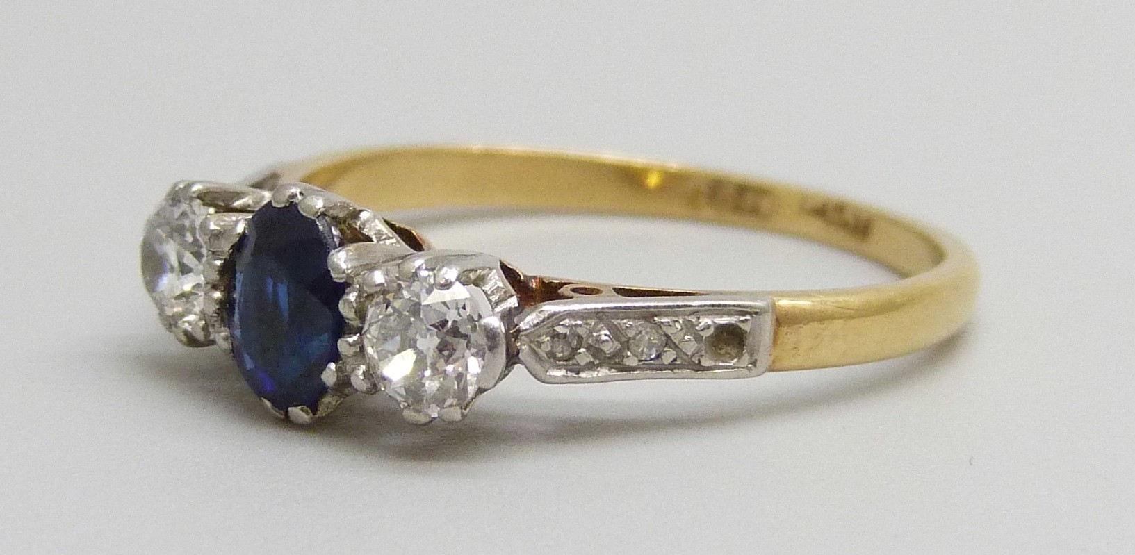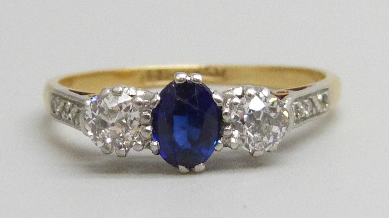 An 18ct gold and platinum set sapphire and diamond ring, 2.4g, M