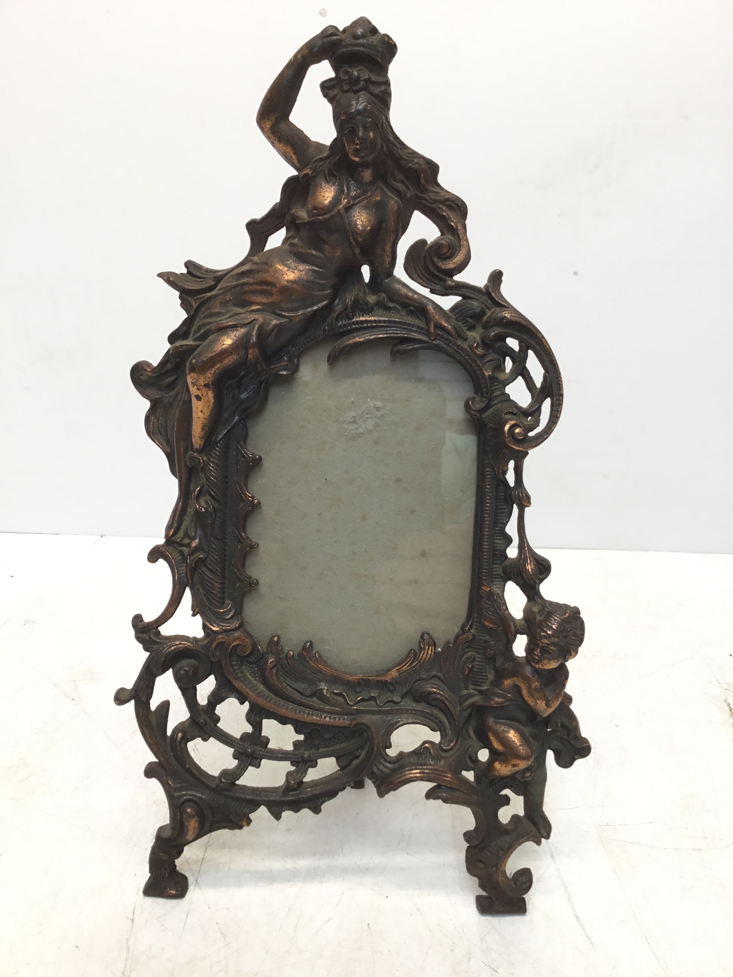 Antique French Art Nouveau Bronze And Coppered Cast Beatrice Photo Frame 35cm