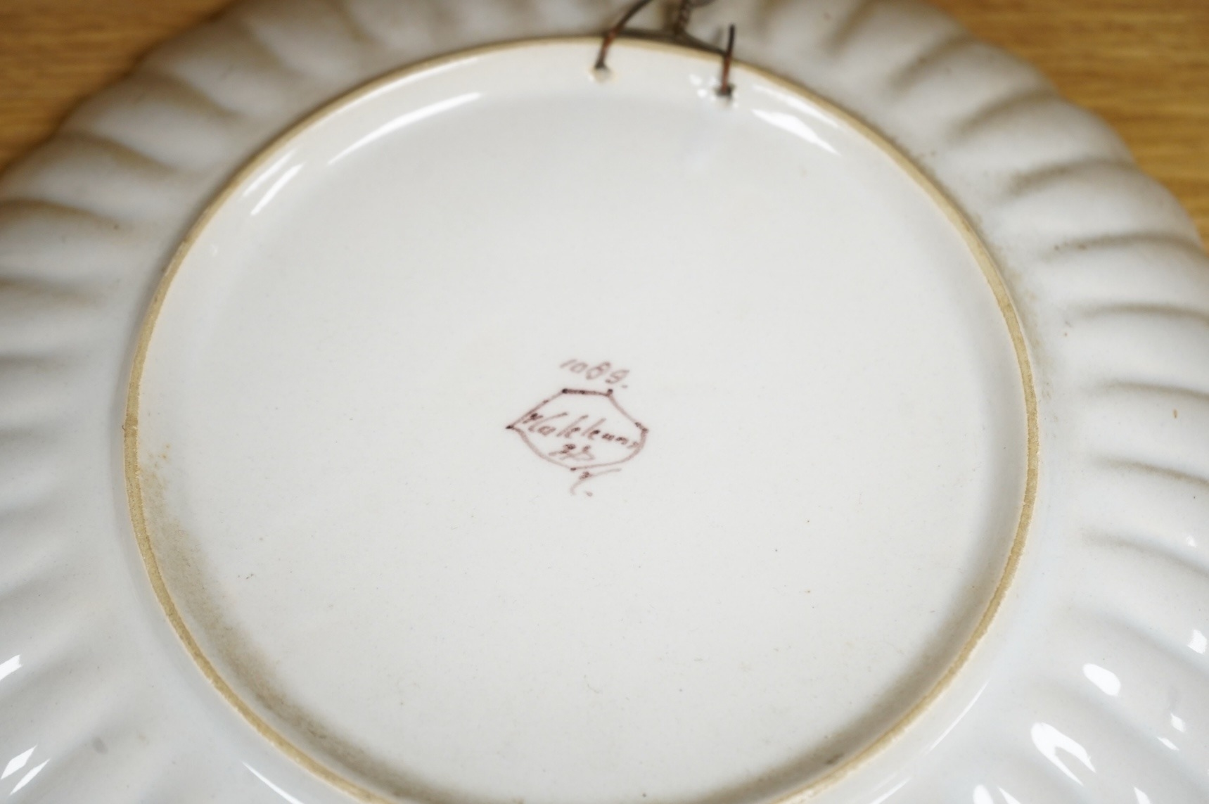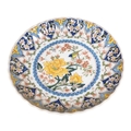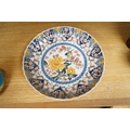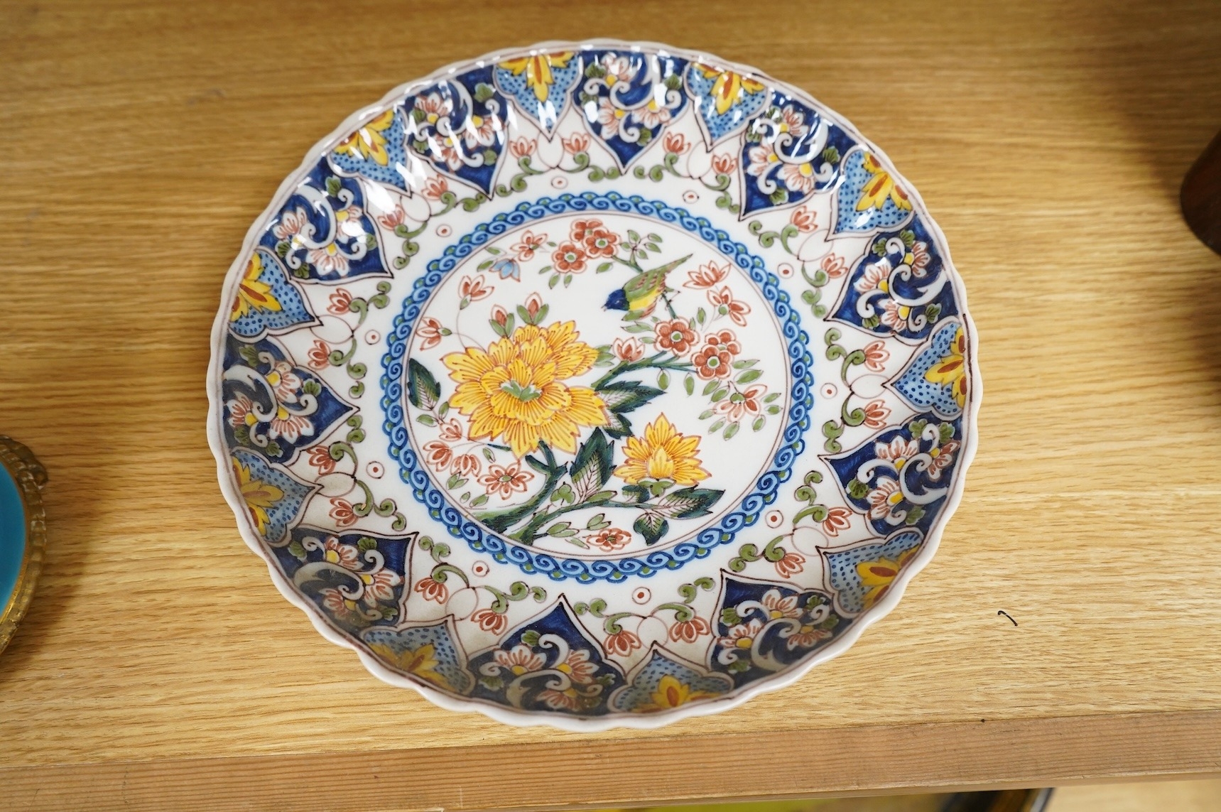 An Dutch Delft wallplate, polychrome painted with birds and foliage, 27.5cm diameter