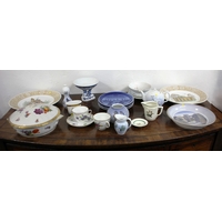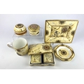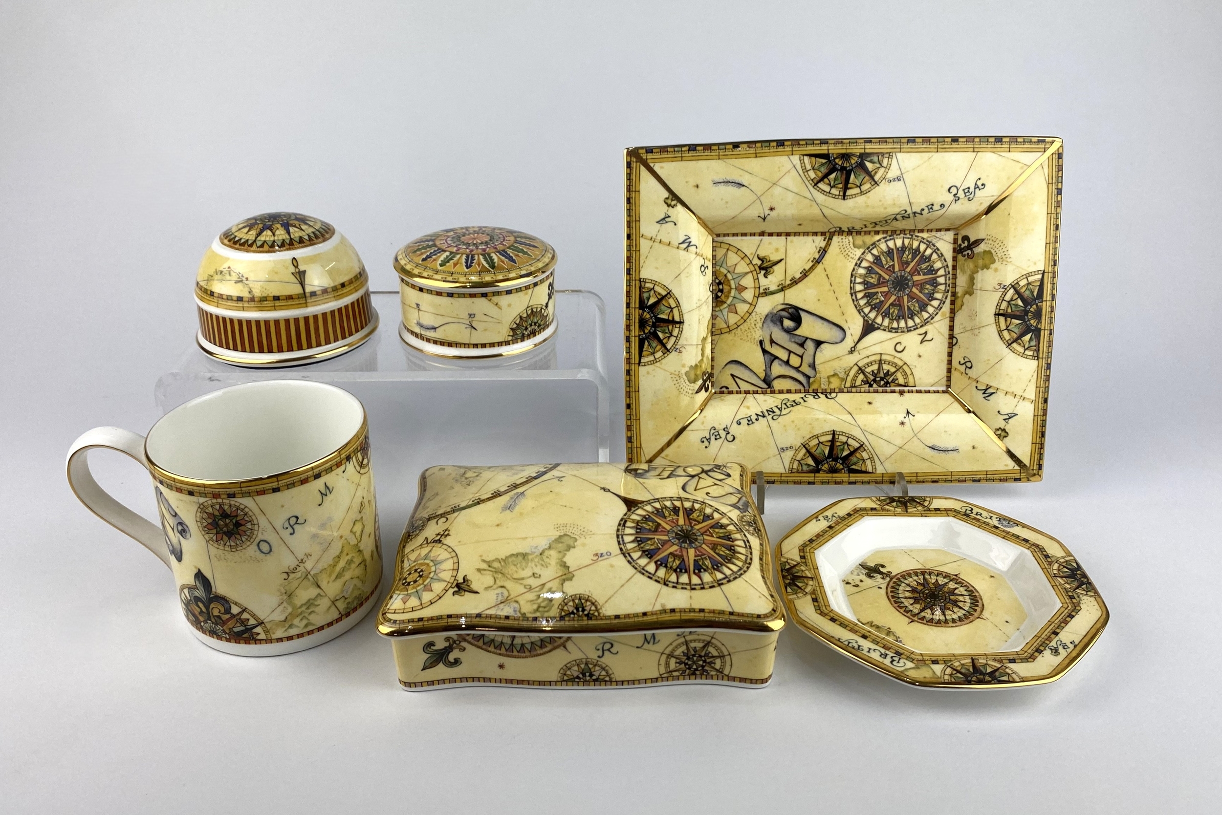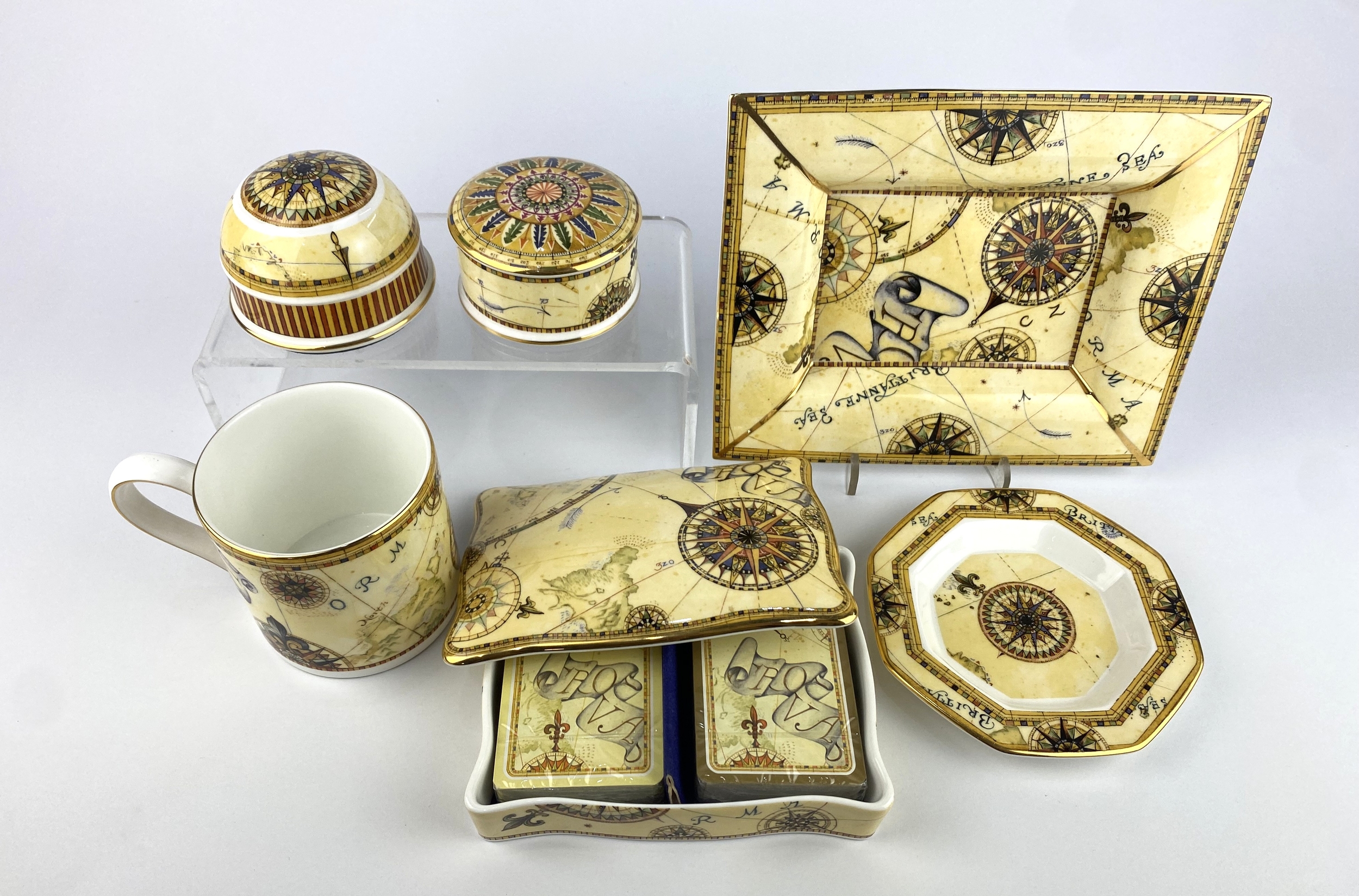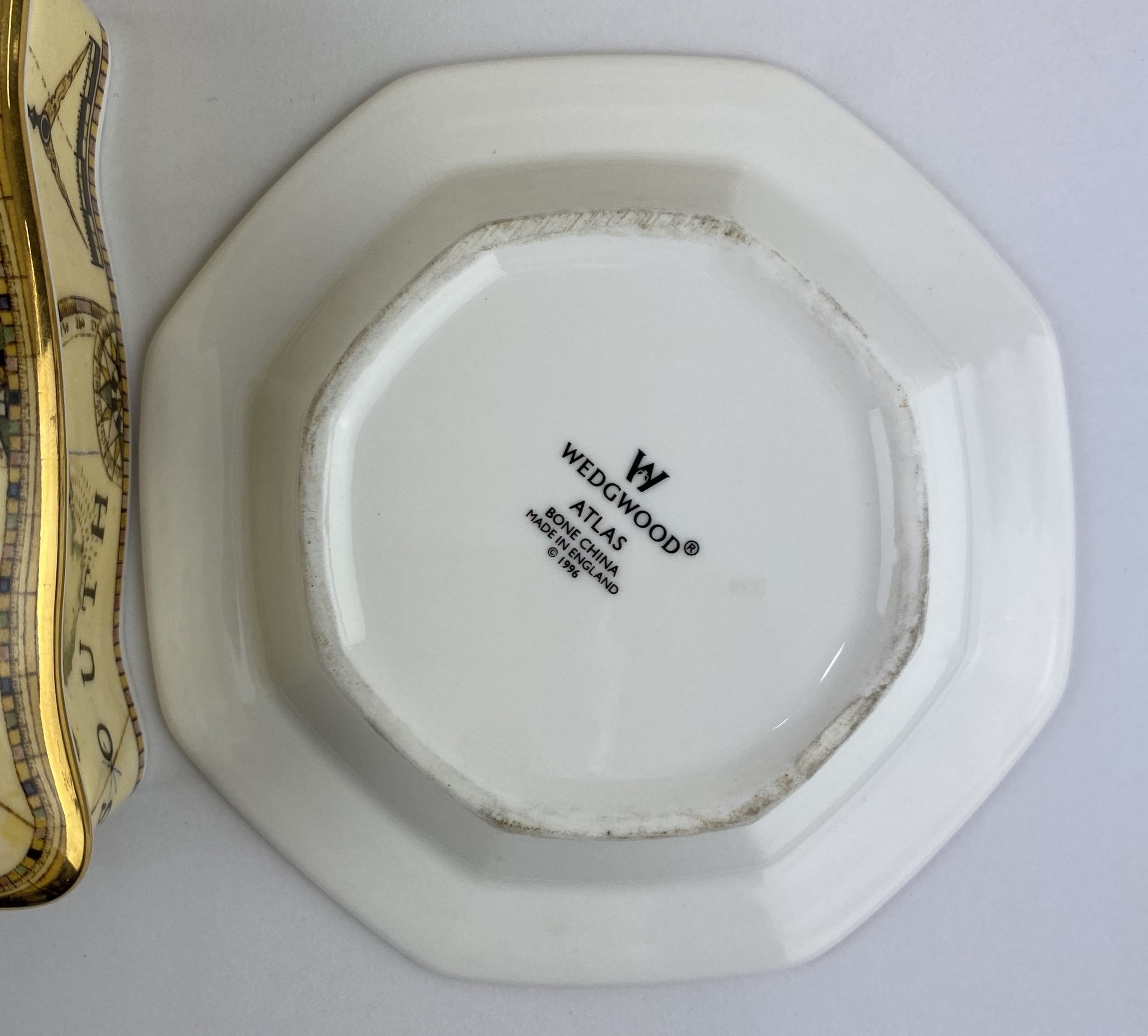 A collection of Wedgwood 'Atlas' pattern porcelain to include a domed paperweight, rectangular dish and cover containing unopened playing cards, and mug