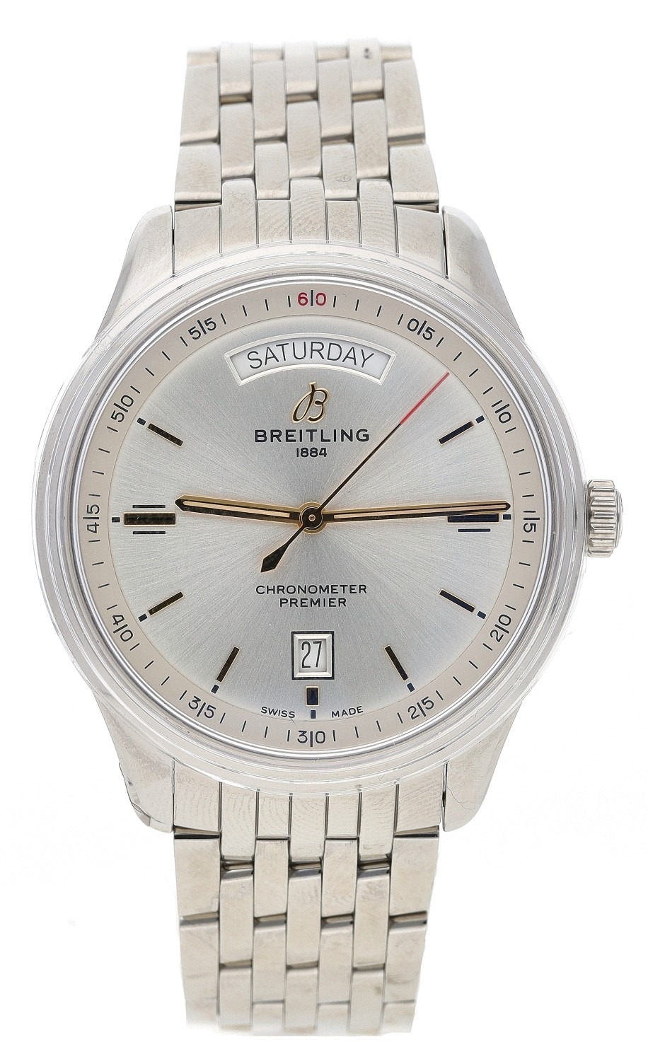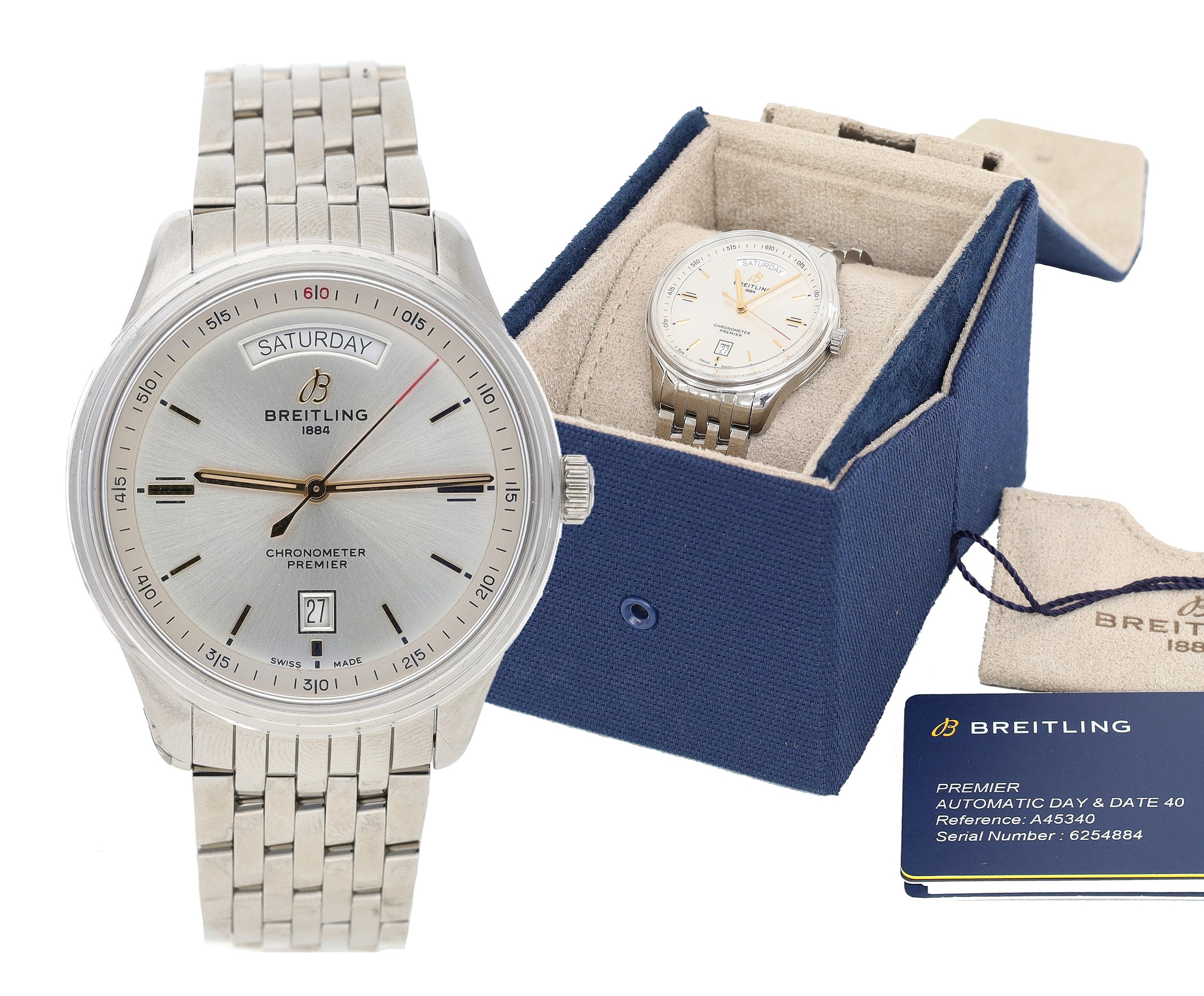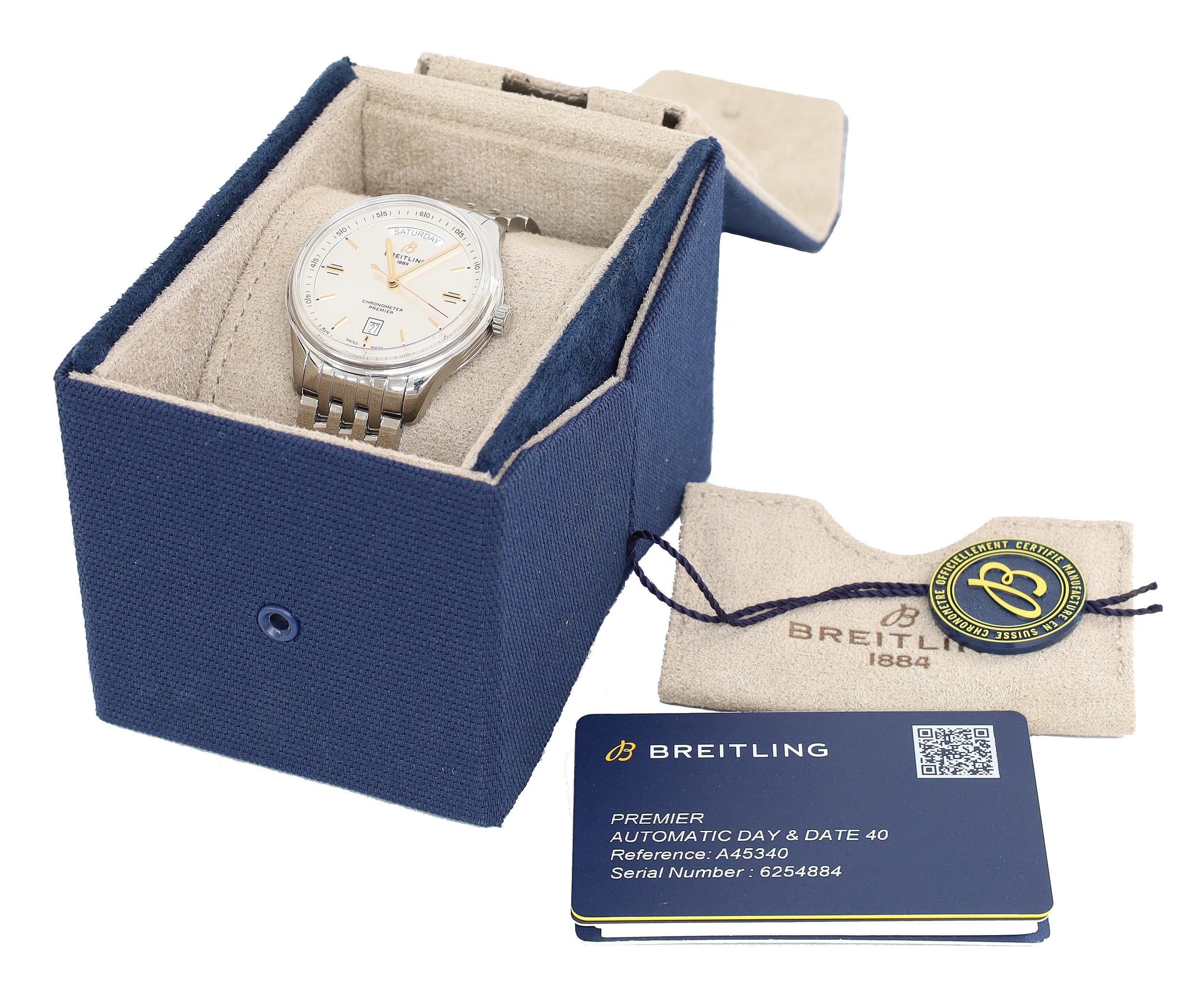 Breitling Premier Chronometer Day Date 40 automatic stainless steel gentleman's wristwatch, reference no. A45340, serial no. 6254xxx, circa 2024, silvered dial, 40mm