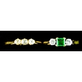 Two 18ct Gold Gem Set Rings, comprising - one set with a centre faceted emerald stone of approximately .3ct flanked either side by two brilliant cut white diamonds, size L, the other set with three small brilliant cut white diamonds of approximately .30ct, size P, total gross weight 5.2g