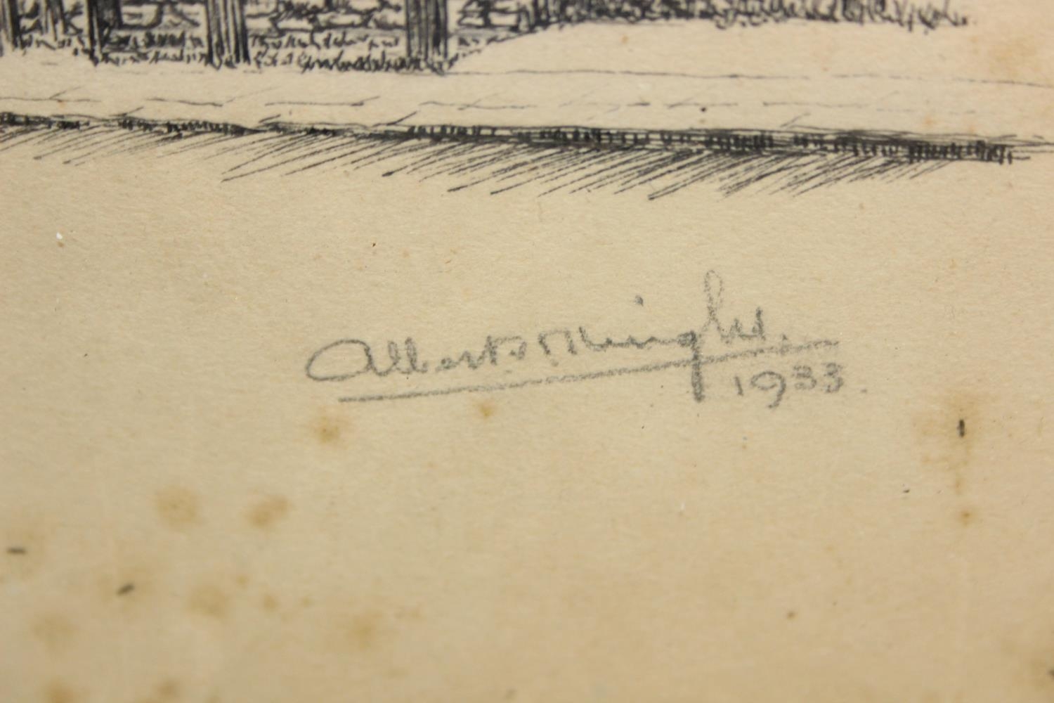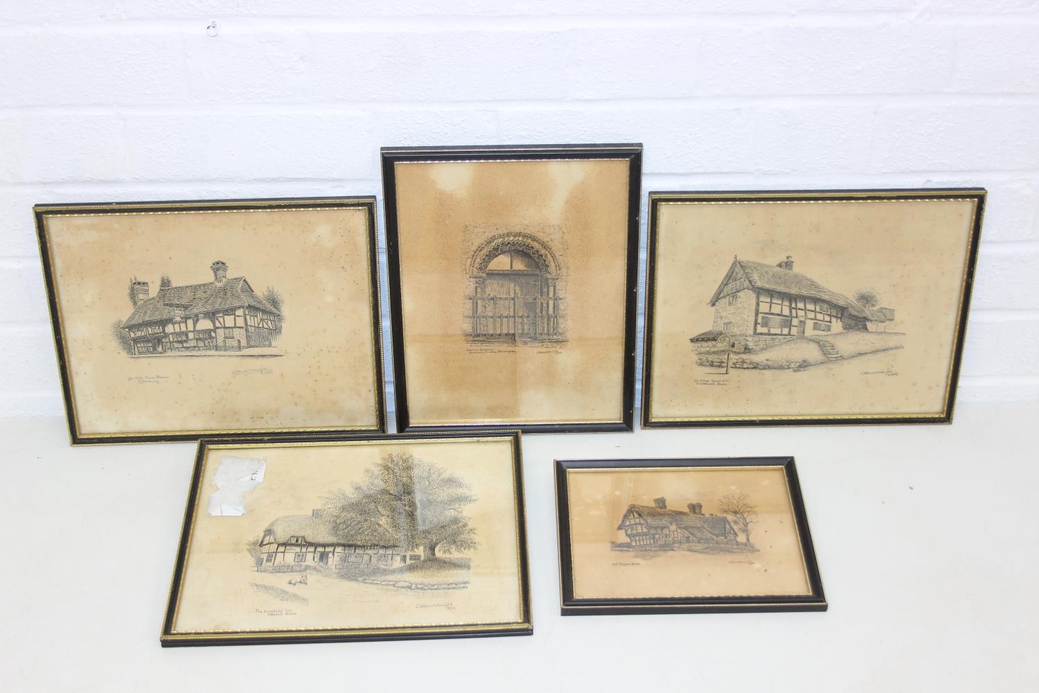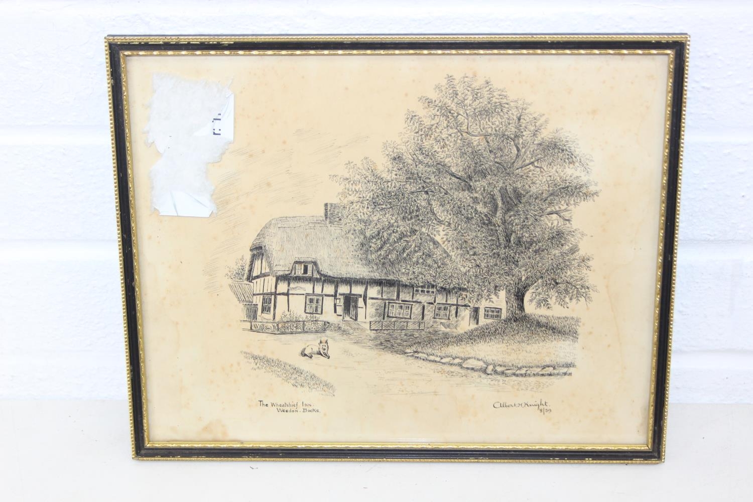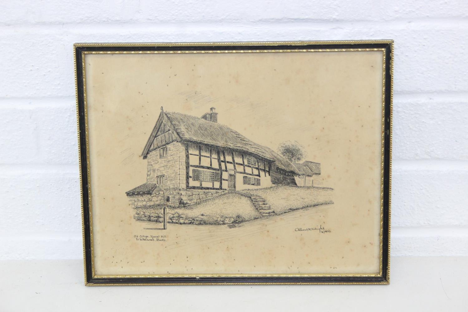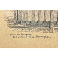 Albert H Knight (20th Century), five original pen and ink drawings of Tudor buildings within Bucks, places include Whitchurch, Claydon, Weedon & Buckingham, all dated to the 1930's, the largest 31cm x 25cm [5]