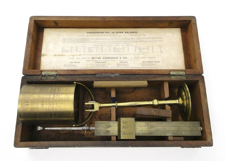 Victorian mahogany cased Bryan Corcoran chondrometer/corn balance, the case 31cm in length