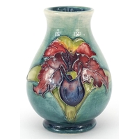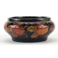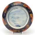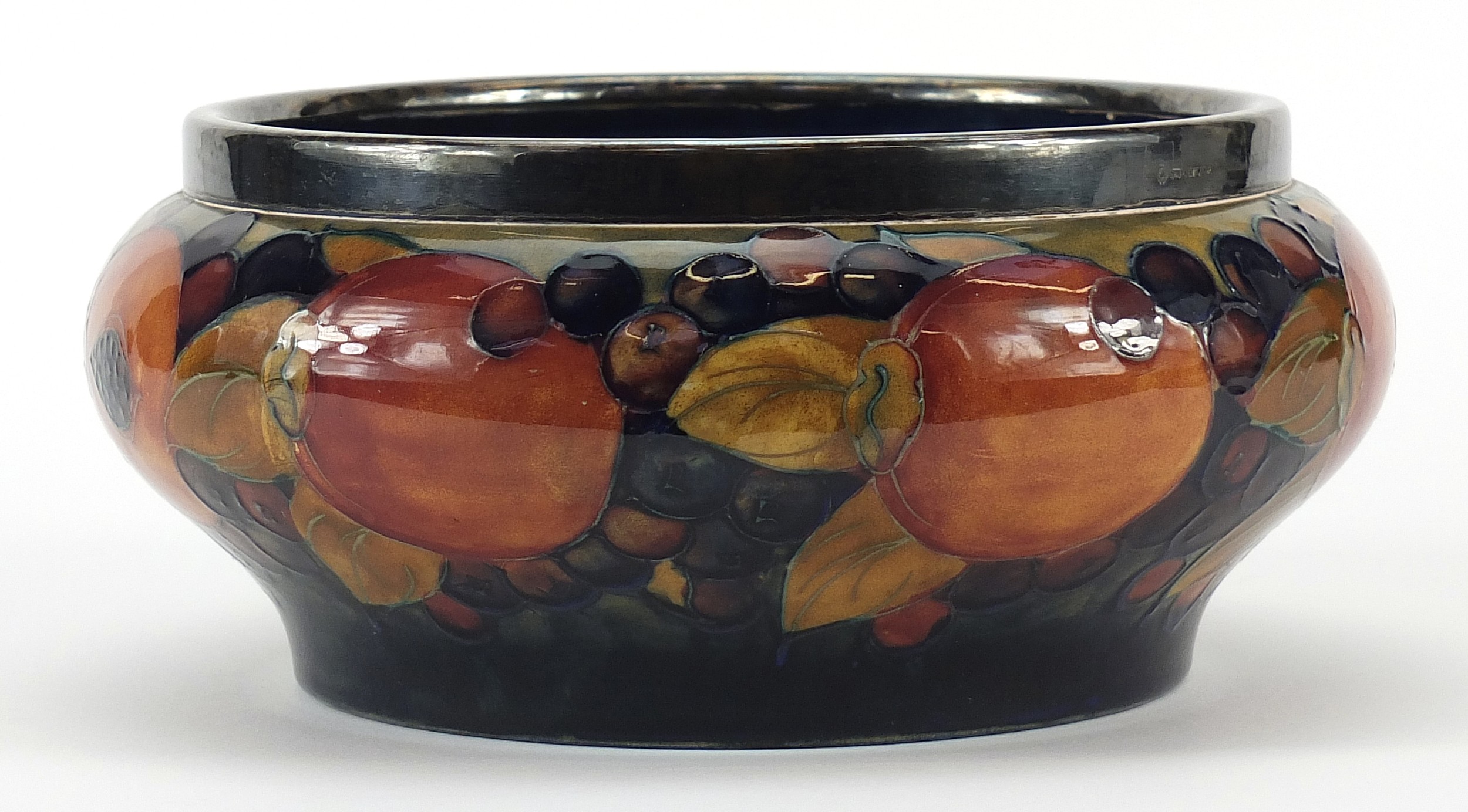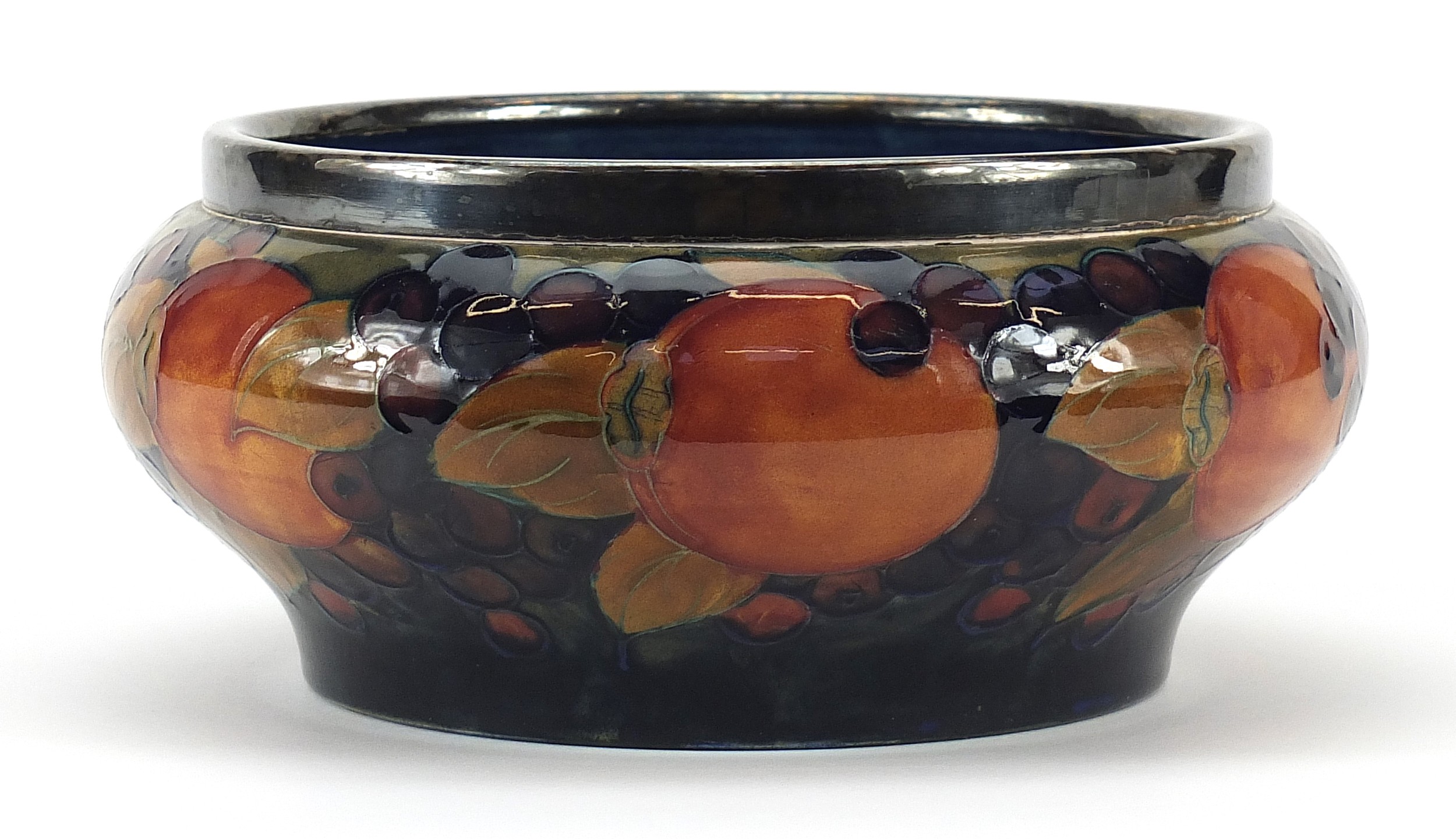 William Moorcroft pottery bowl with silver plated rim hand painted with flowers, 21cm in diameter