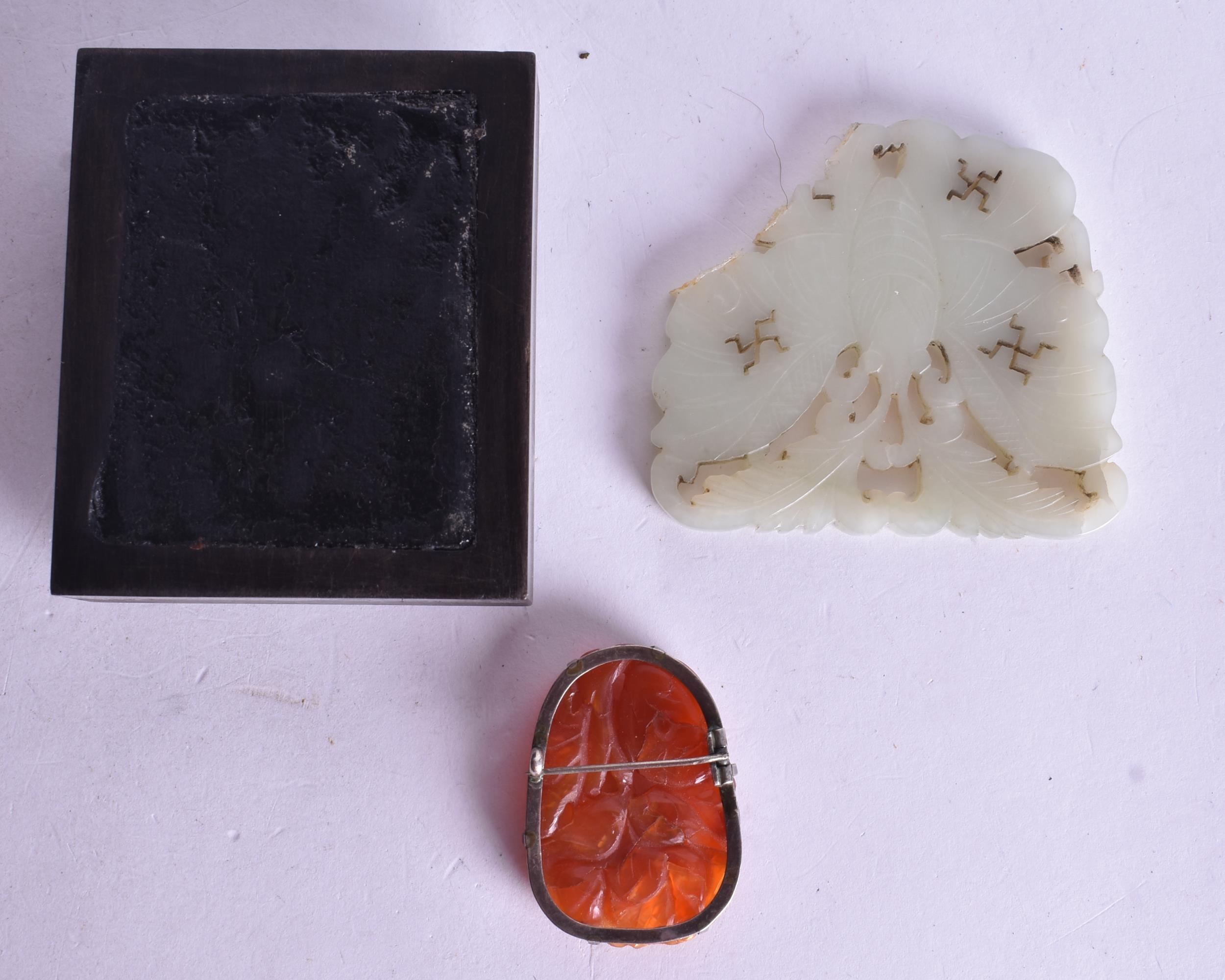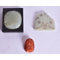 ASSORTED CHINESE QING DYNASTY JADE AND AGATE. Largest 8.5 cm wide. (3)