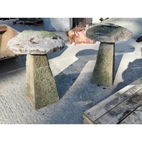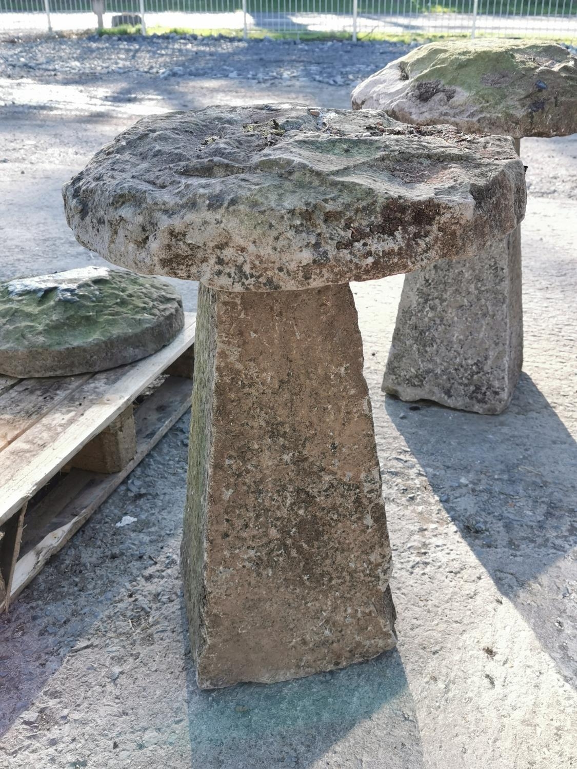 18th C. limestone saddle stone {72 cm H x 54 cm Dia.}.