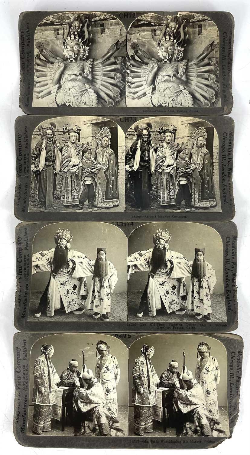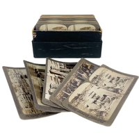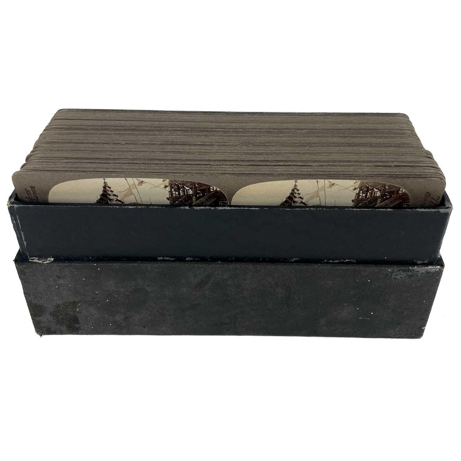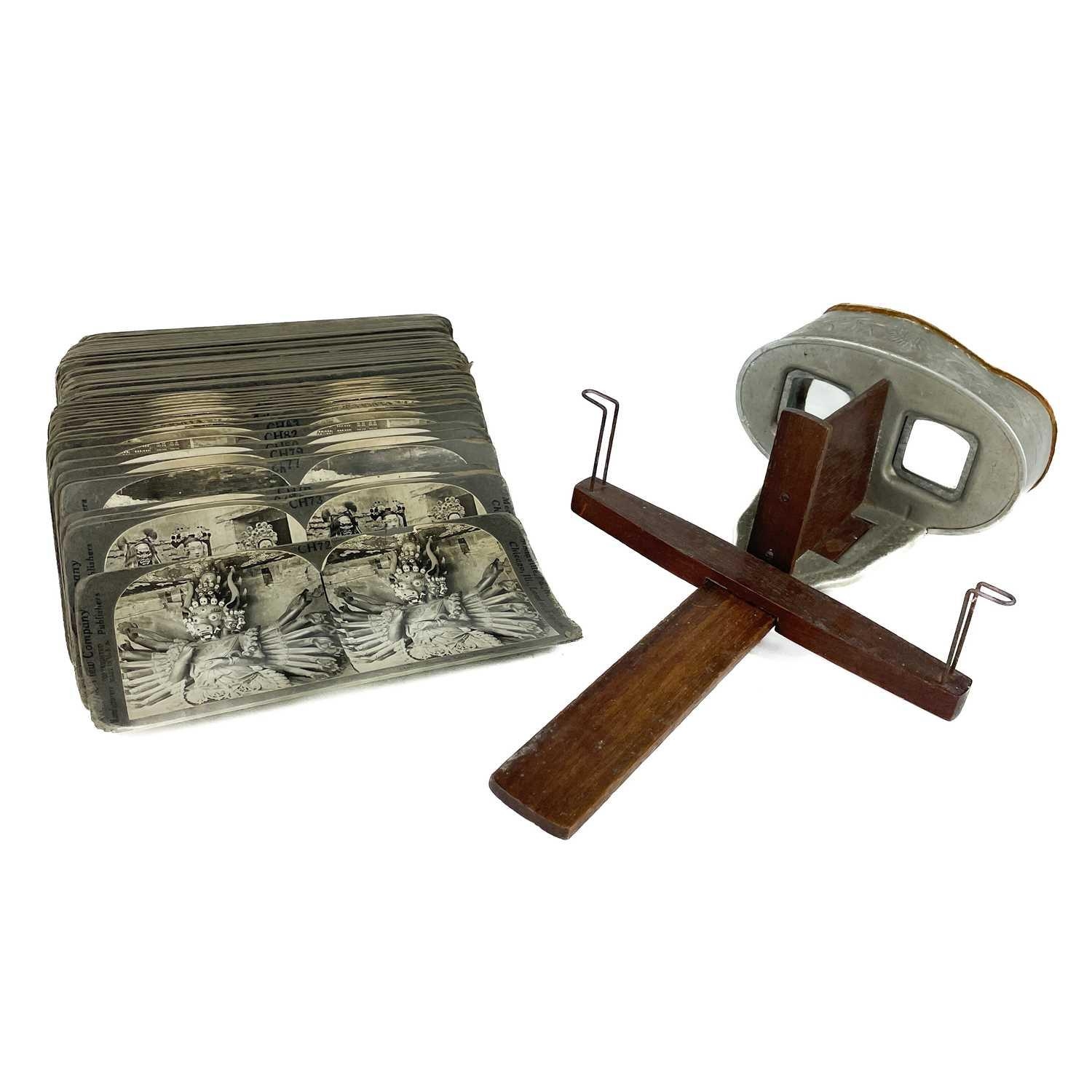 Seventy six stereoviews relating to China, circa 1900-1910. Together with an Underwood & Underwood stereoscope, length 32cm and original stereoviews receipt, bought in Paris for 2300 euros. (78) some losses to cards but mainly good. Extra images of every card now on our website www.davidlay.co.uk