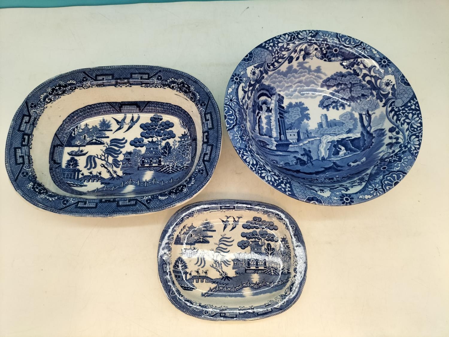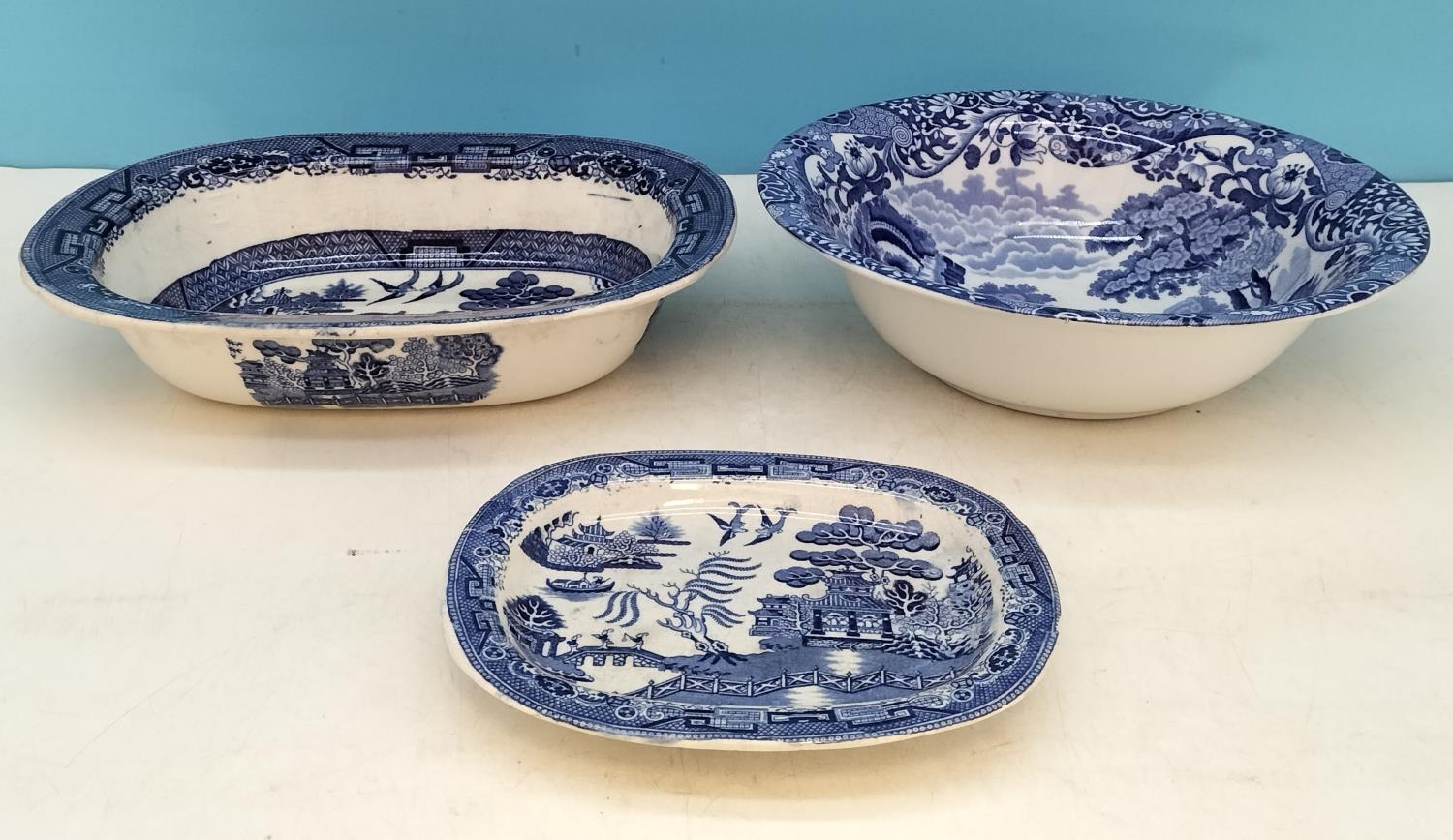 3 Pieces of Blue and White China to include Copeland Spode 'Italian' Bowl 7cm High, 24cm Diameter.