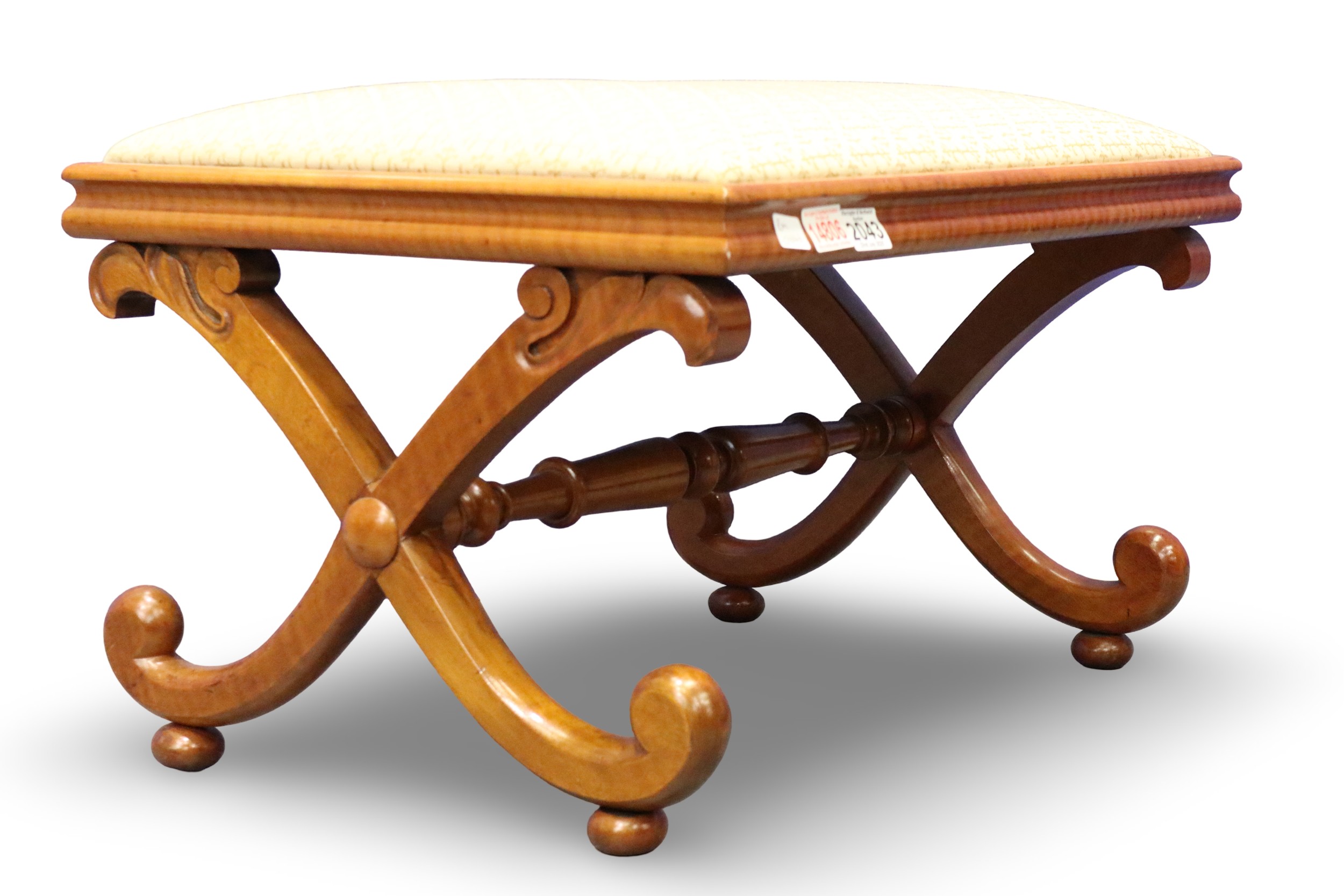 X-frame stool with upholstered top, 65 x 50 x 40cmH. Not available for in-house P&P