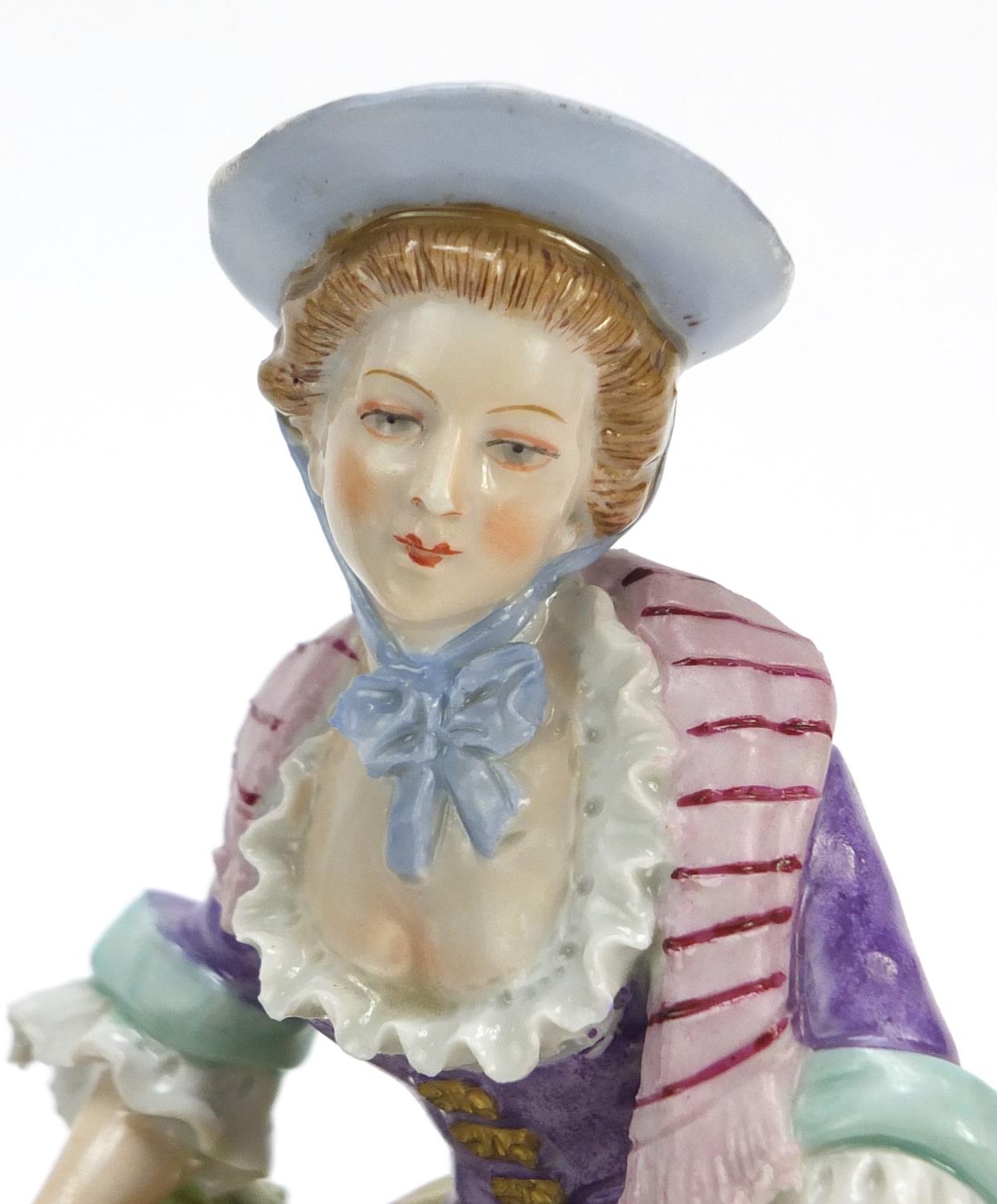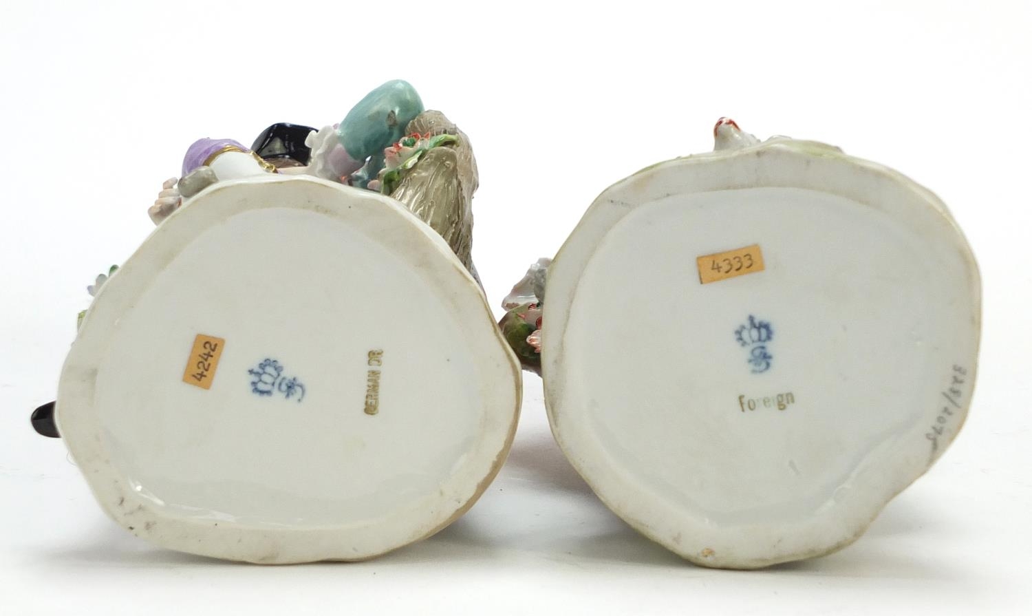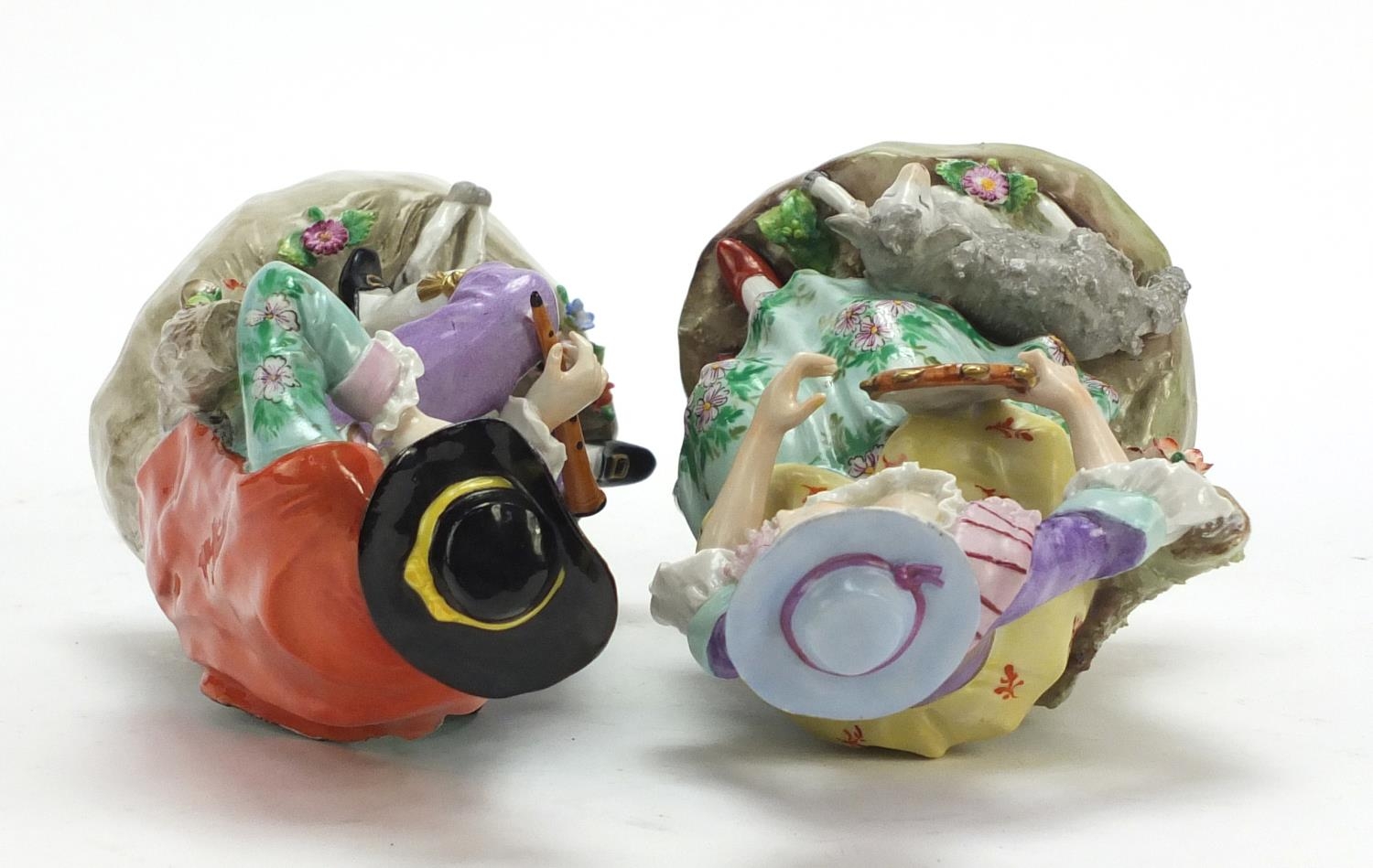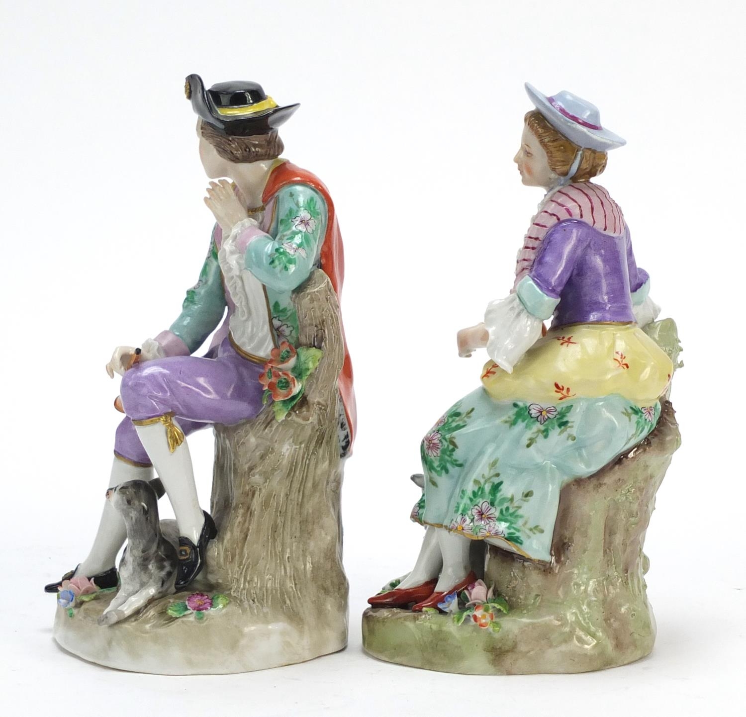 Pair of German hand painted Dresden porcelain figures of a shepherd and shepherdess, 19cm high