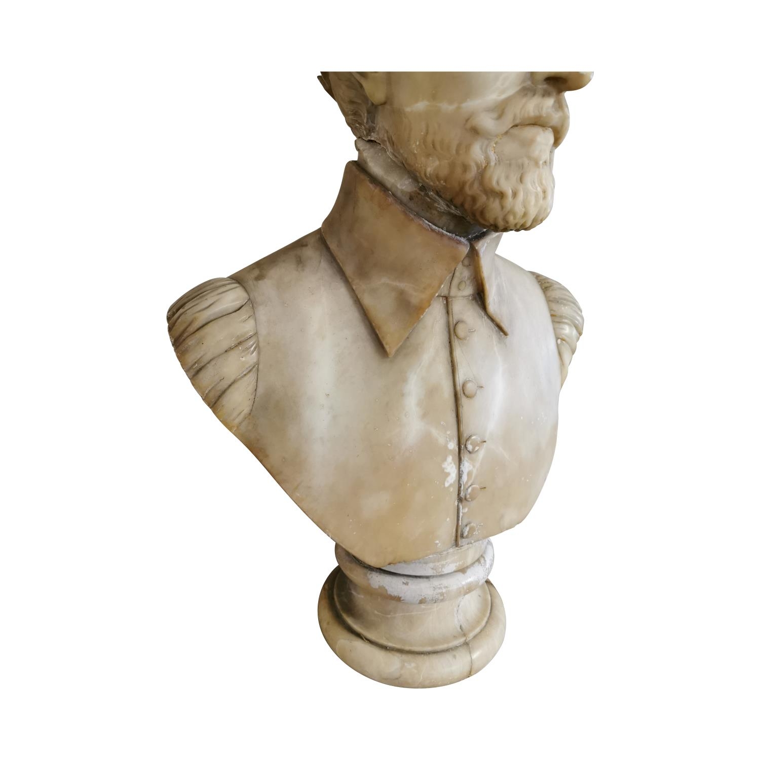 19th C. alabastar bust of a Gentleman {70 cm H x 46 cm W}.