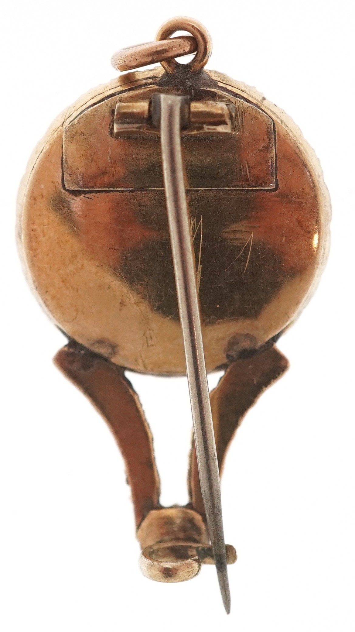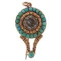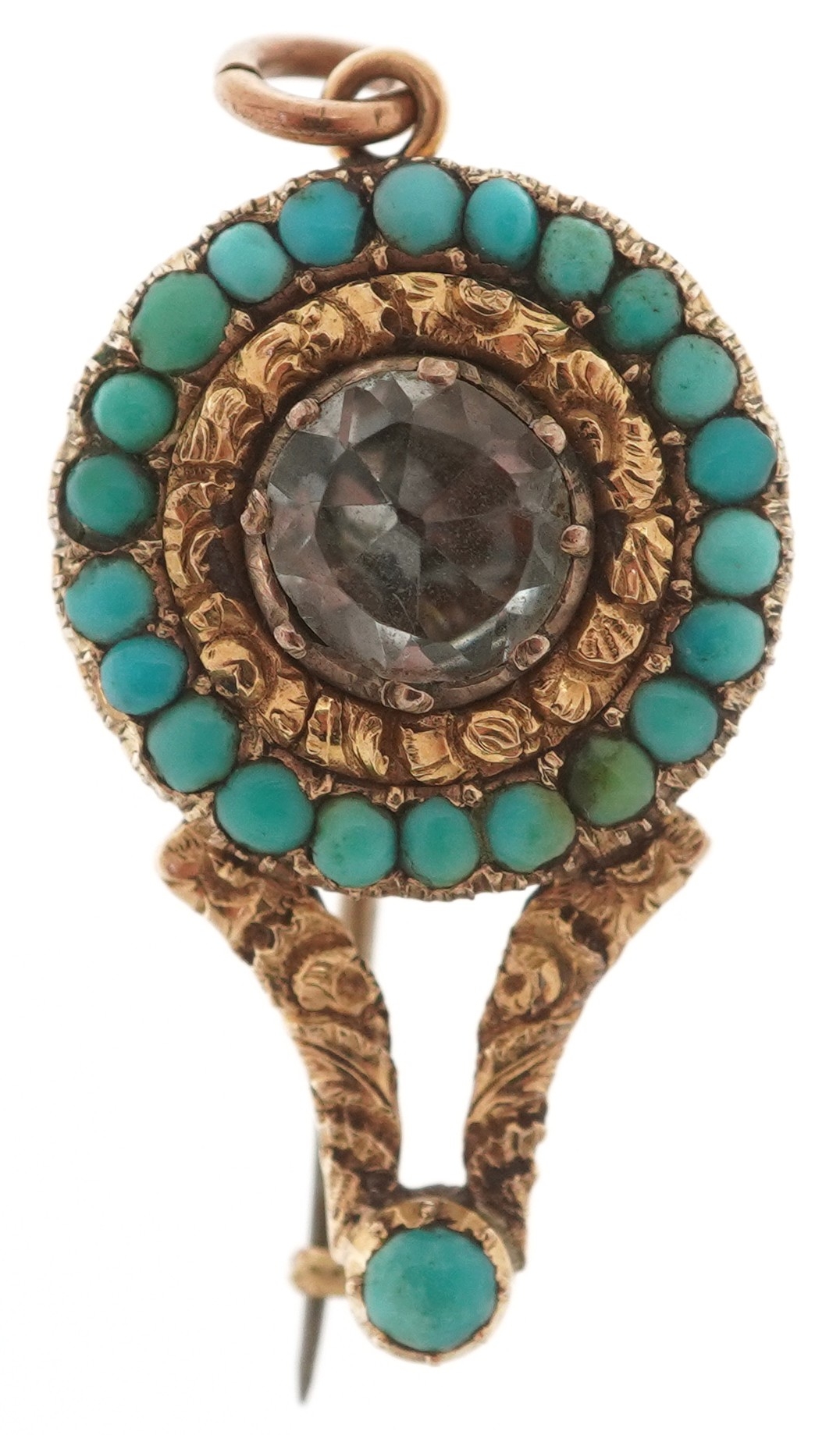 An antique unmarked gold turquoise and topaz pendant brooch, 2.7cm wide, 4.0g.