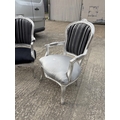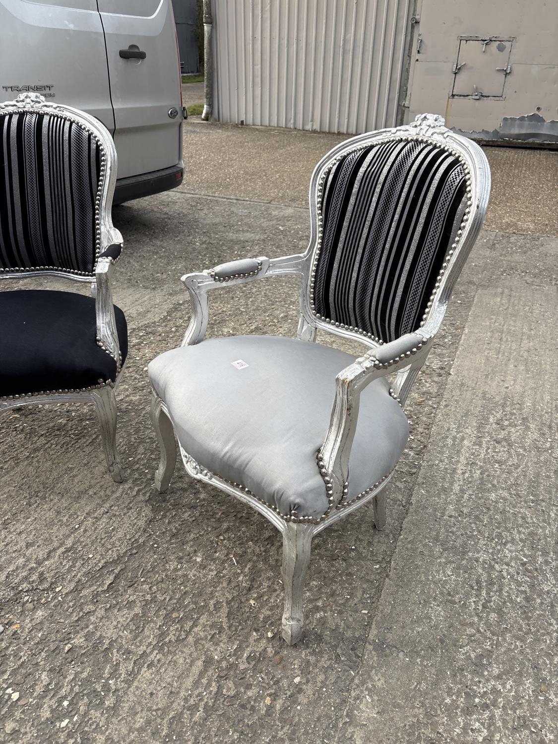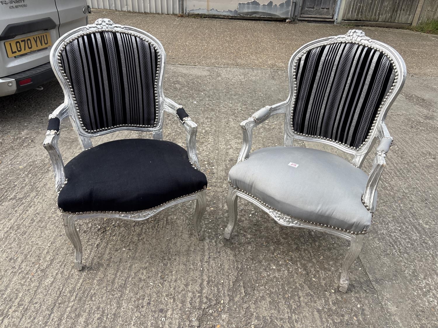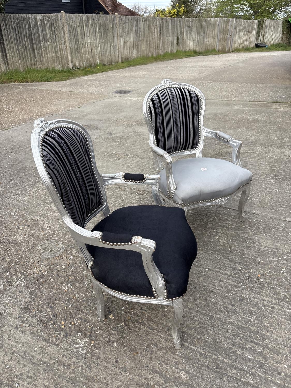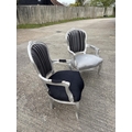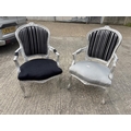 Two black and silver throne style armchairs