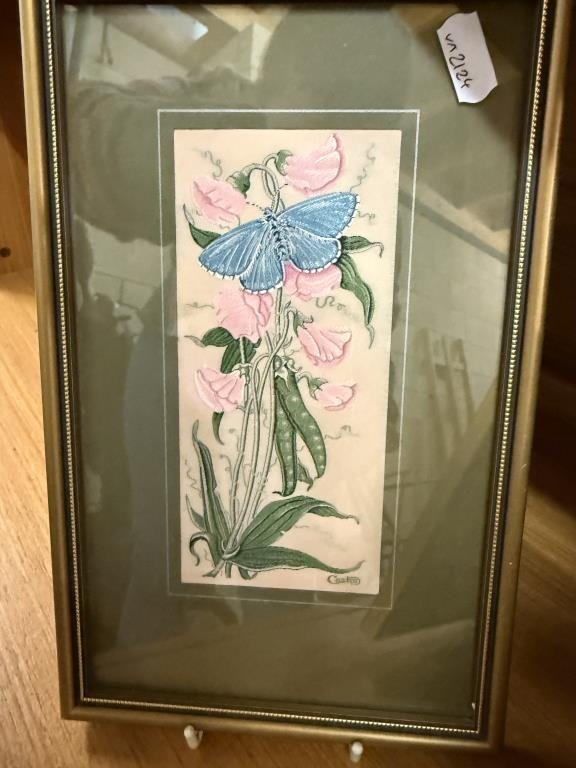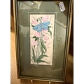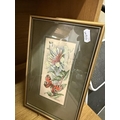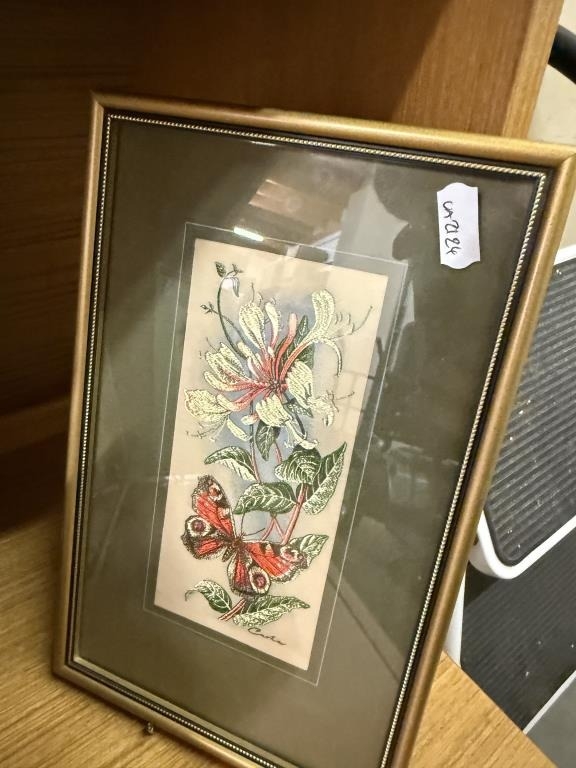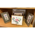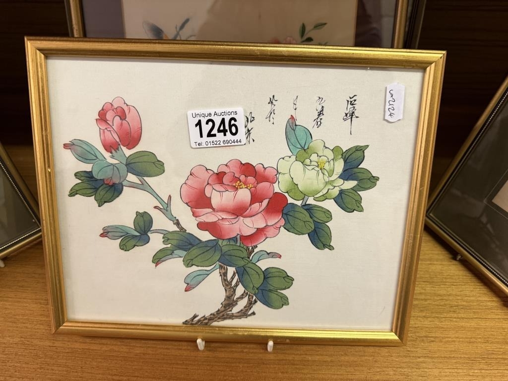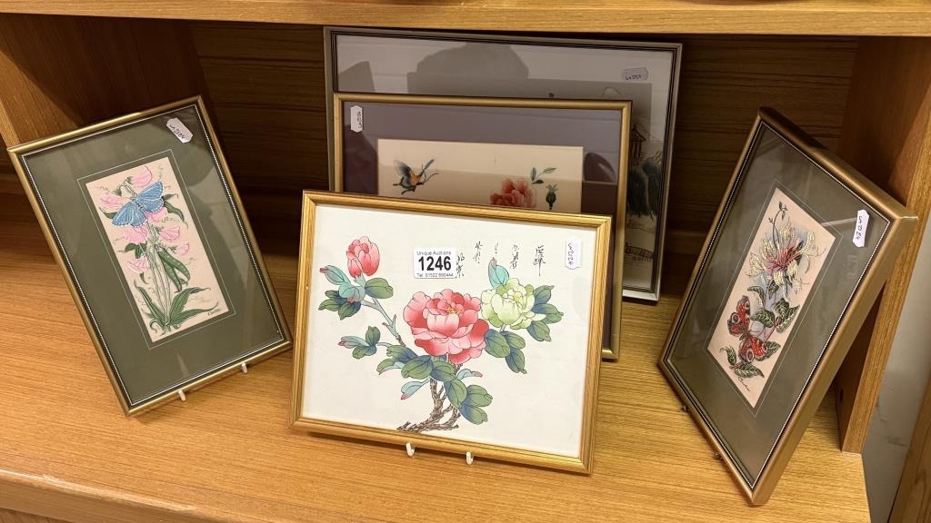 2 framed & glazed Cash's silks & 3 oriental silks/drawings