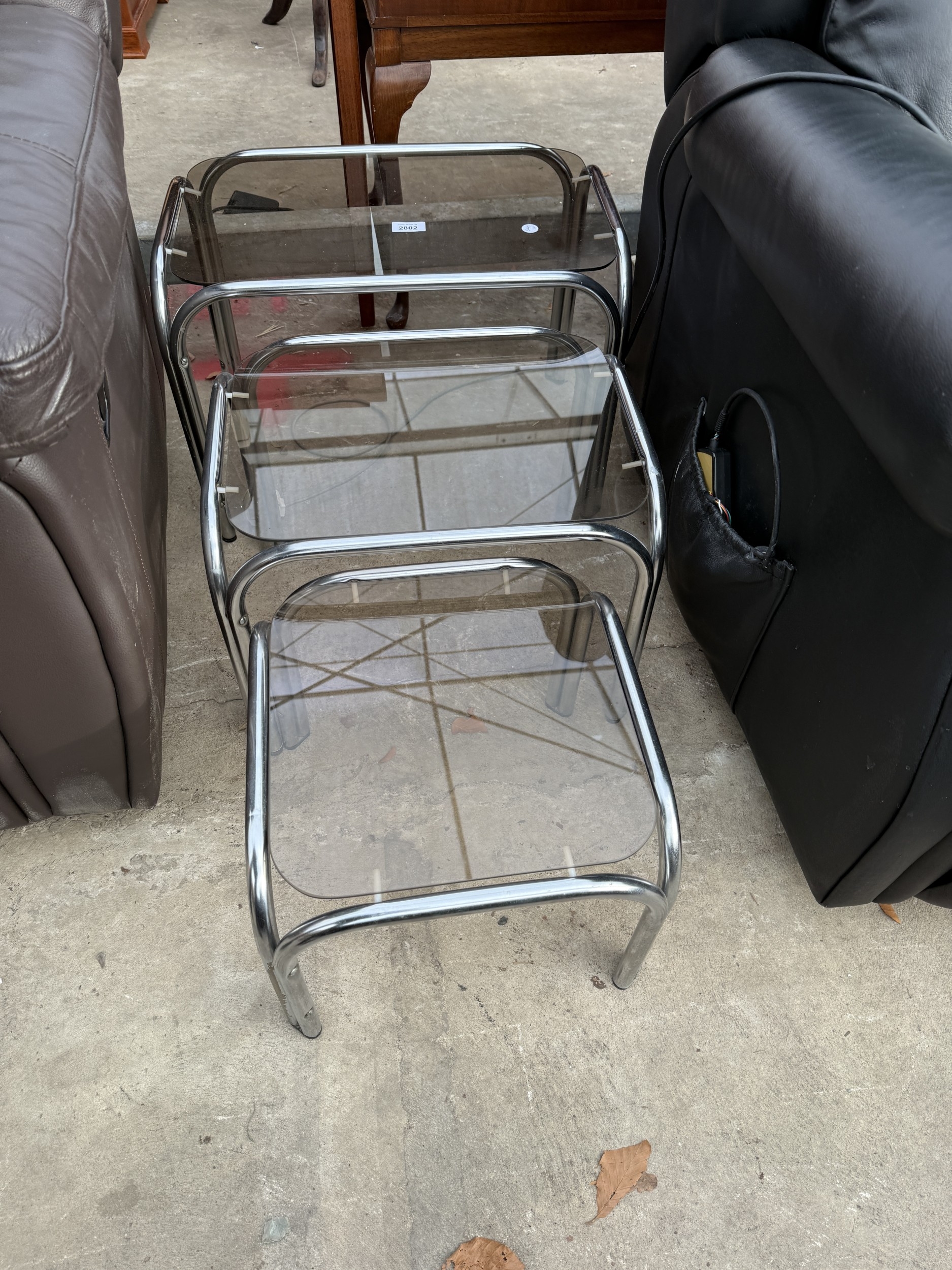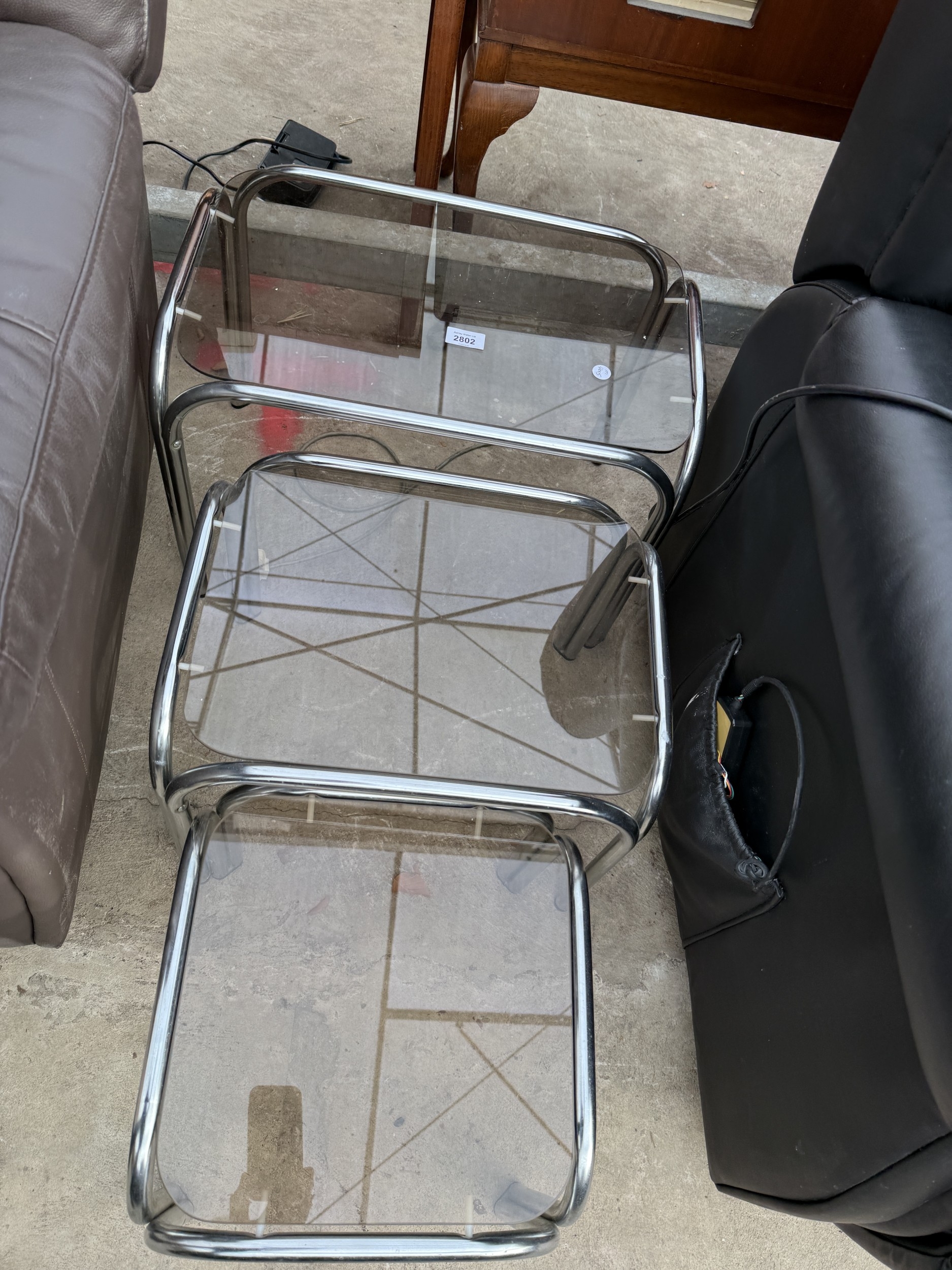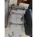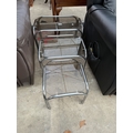 A TUBULAR CHROME AND GLASS NEST OF THRE TABLES