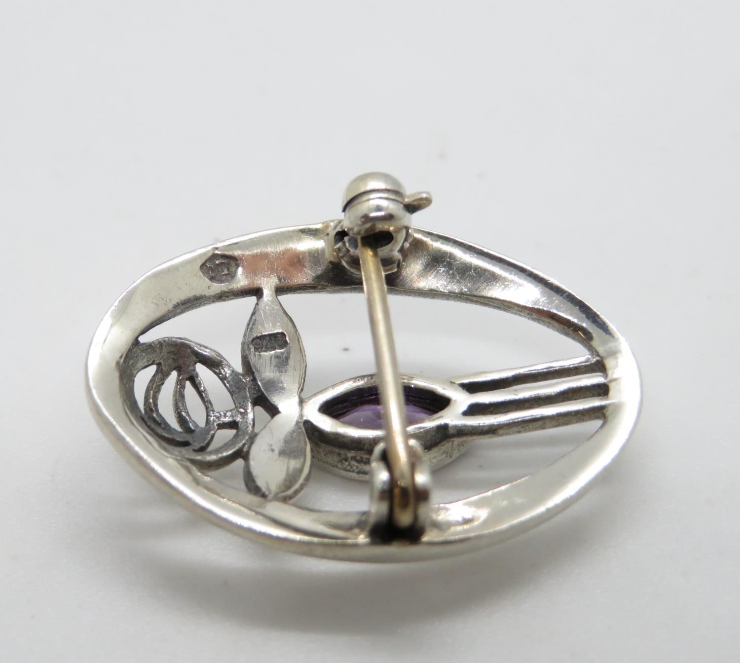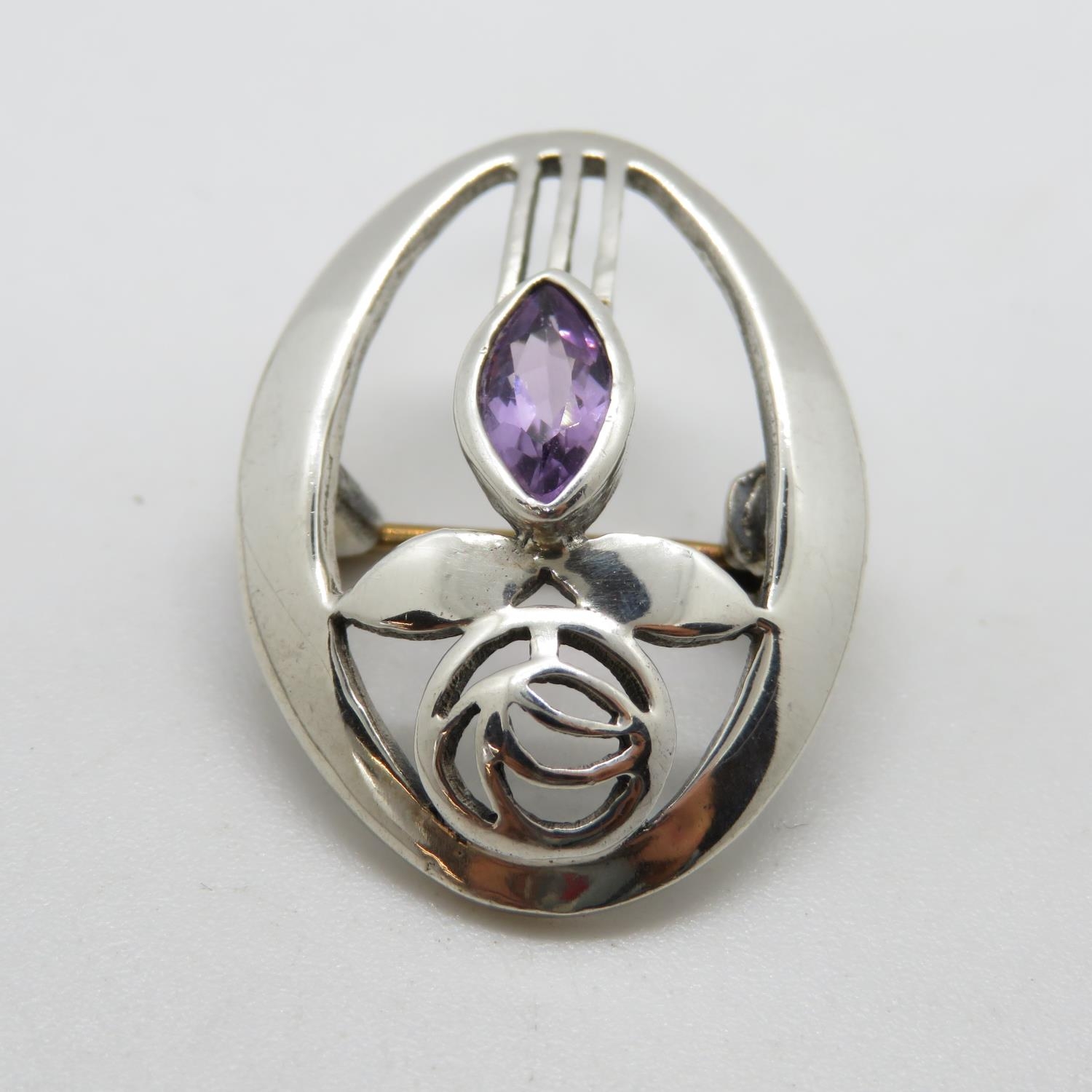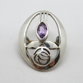 Charles Rennie design silver brooch with amethyst