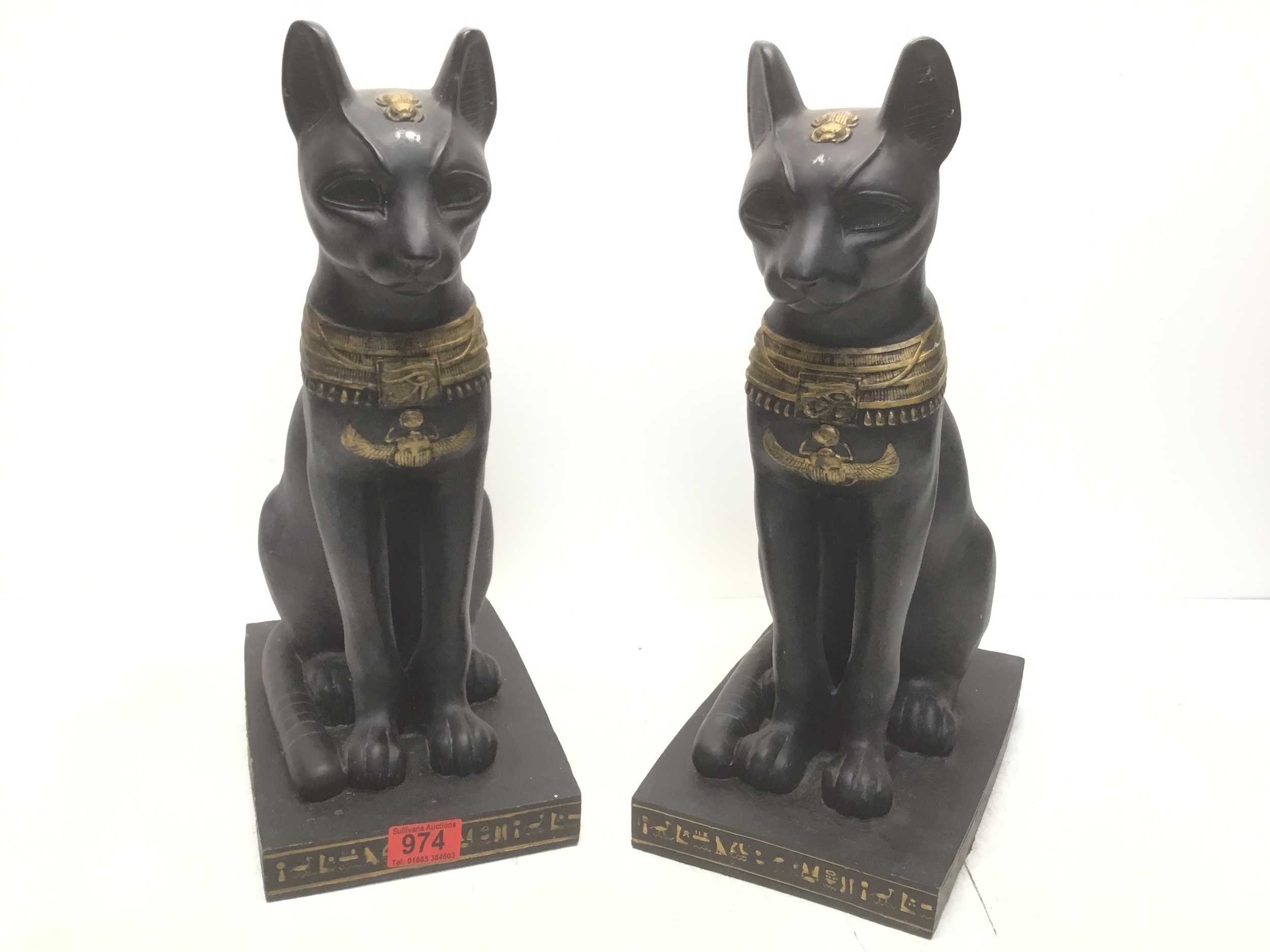 A pair of statues of Bastet, the ancient Egyptian goddess of cats, fertility, and protection 43cm