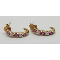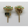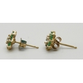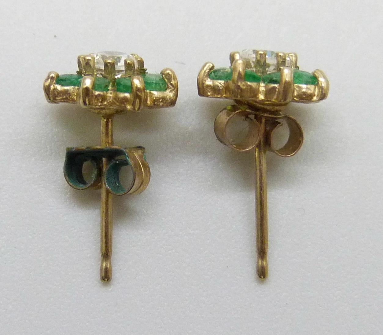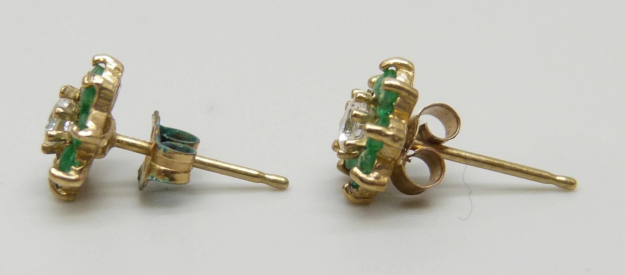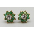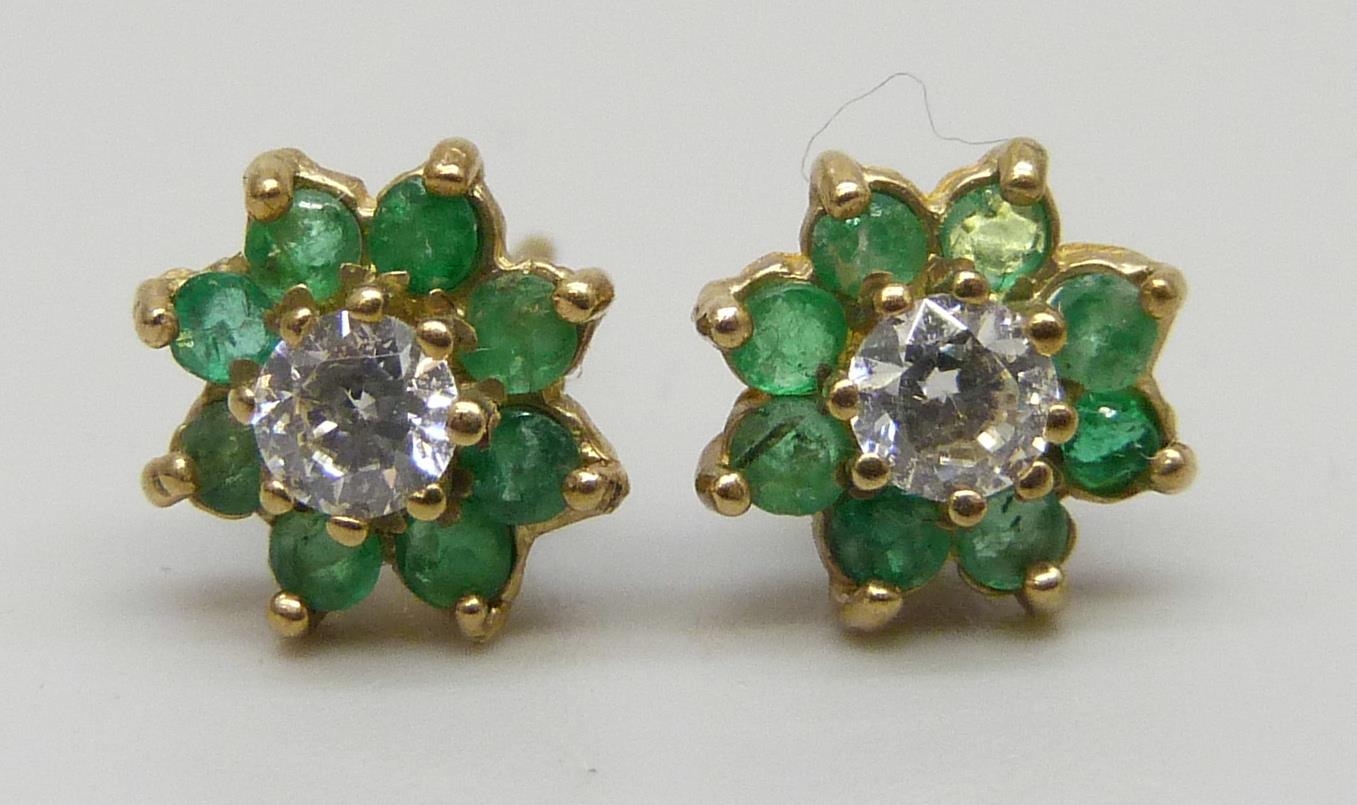 A pair of yellow metal, emerald and white stone earrings, 0.6cm, 0.7g