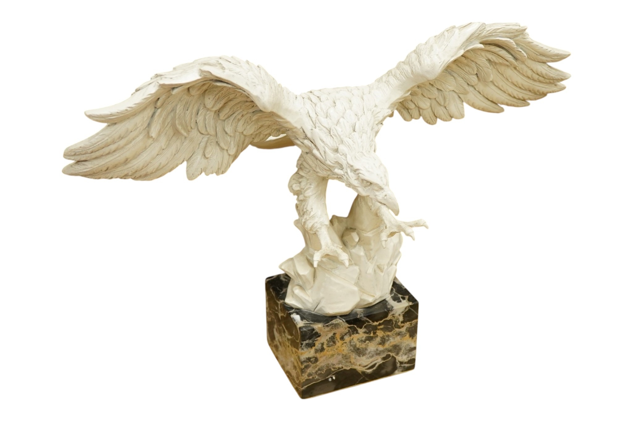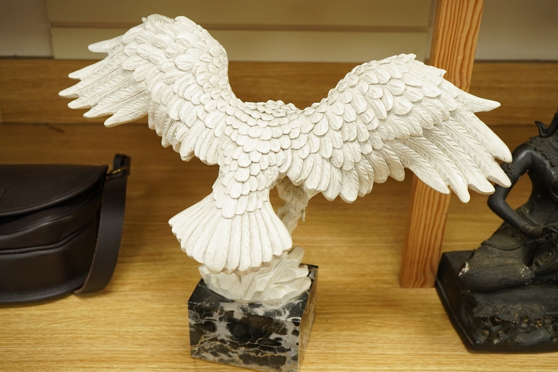 A composition figure of an eagle, indistinctly signed, raised on marble base, 34cm high