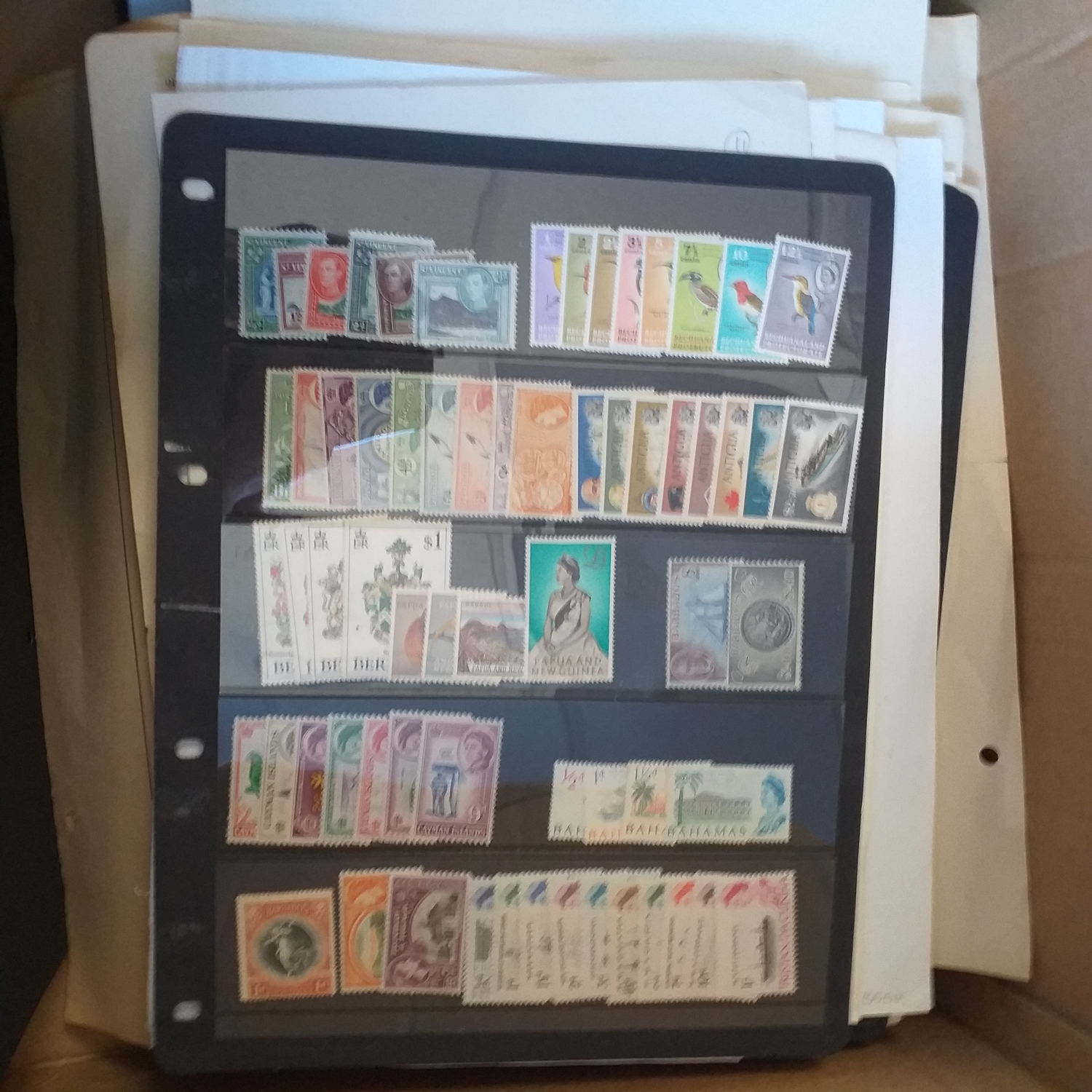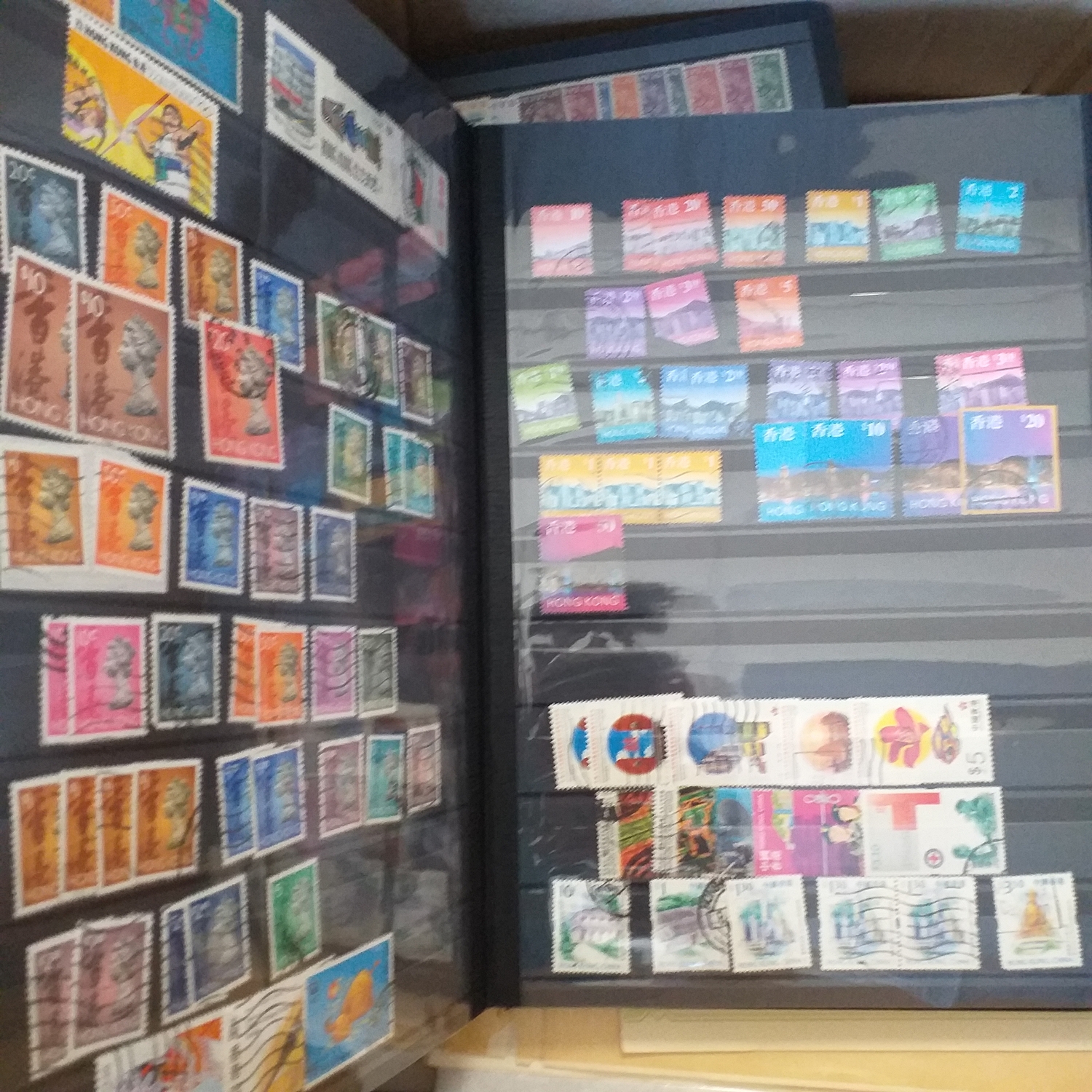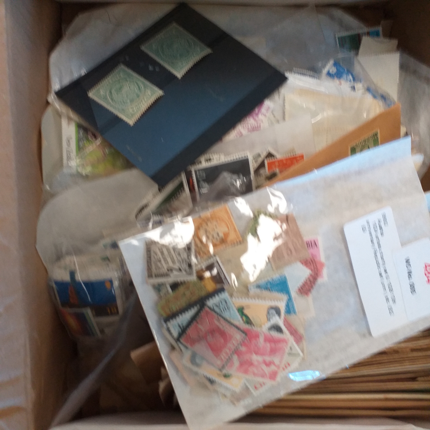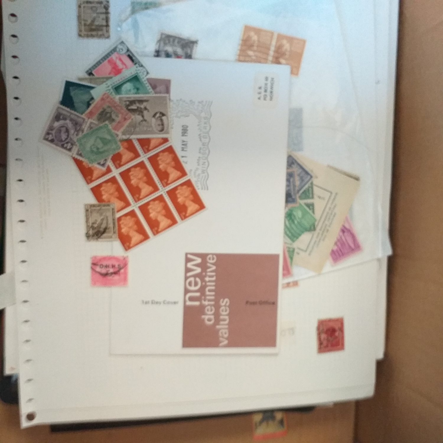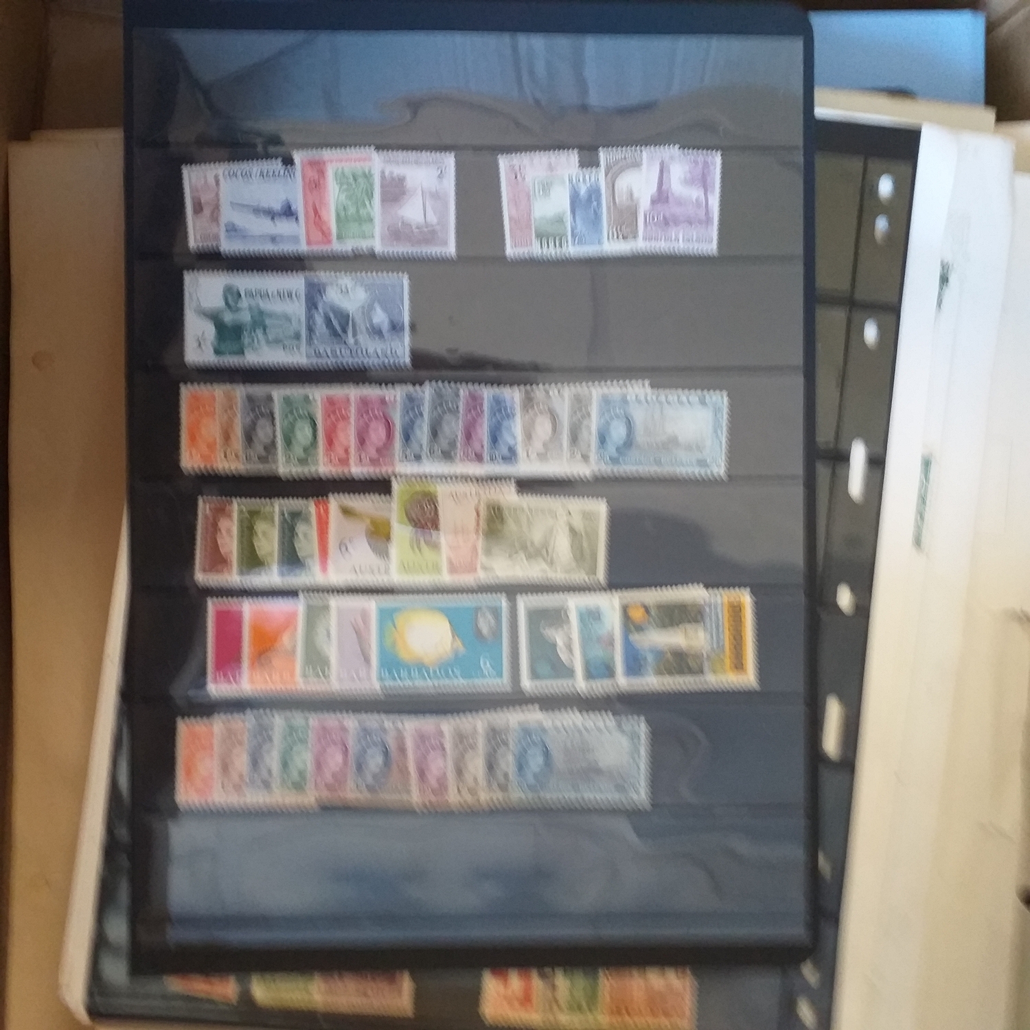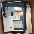 A large glory box packed with stamps on leaves/hangers, albums/stock books etc.