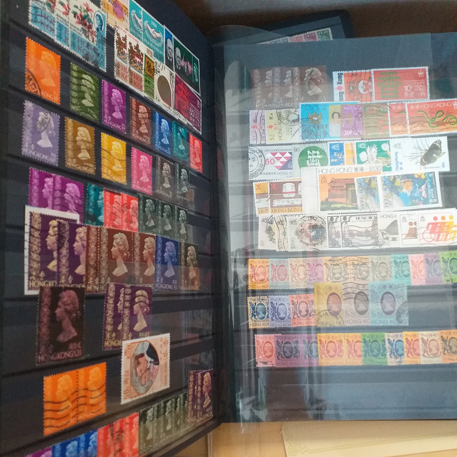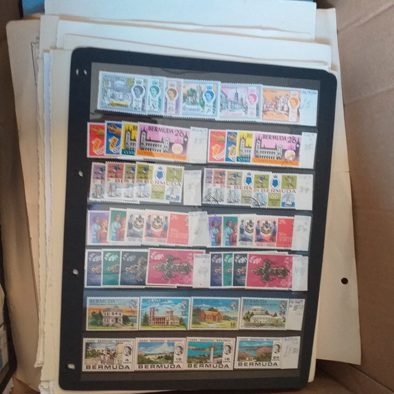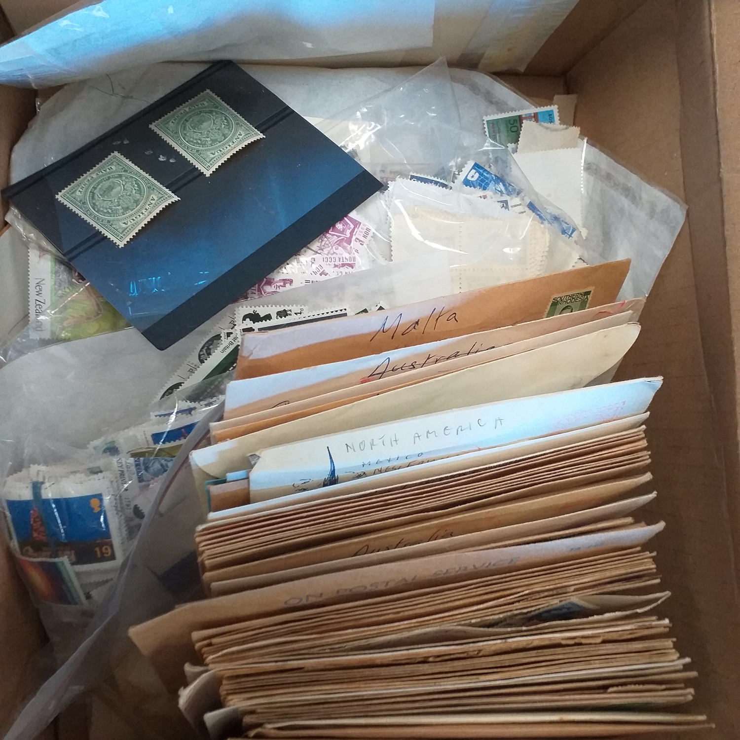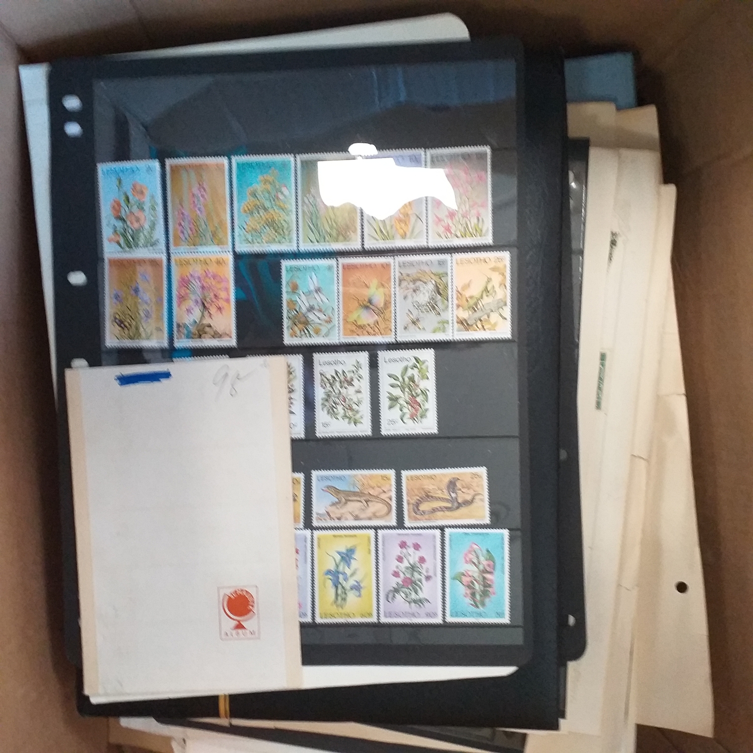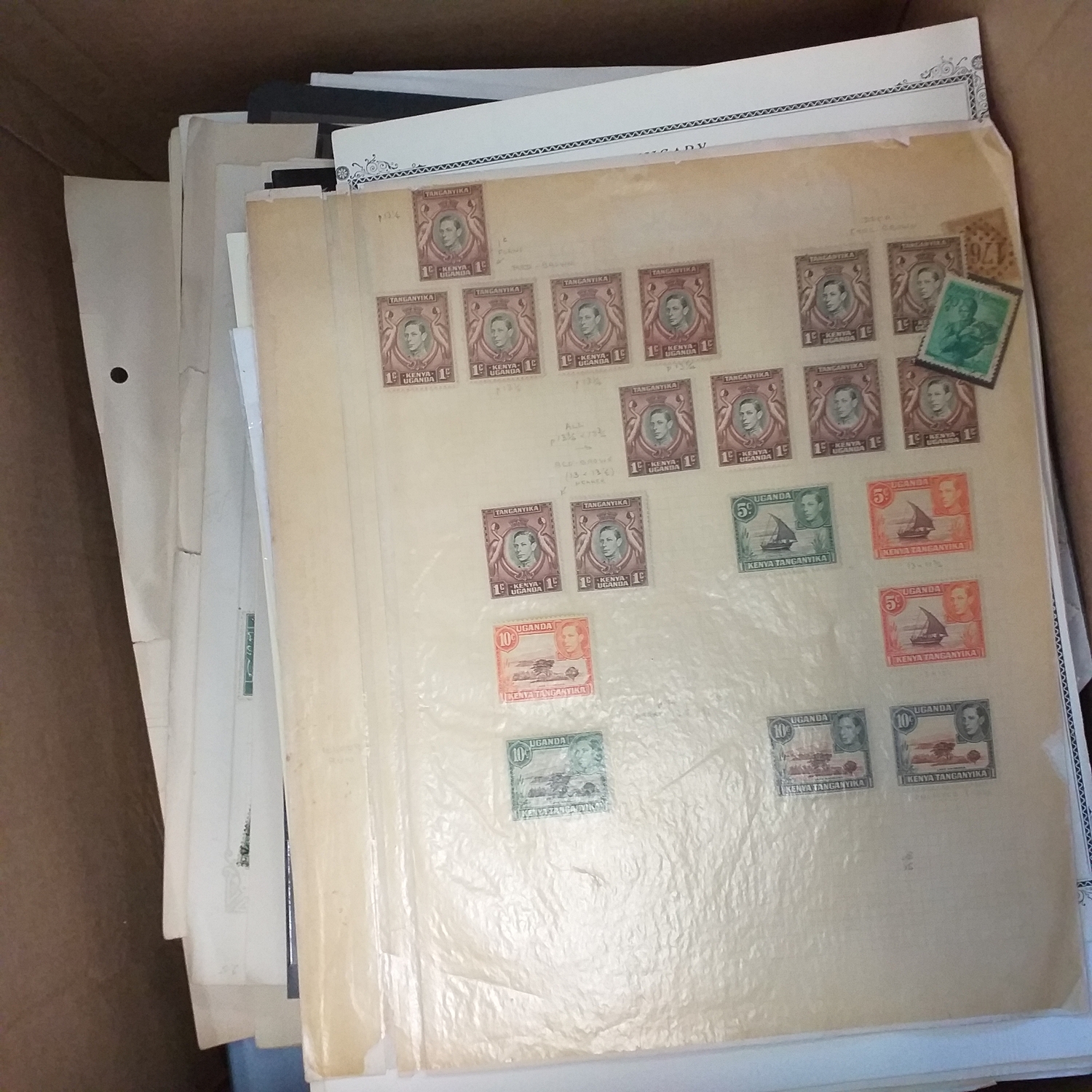 A large glory box packed with stamps on leaves/hangers, albums/stock books etc.