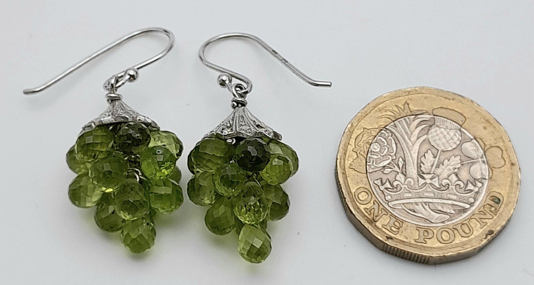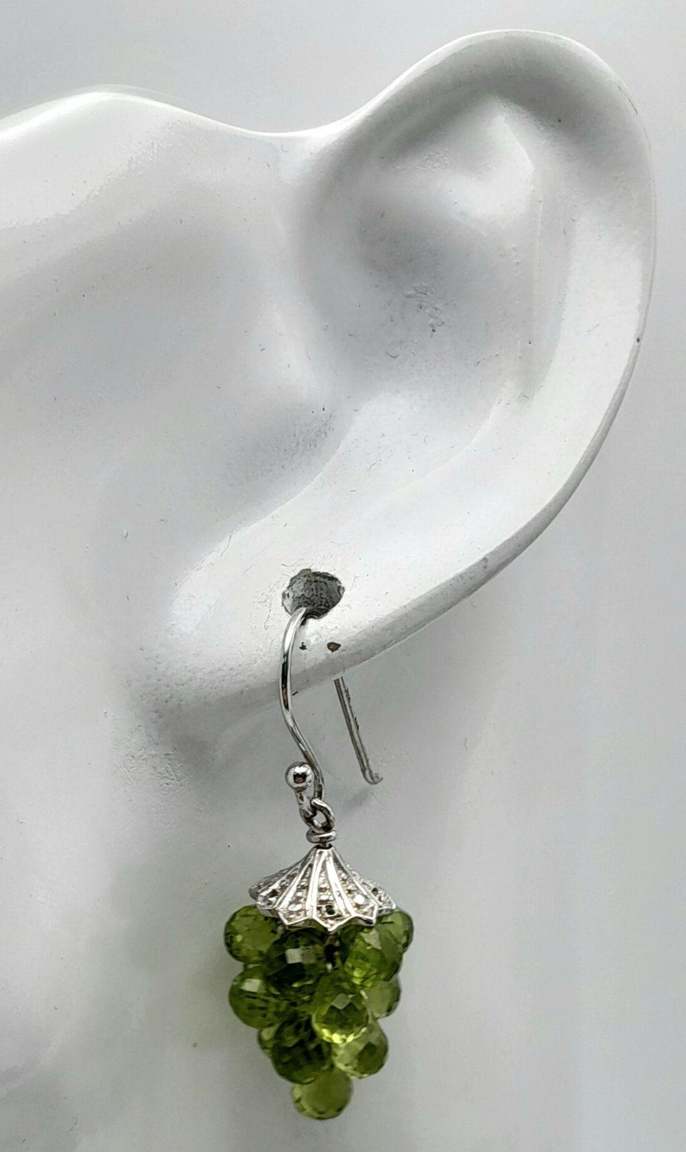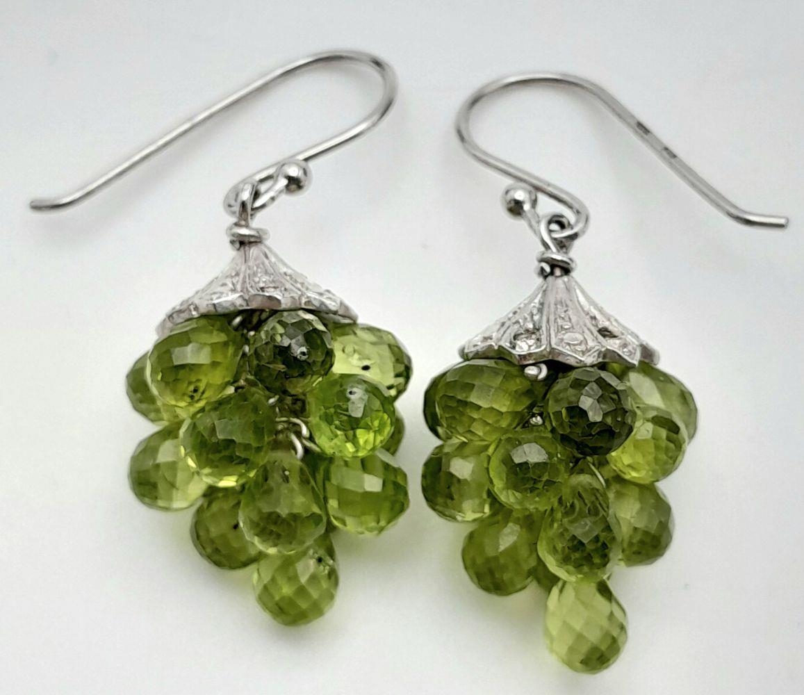 A Unique Pair of Sterling Silver Peridot Set ‘Bacchus’ Design Earrings. 3.5cm Drop. 1.5cm Width.