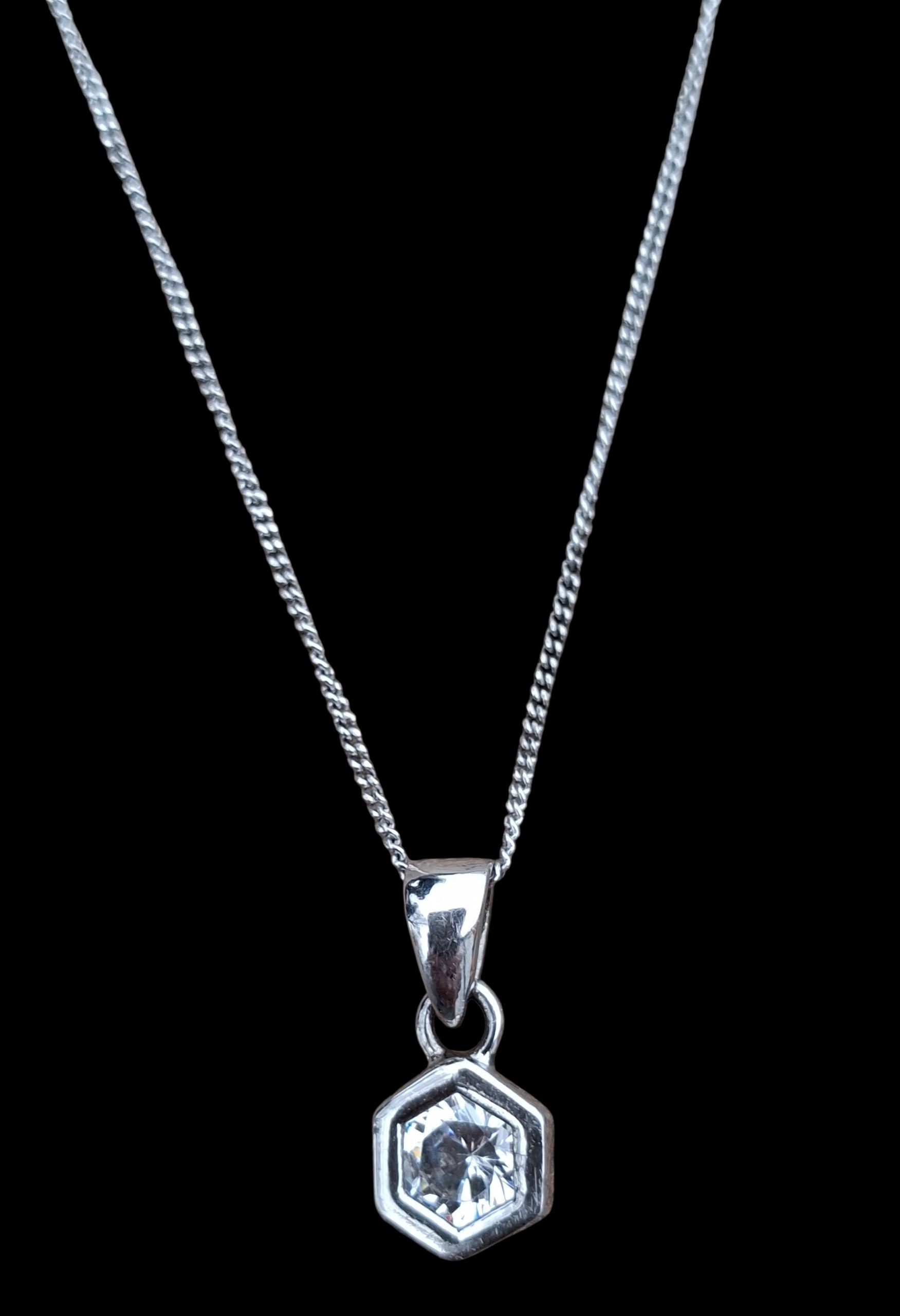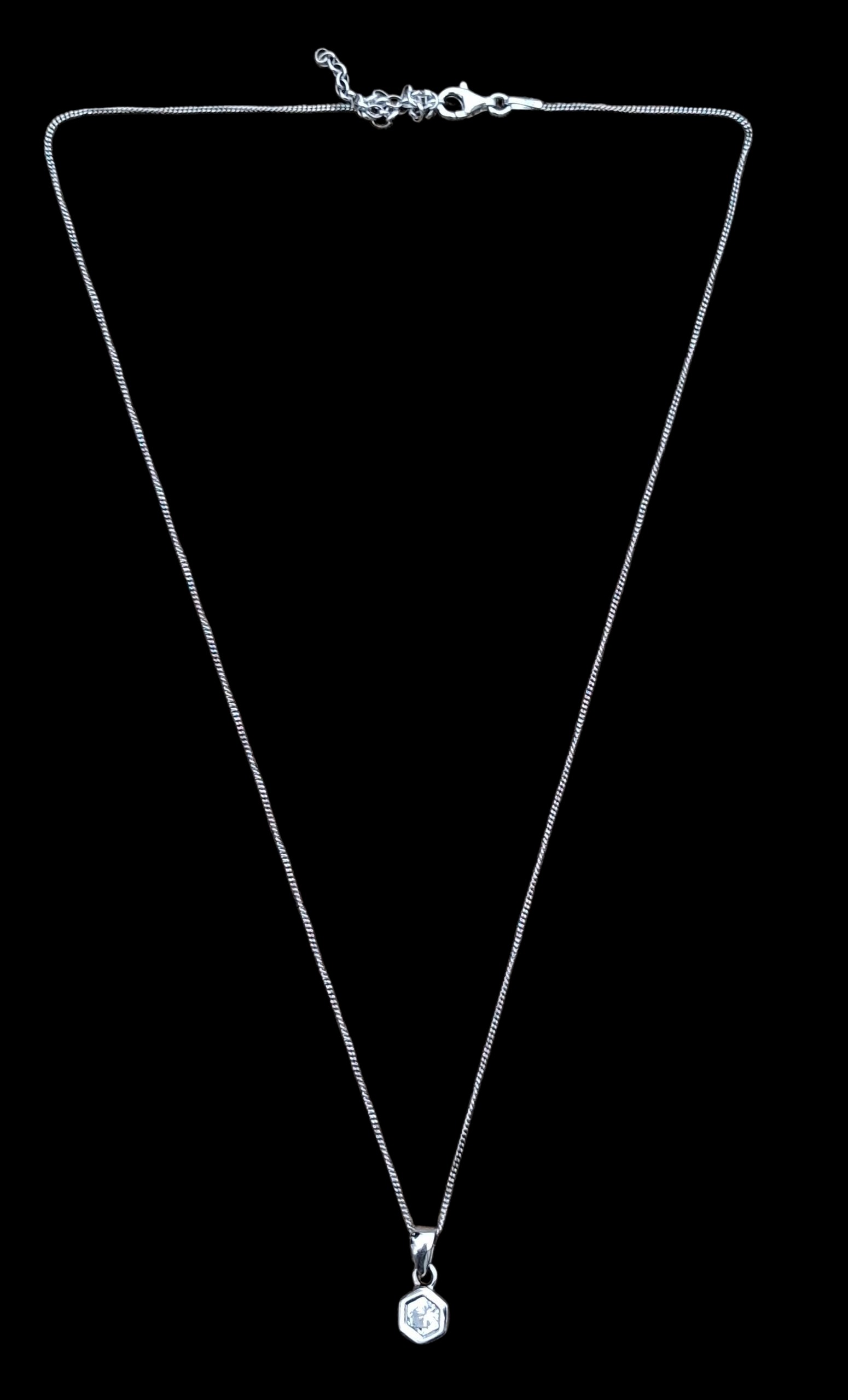 A BEAUTIFUL SILVER SOLITAIRE PENDANT ON A SILVER CHAIN
