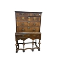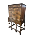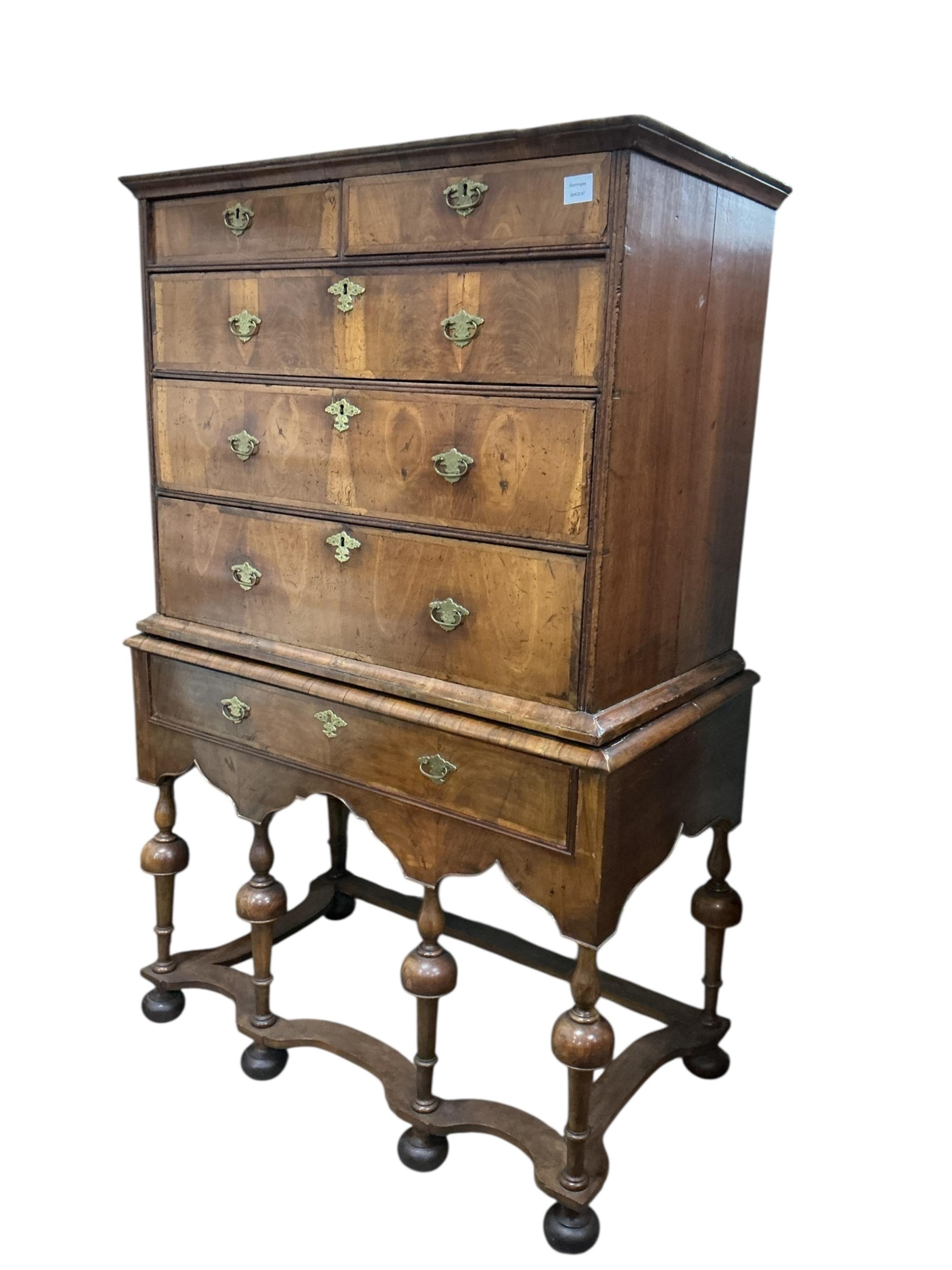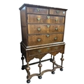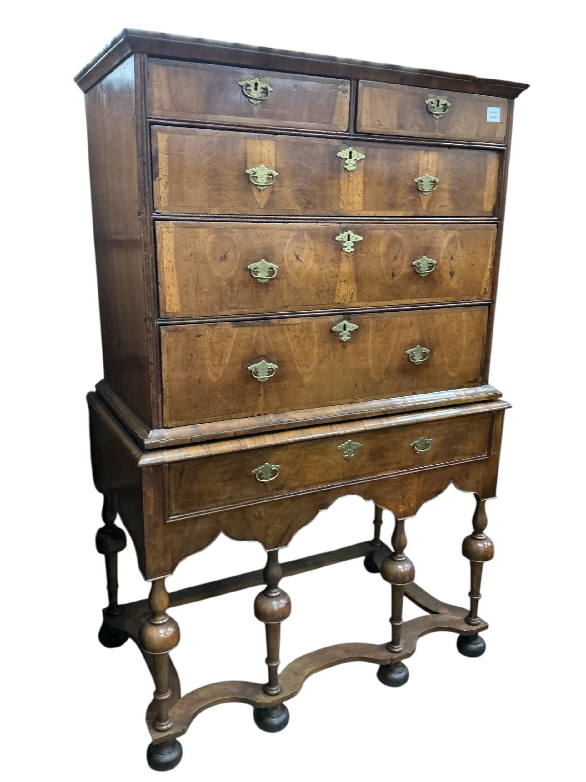 A Queen Anne and later isometric banded walnut chest on stand, width 103cm, depth 56cm, height 159cm