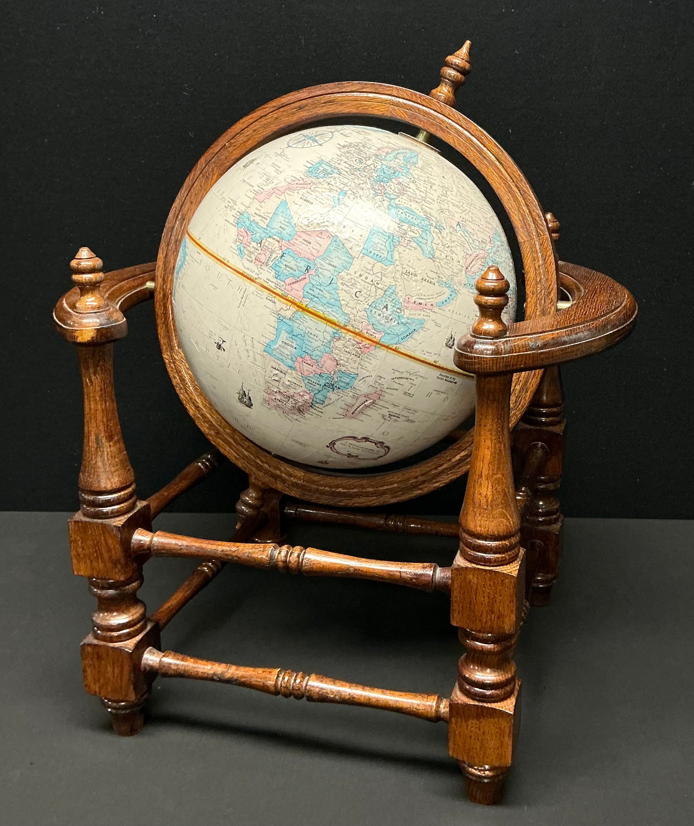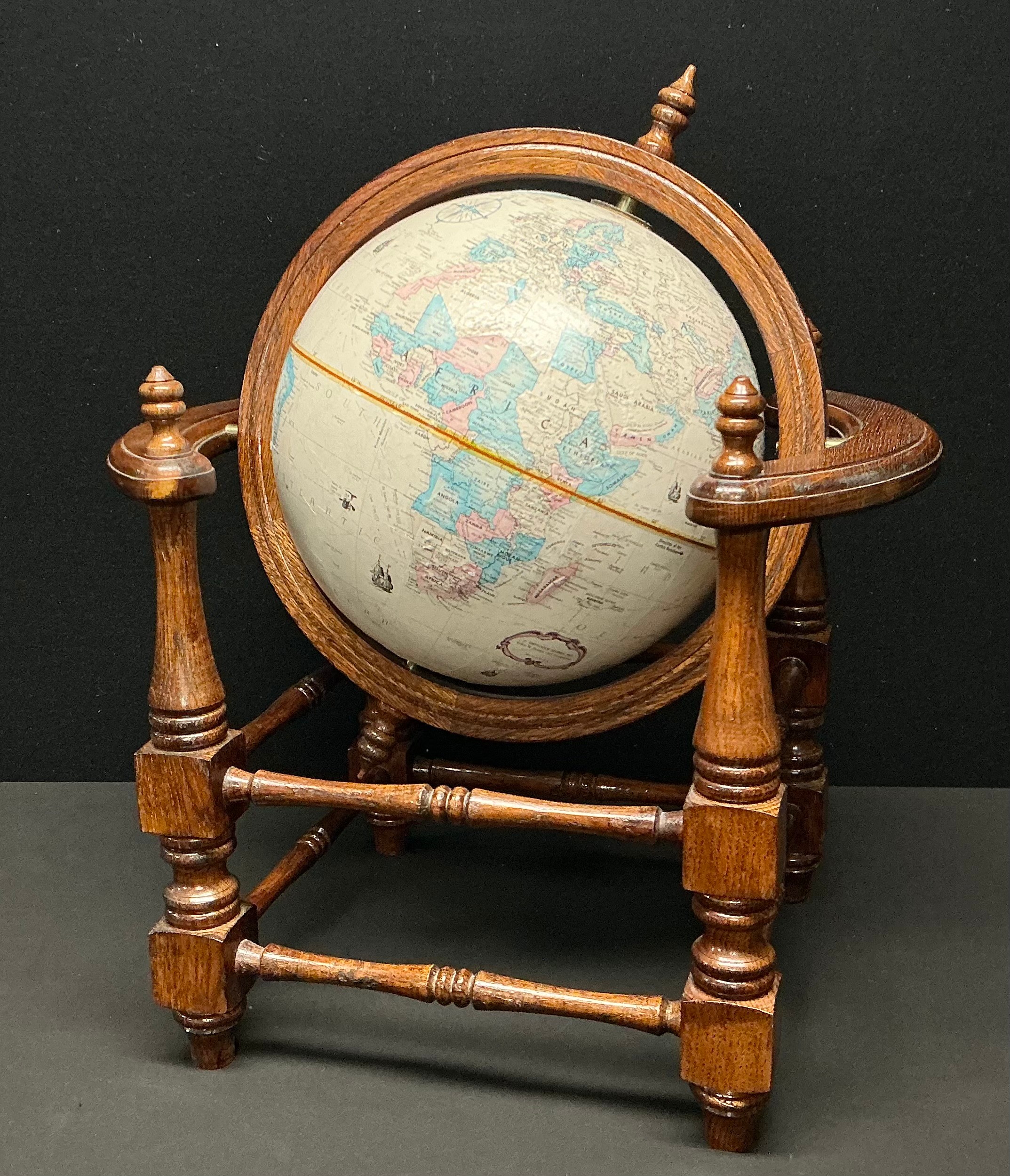 A Globemaster terrestrial table top globe, 12 inch (30.5cm diameter) turned oak stand