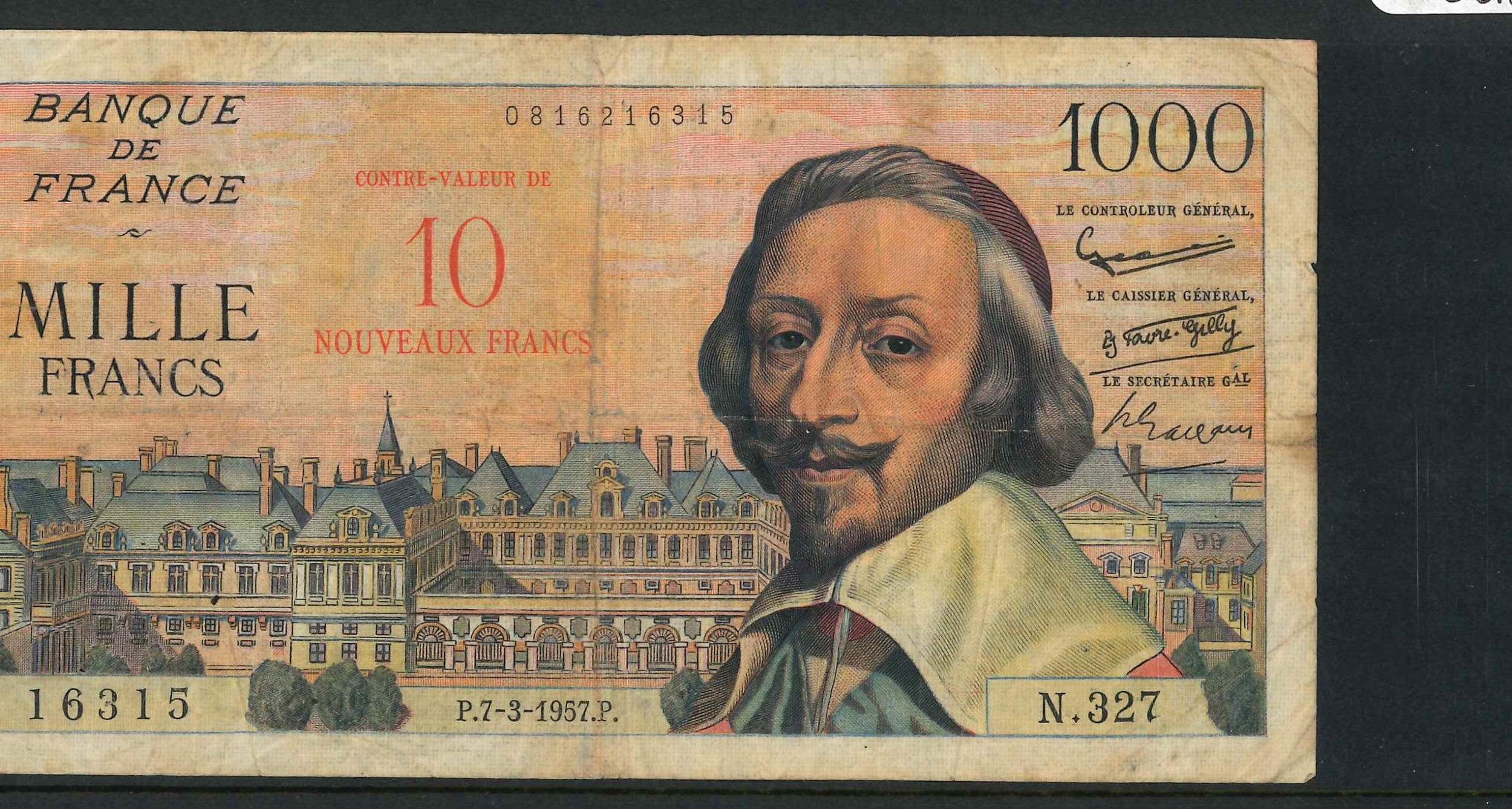 Banknotes; France; 1958 provisional 10 new francs on 1,000f,...