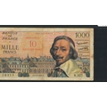 Banknotes; France; 1958 provisional 10 new francs on 1,000f, Good (corner missing), Krause 138.