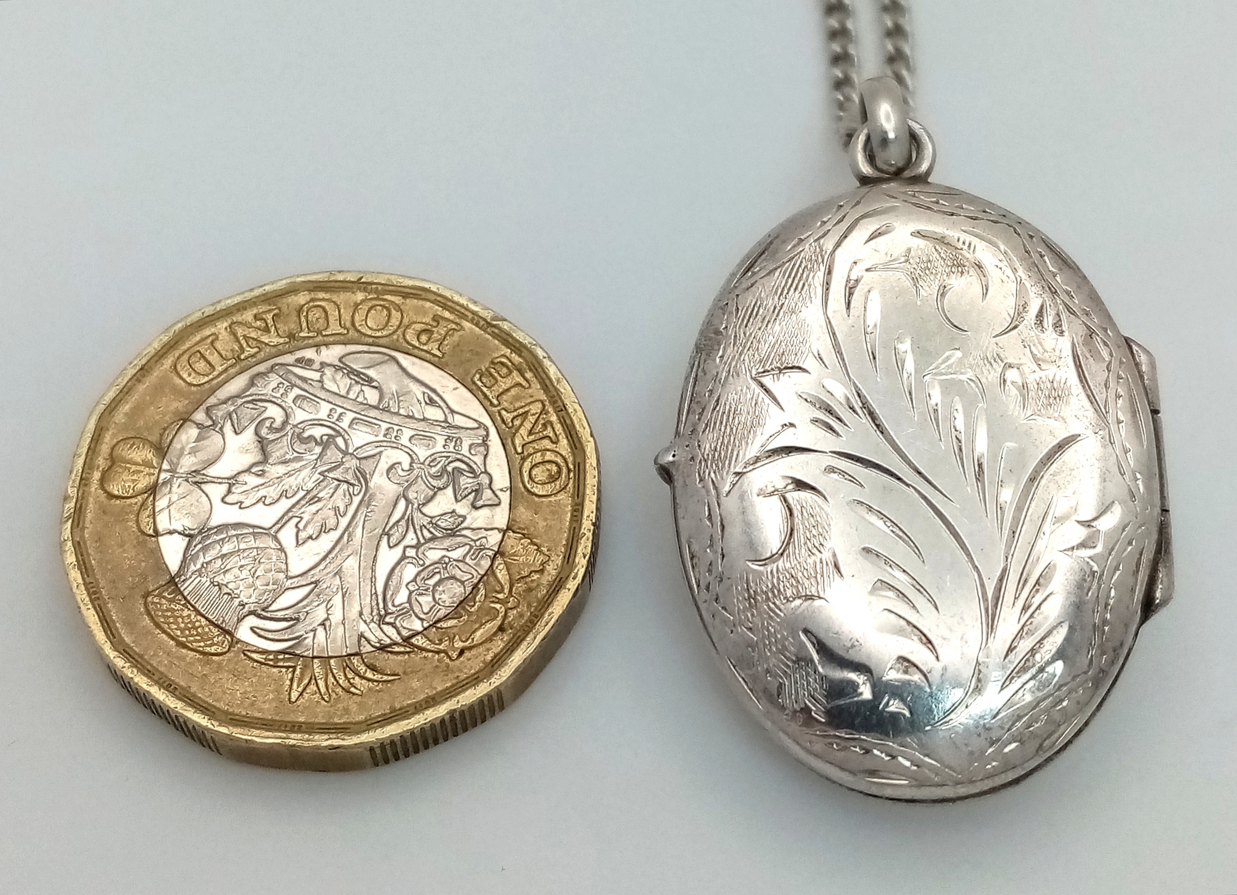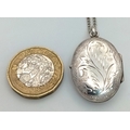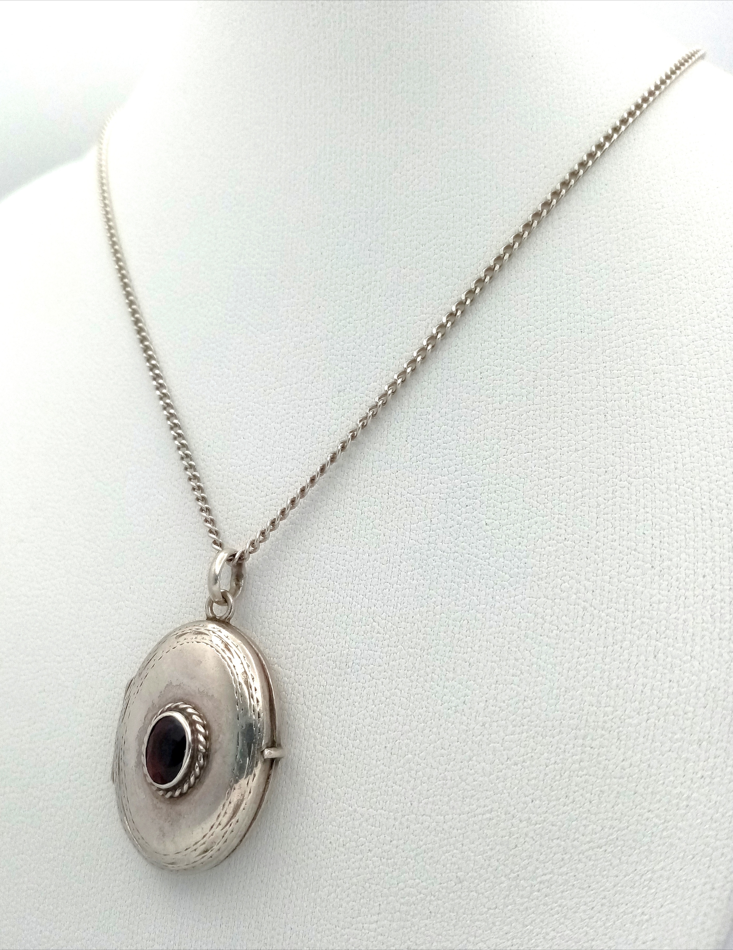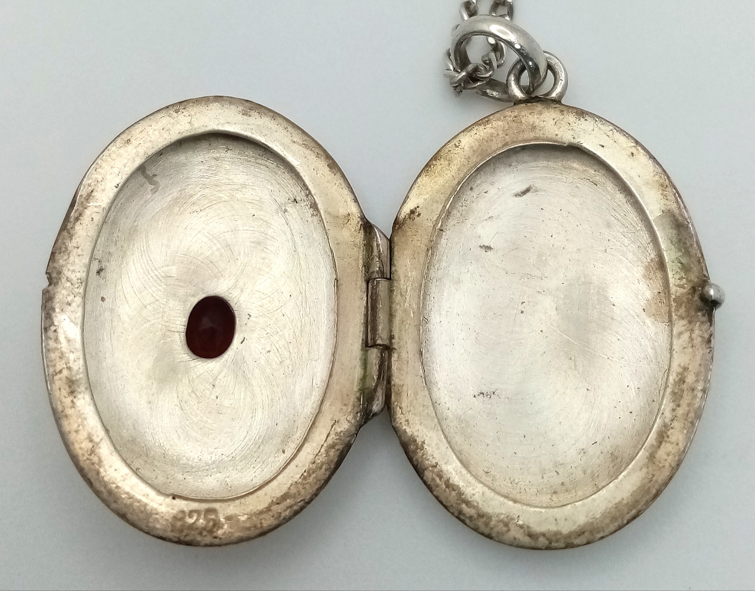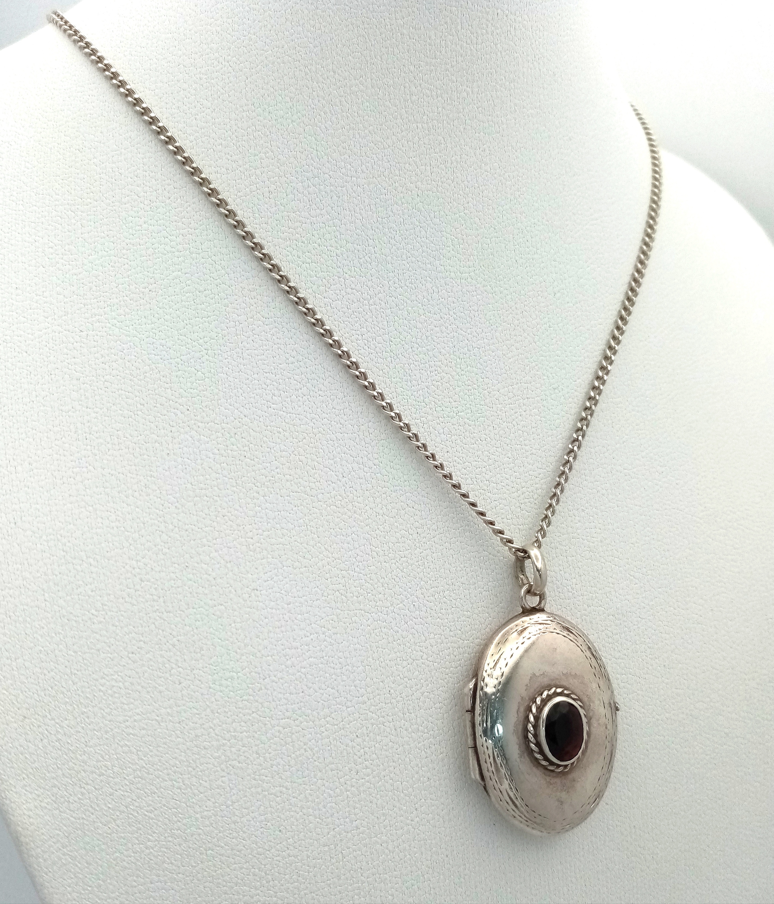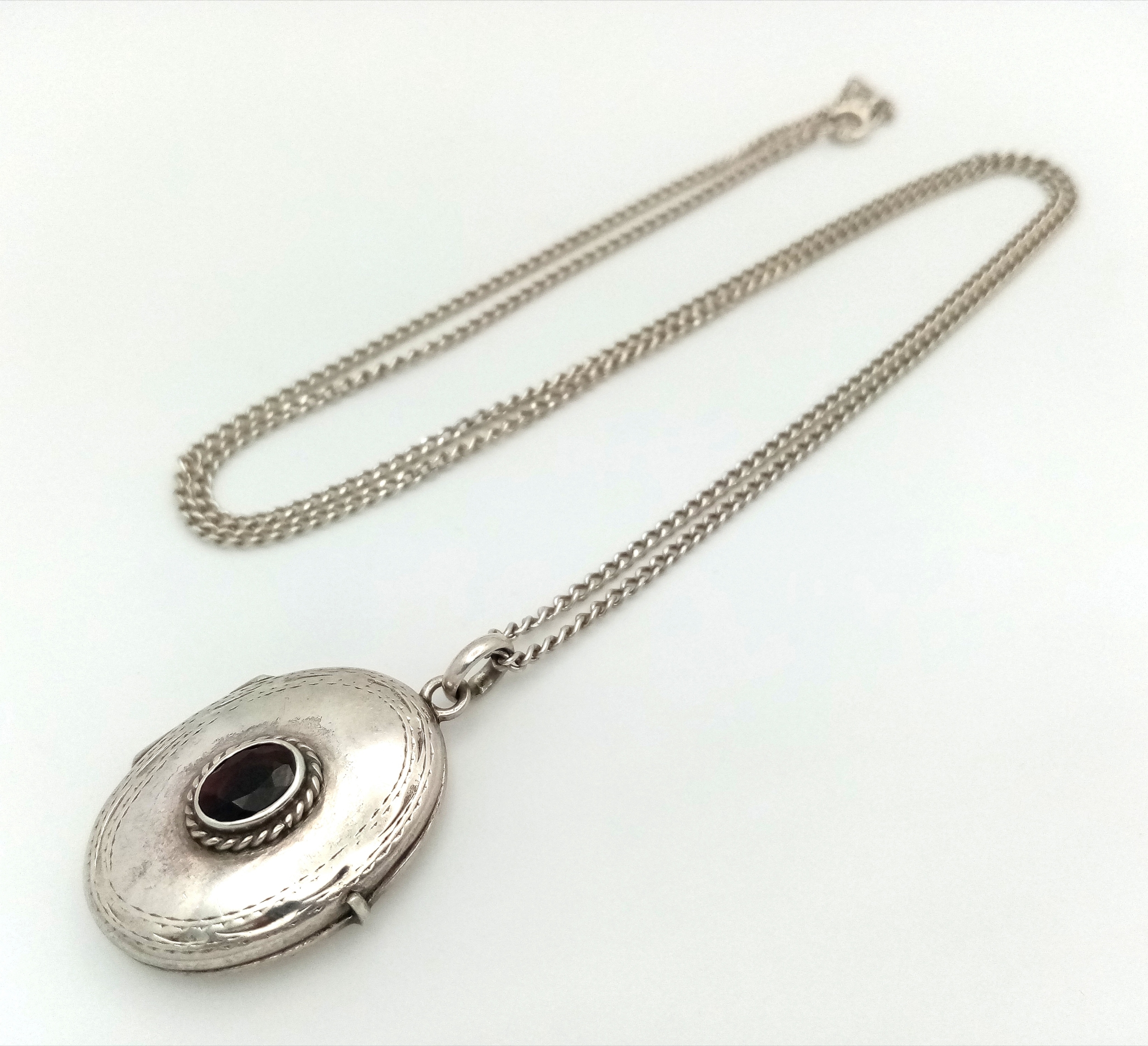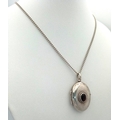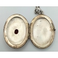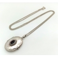 A vintage 925 silver stone set Oval locket pendant, set on a silver necklace. Total length 58cm, total weigth 8.7G.