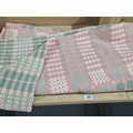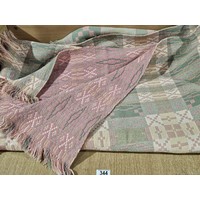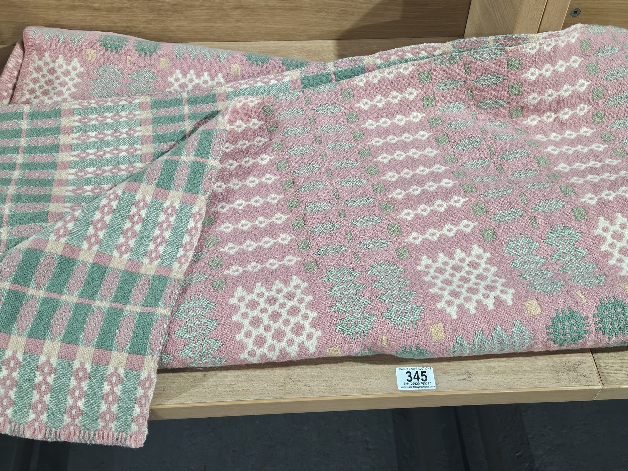 A double sided Welsh blanket - pink, green and yellow - double - good condition