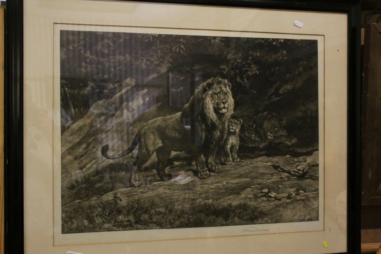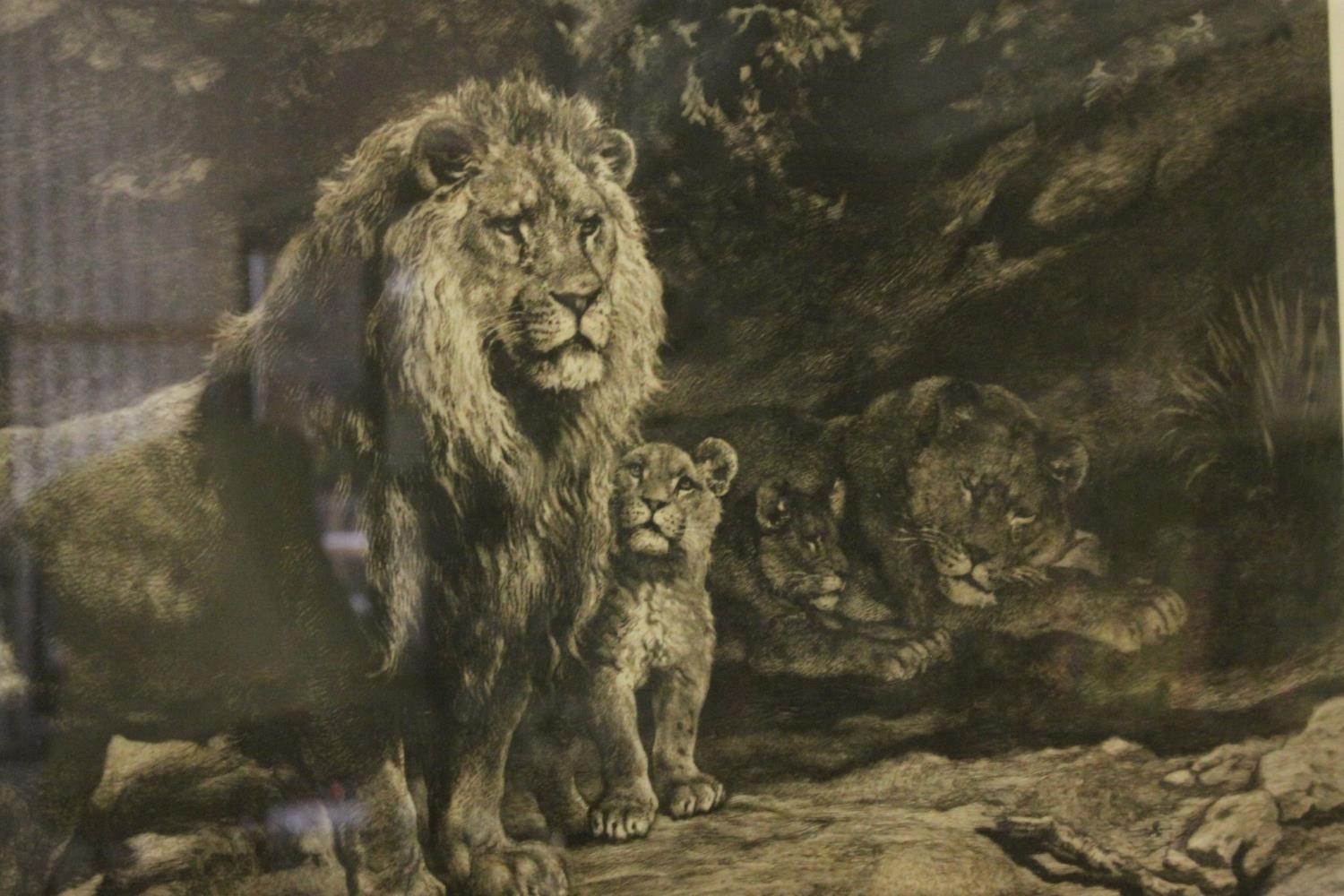 Herbert Thomas Dicksee (British 1862-1942): 'Family of Lions', Etching signed in pencil to margin, after Rosa Bonheur, published 1910 by L. H. Lefevre and Son and J. McLean, 47cm x 66cm, framed and glazed