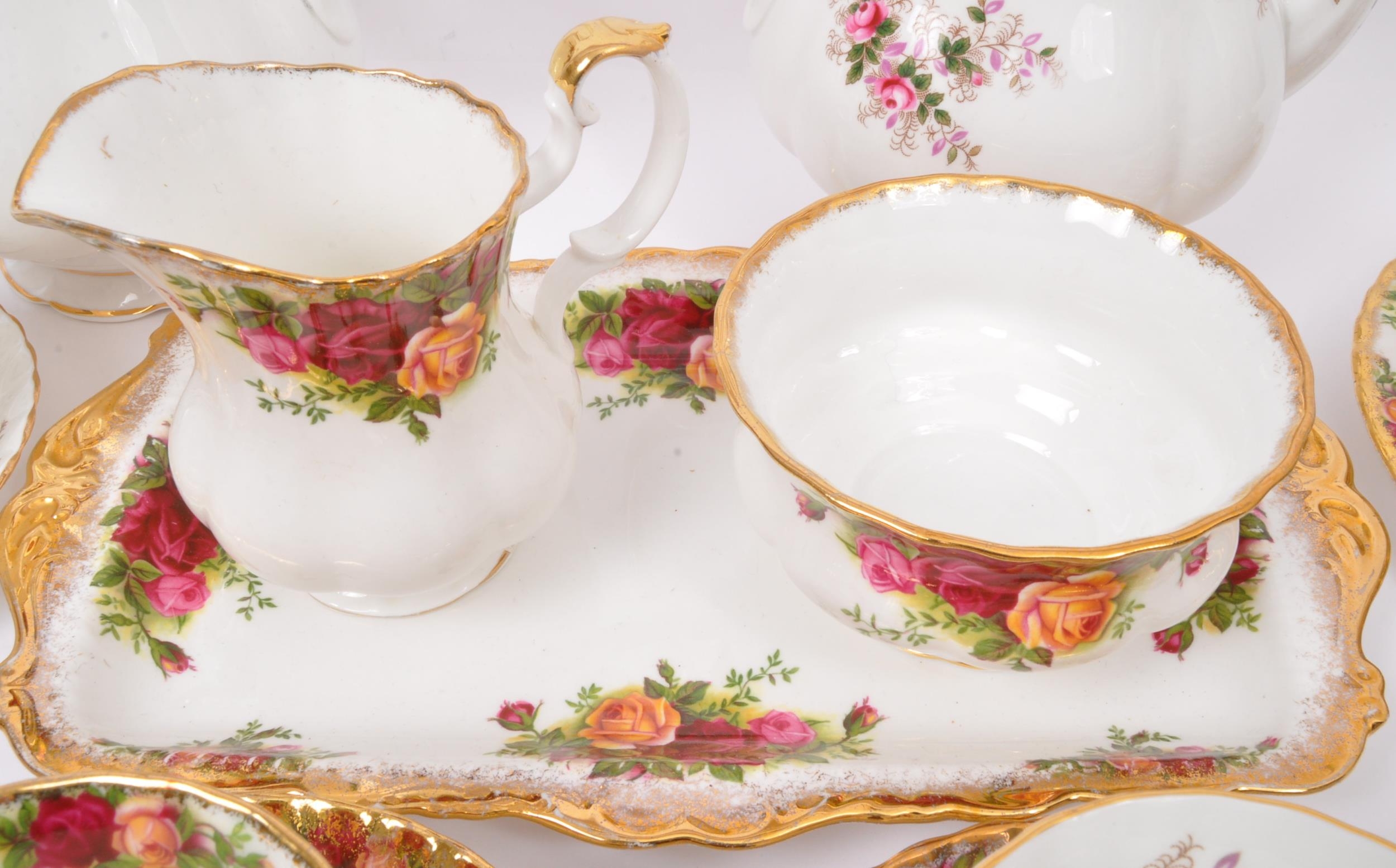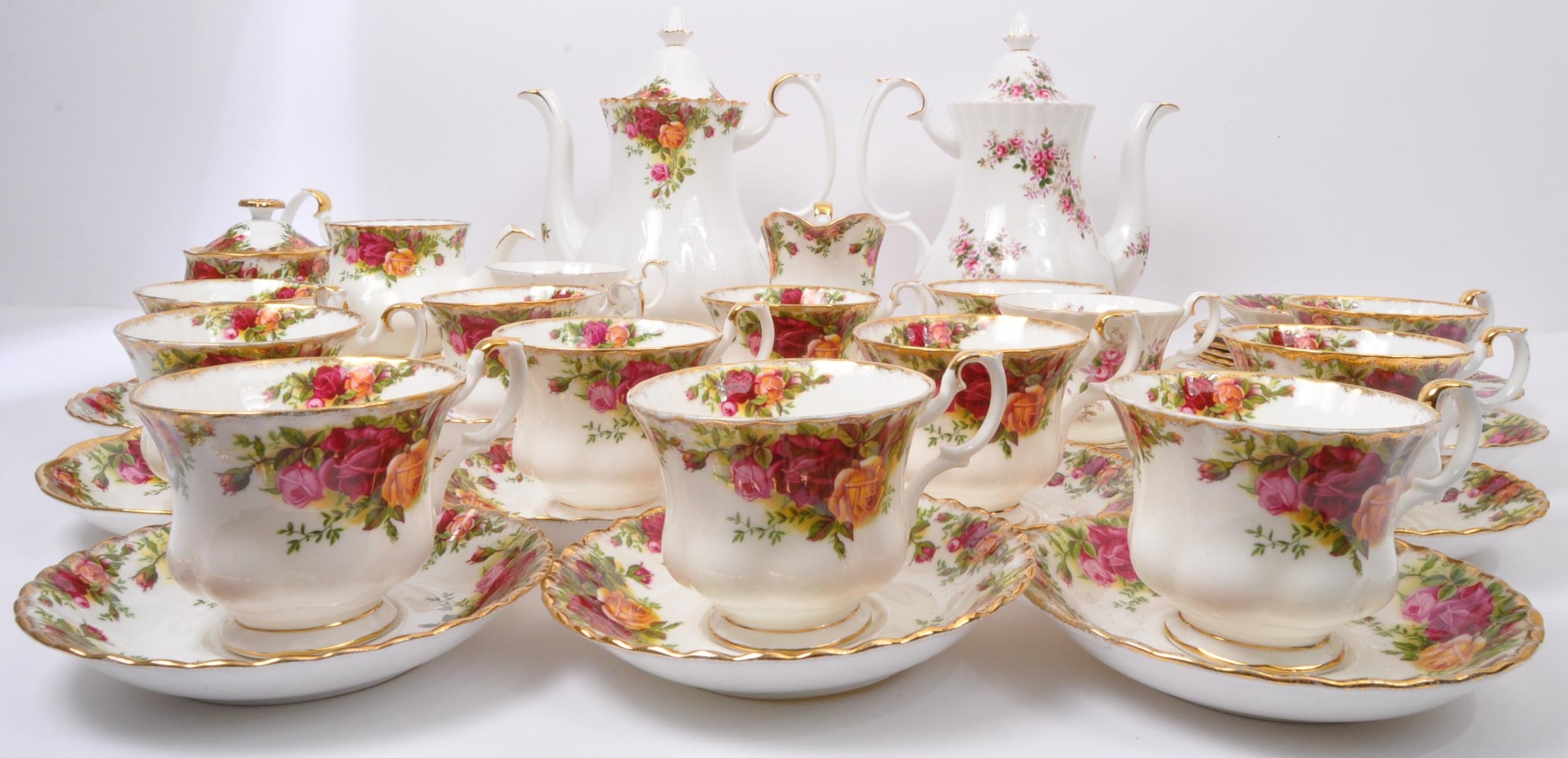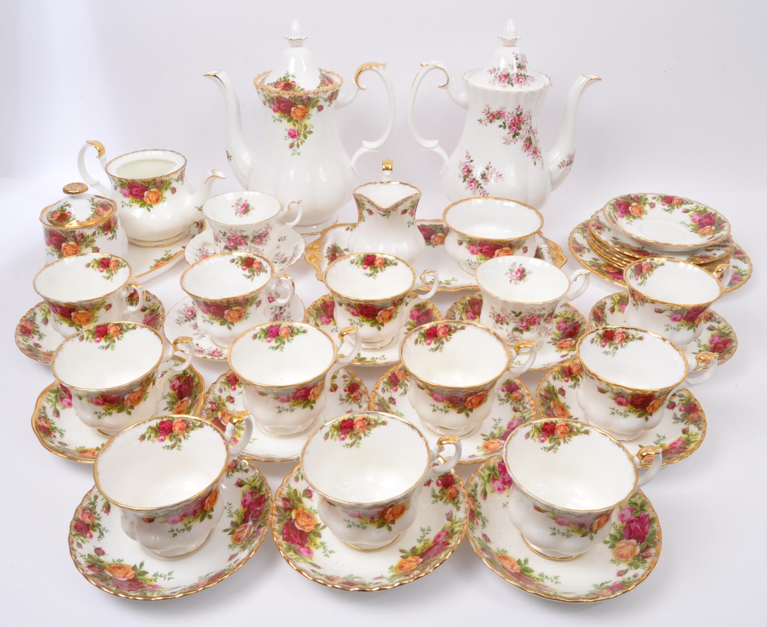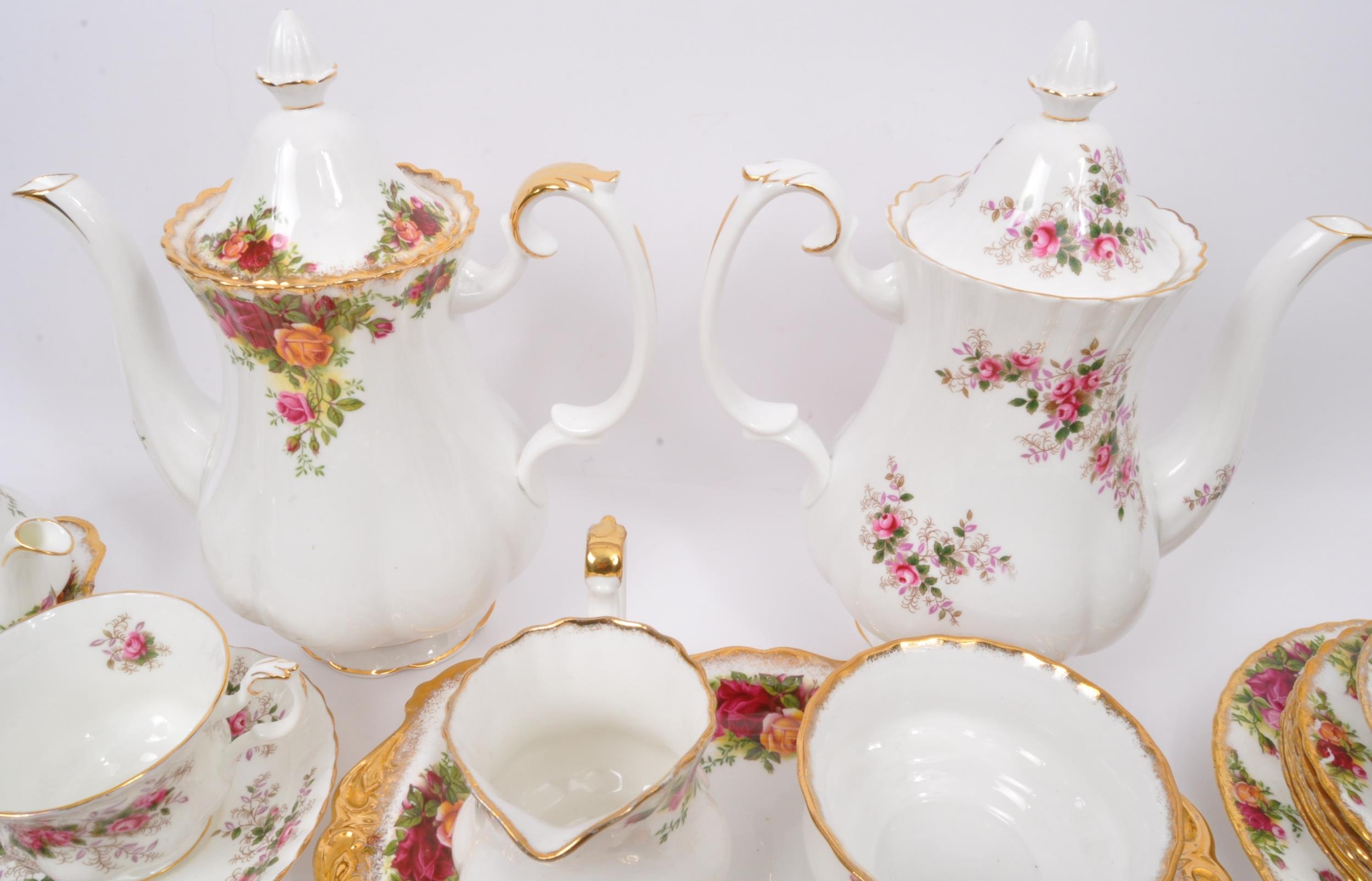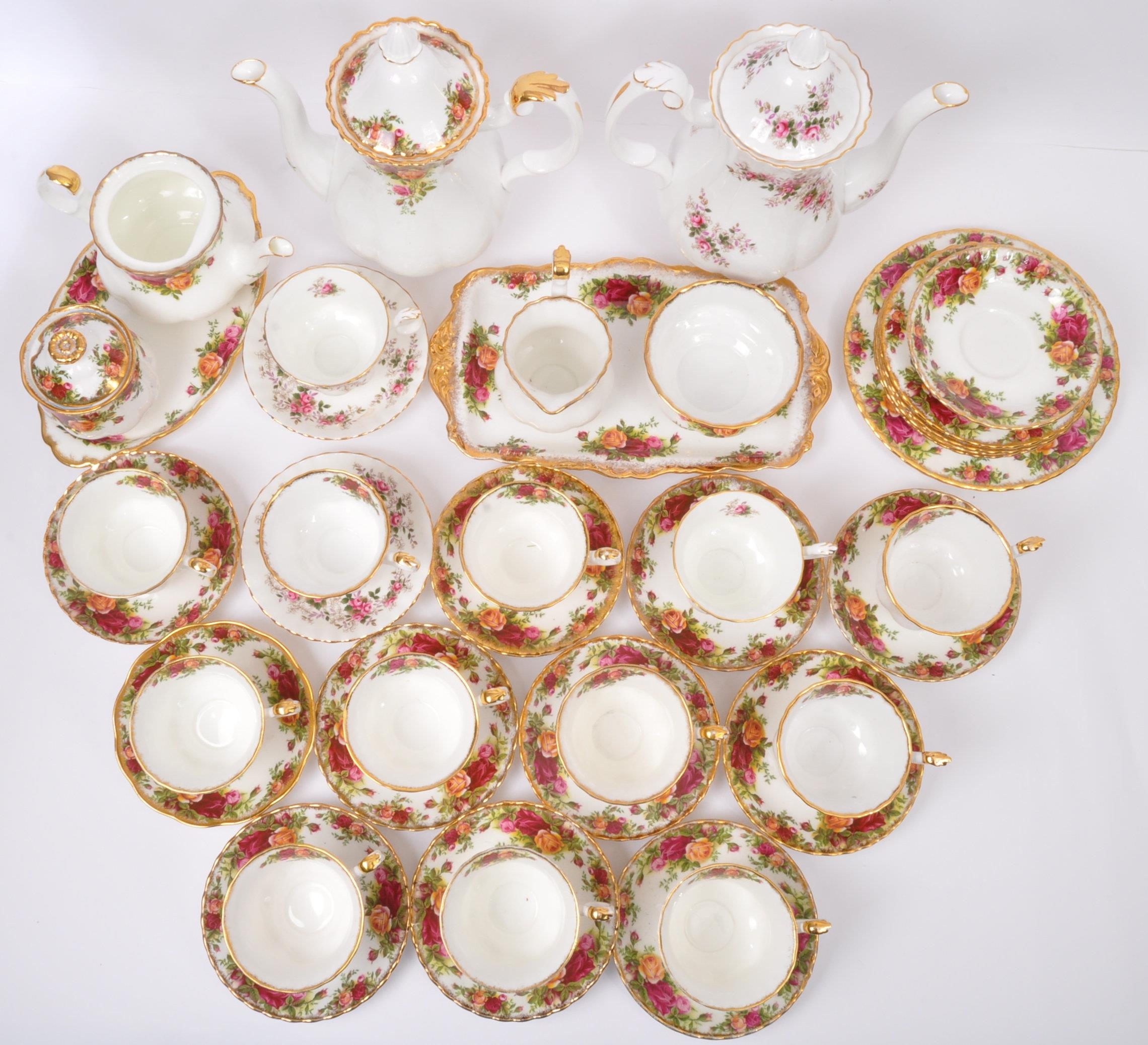 An assortment of vintage 20th century Royal Albert fine bone china coffee services. The tea services comprising of 'Old Country Roses' & 'Lavender Rose' examples comprising coffee pots, cups & saucers, small tea pot, & serving plates.