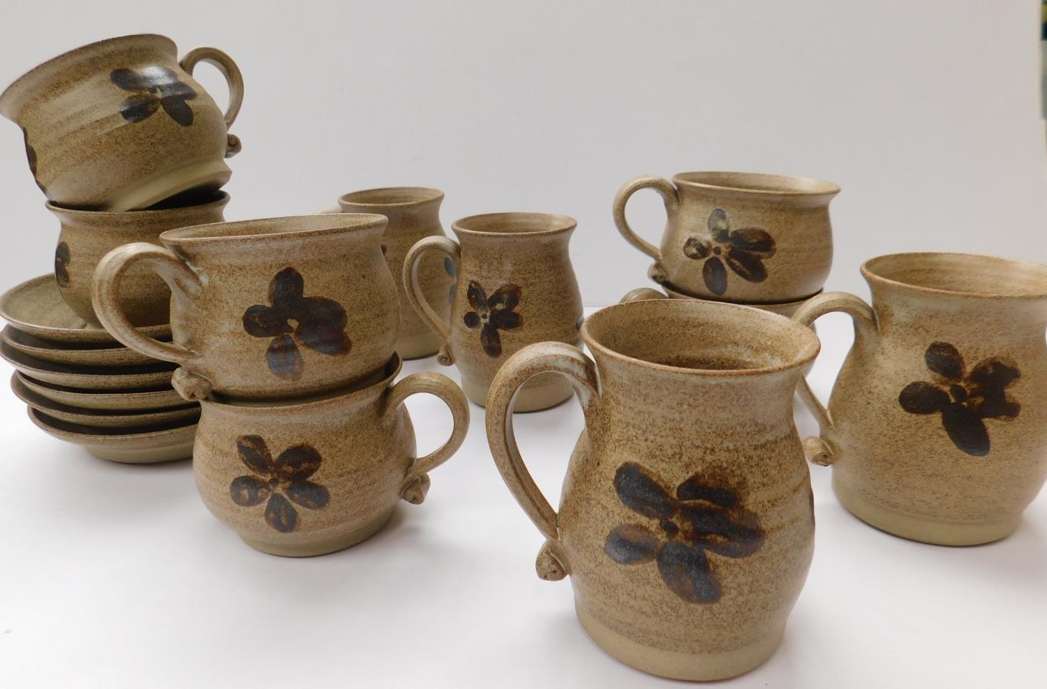 Vintage Dersingham pottery coffee set-6 cups & saucers + 4 coffee beakers