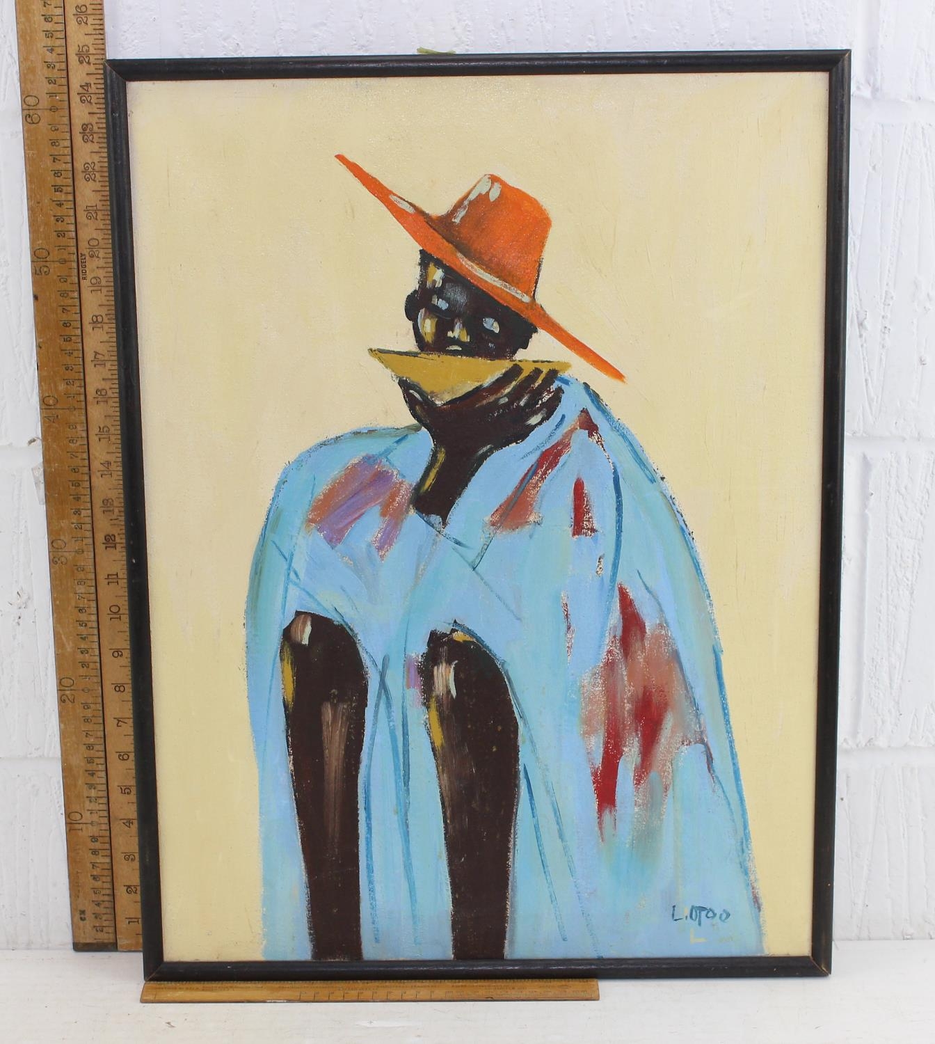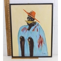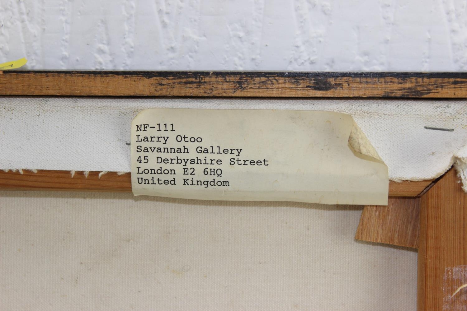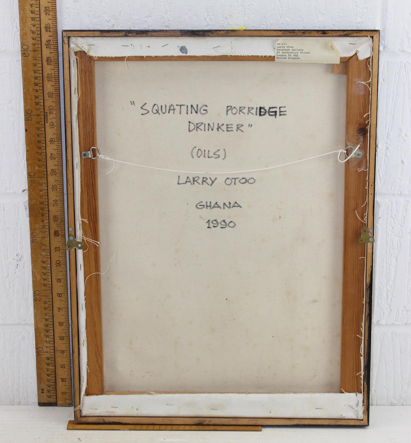 Larry Otoo oil on canvas, titled 'Squating Porridge Drinker', signed lower right L. Otoo,