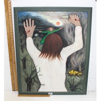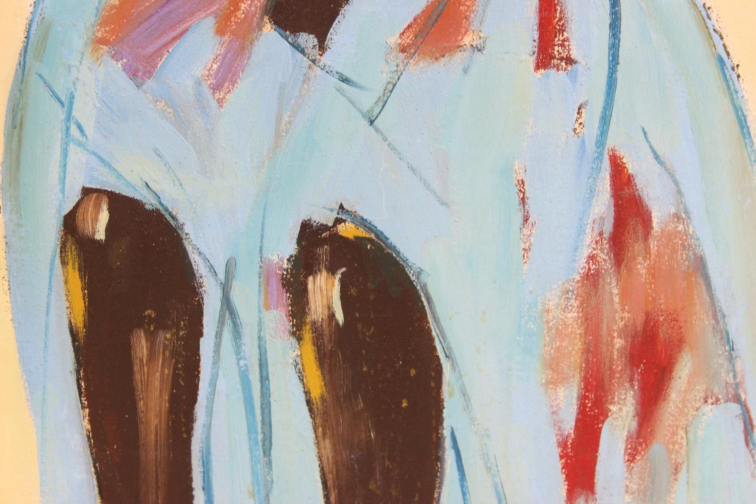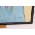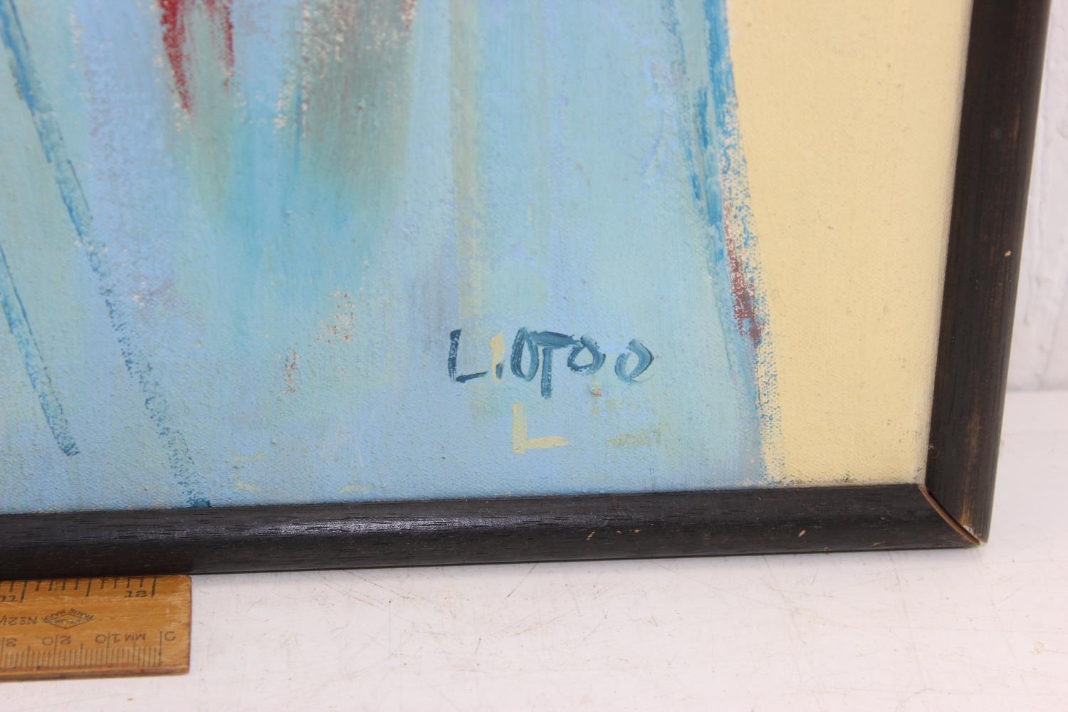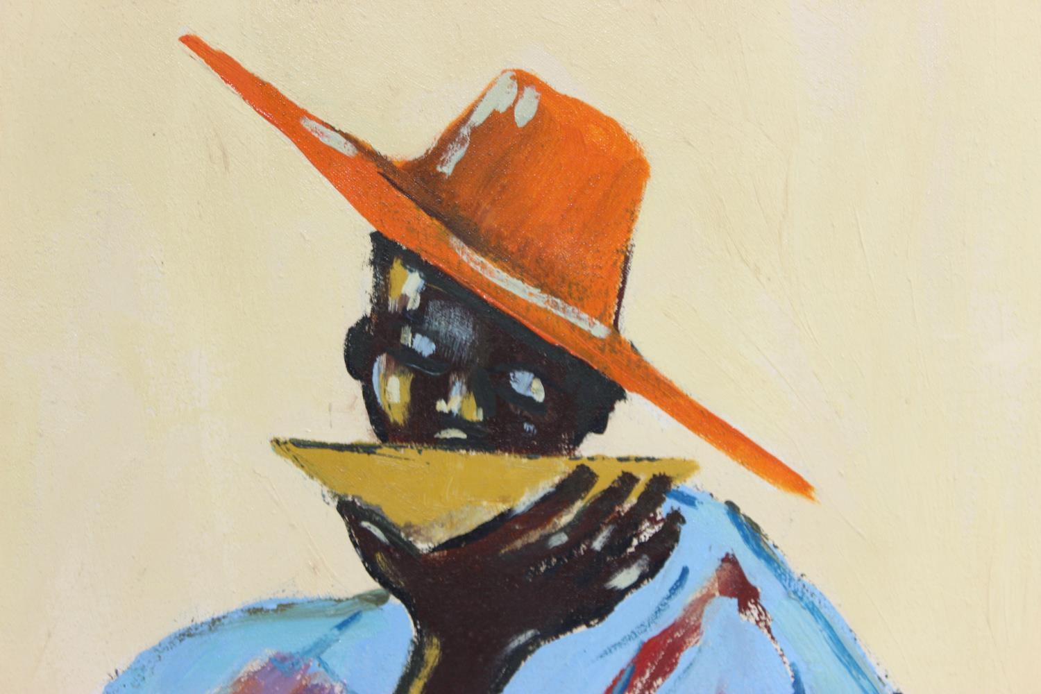 Larry Otoo oil on canvas, titled 'Squating Porridge Drinker', signed lower right L. Otoo,