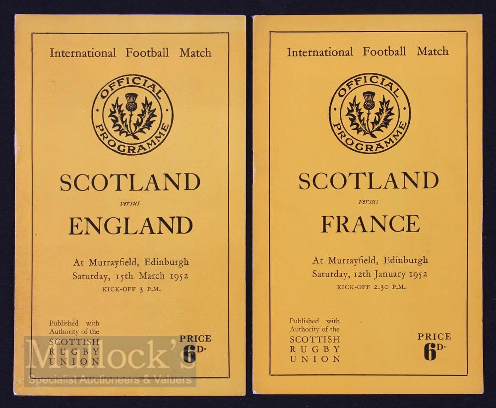 1952 Scottish Home Rugby Programmes (2): The issues v France and v England (team pics from 1892). Near Mint